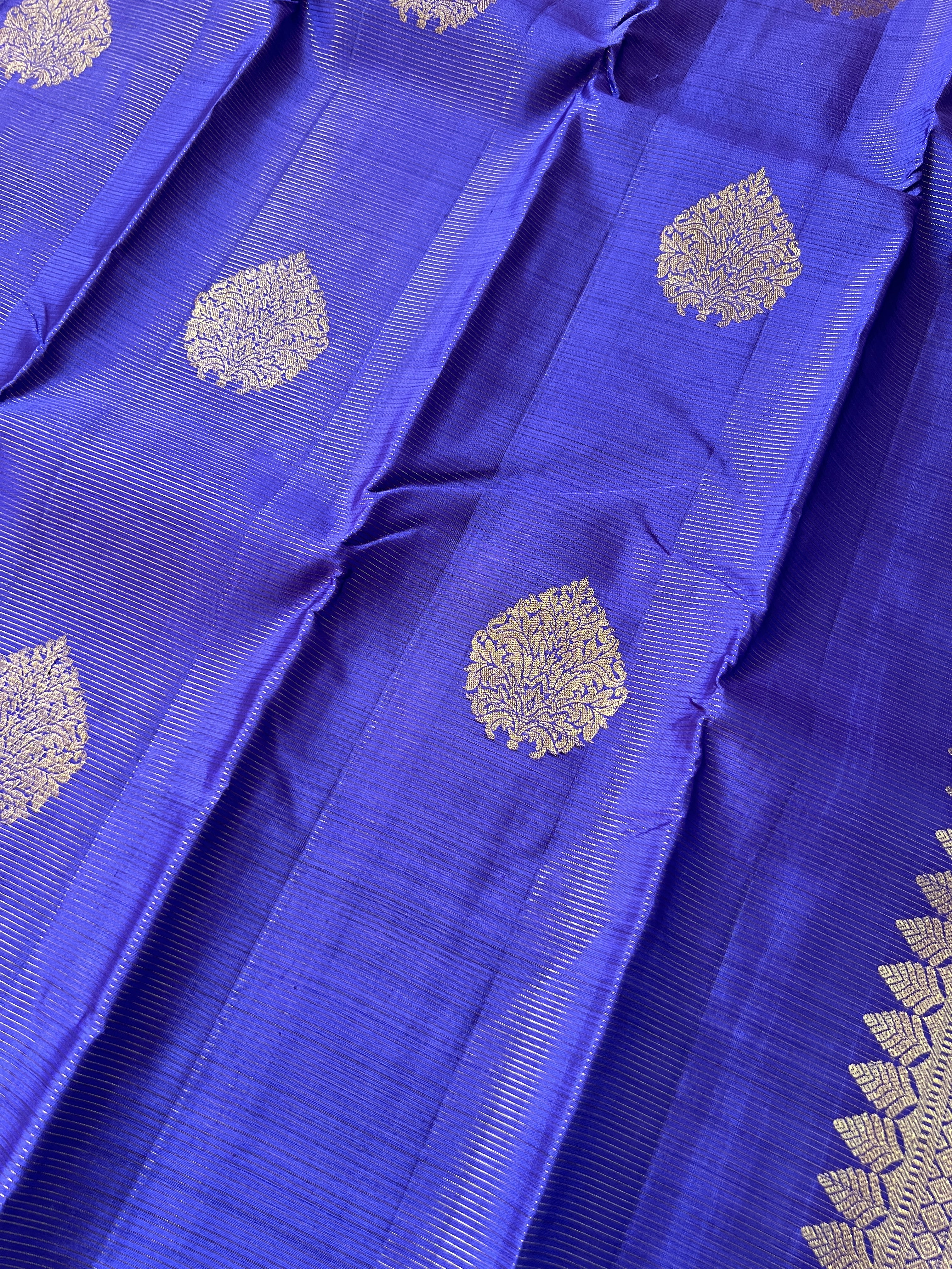 - Style: Golden Zari Woven, Handloom, Floral Buta Pattern ,Rich Pallu, Stripe Pattern