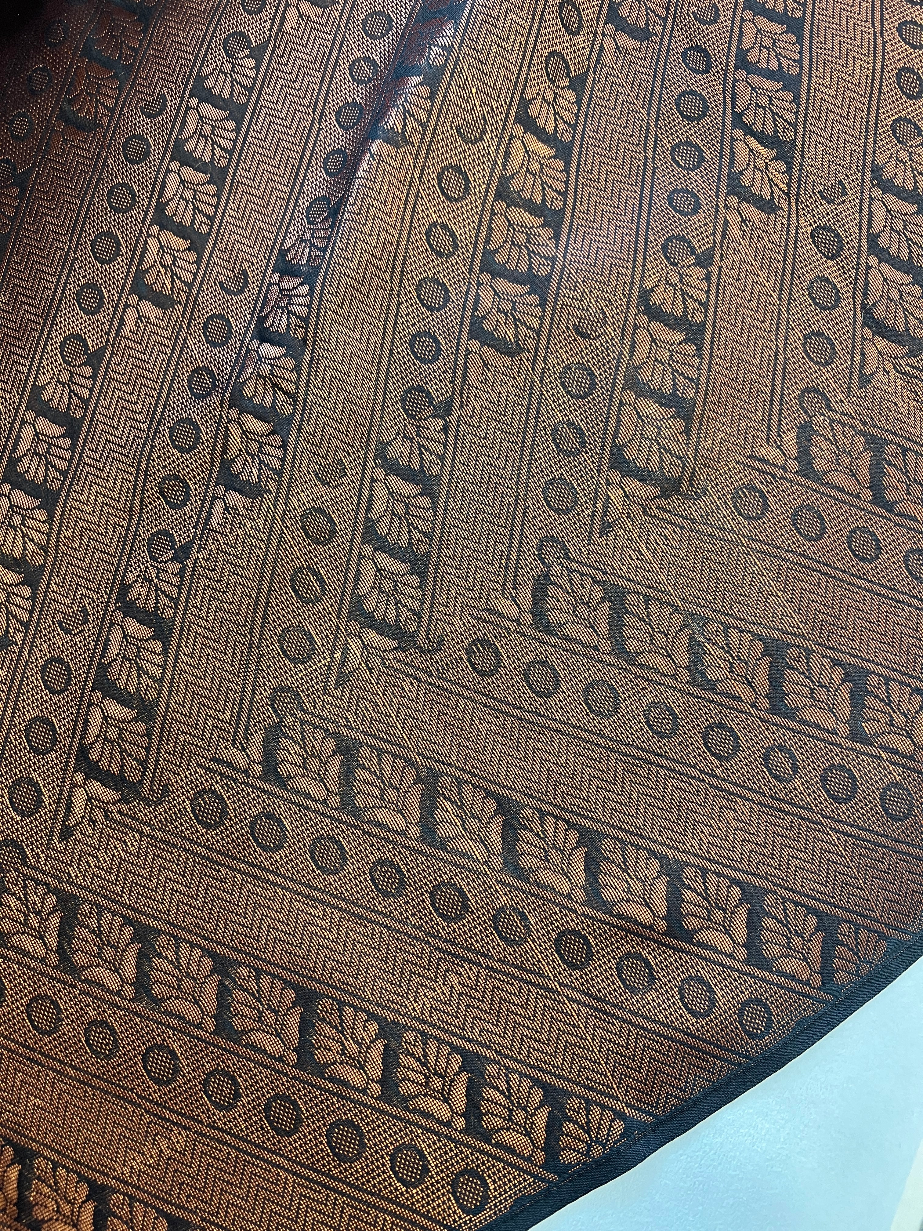• Style: Copper Zari Weaving Pattern, Traditional Floral Butas, Zari Woven Geometric & Floral Patterned Pallu