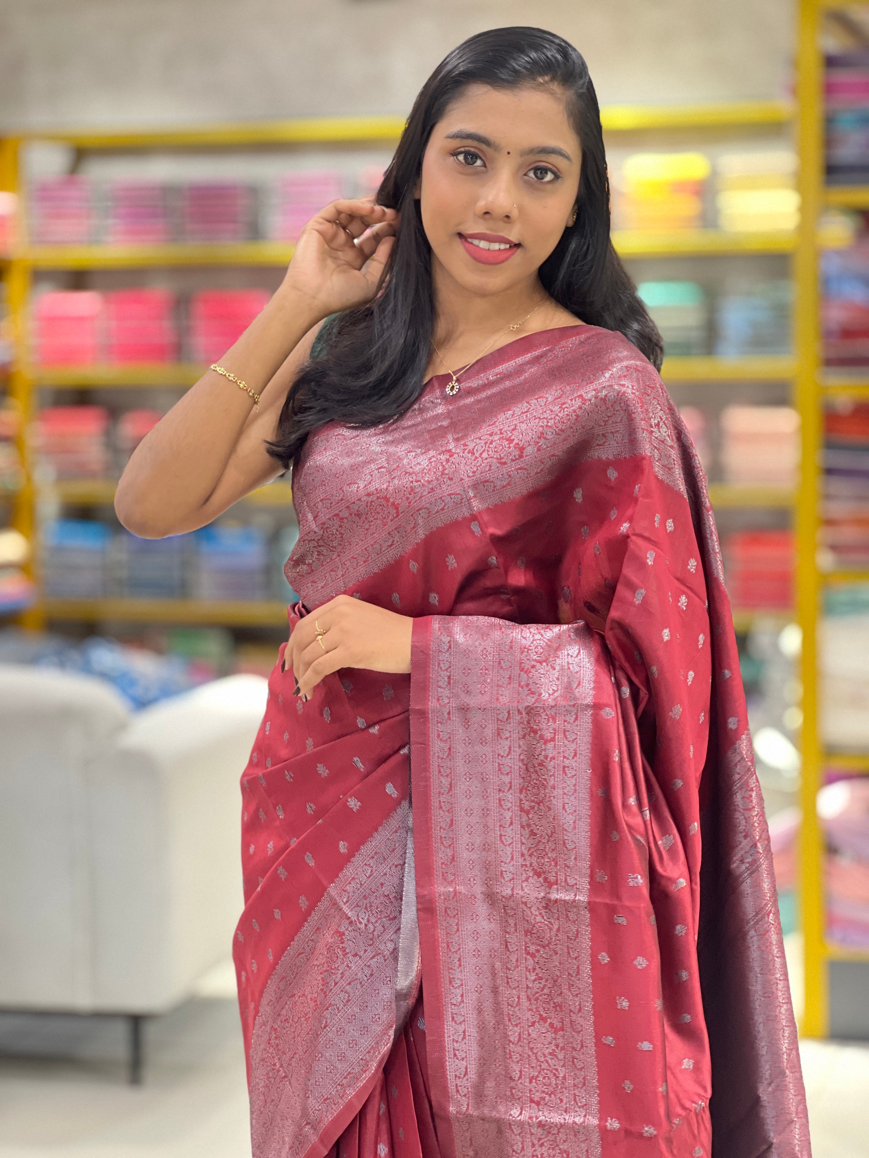 - Style: Silver Zari & Black Yarn Weaved Buta, Traditional Floral Patterned Borders, Brocade Patterned Pallu, Tassels Attached
