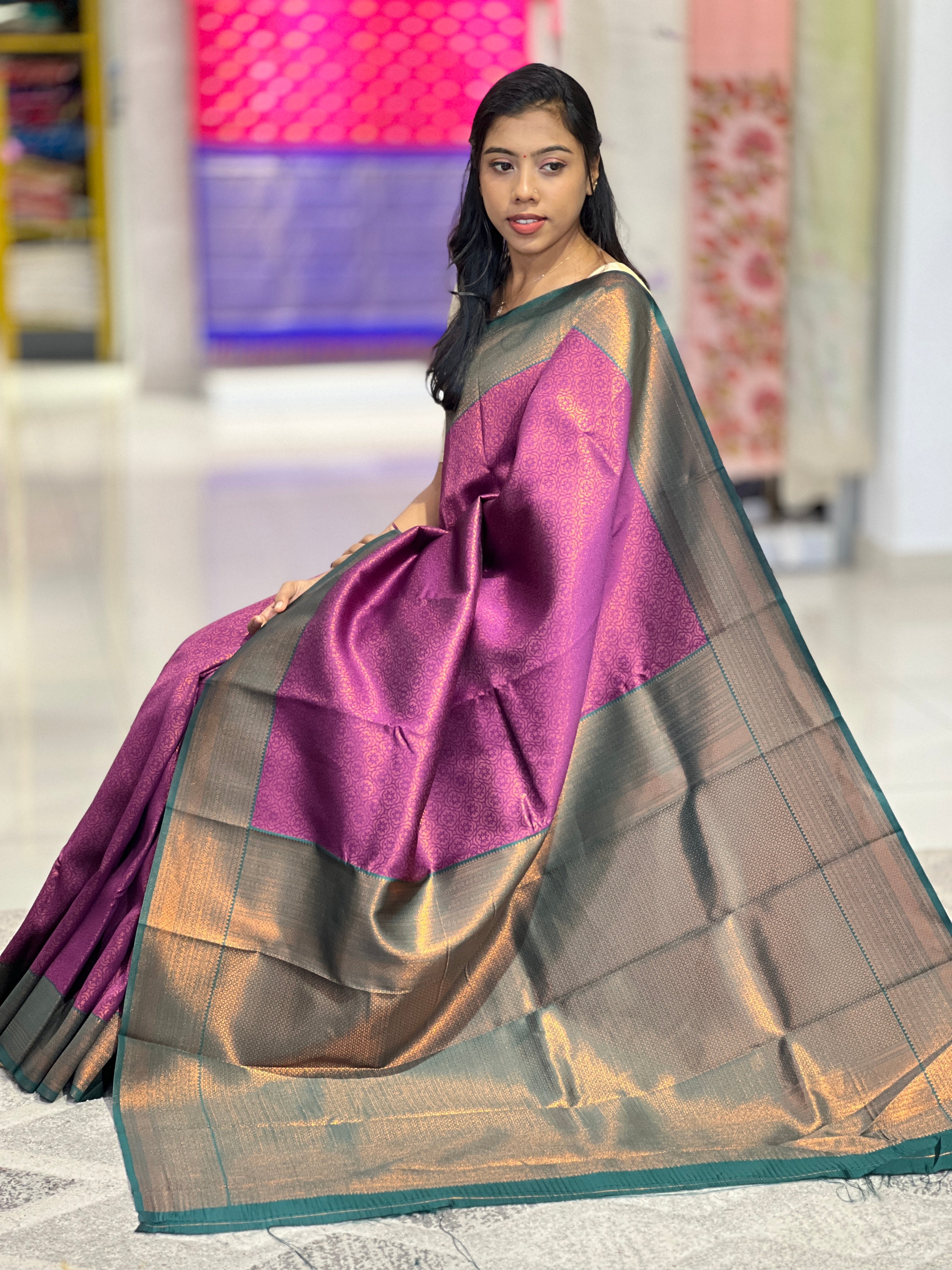 - Style: Geometric Patterned Buta Detailing, Traditional Patterned Borders, Contrast Borders & Pallu, Brocade Patterned Pallu