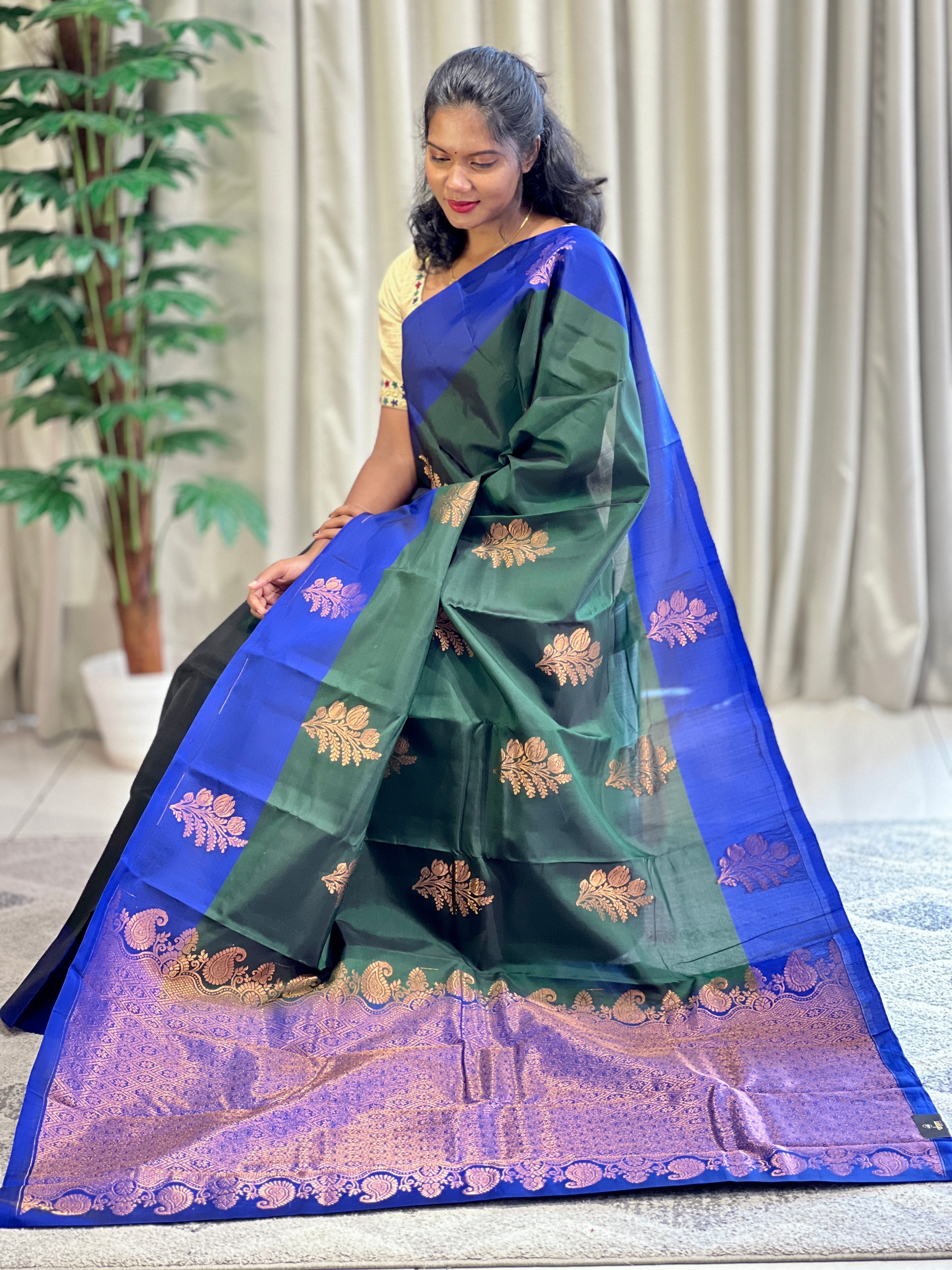 - Style: Zari Woven Traditional Floral Motifs, Contrast Borders & Pallu, Paisley & Geometric Patterned Pallu