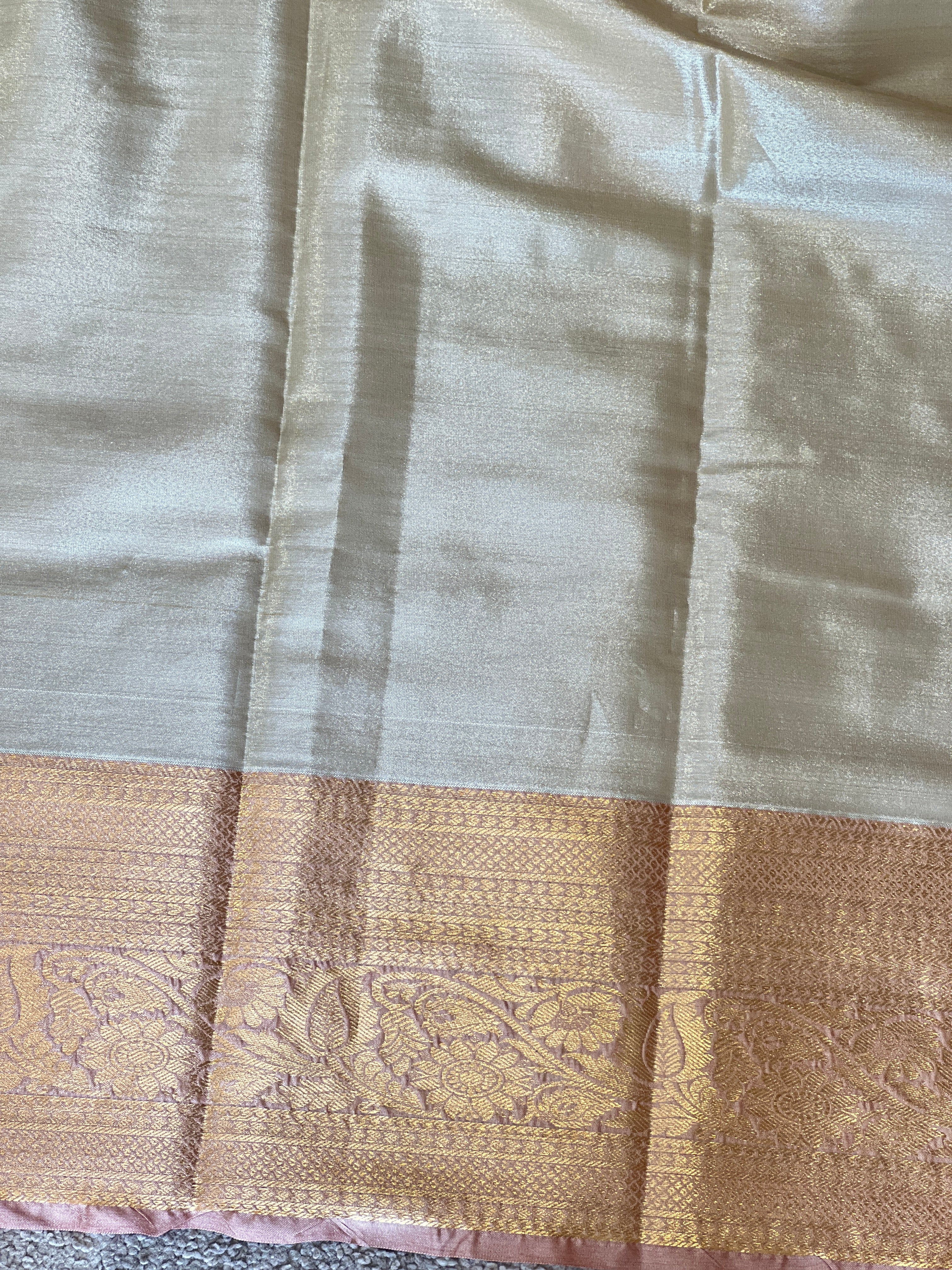 - Style: Contrast Traditional Floral Patterned Borders, Geometric Patterned Body & Pallu, Tissue Weaved