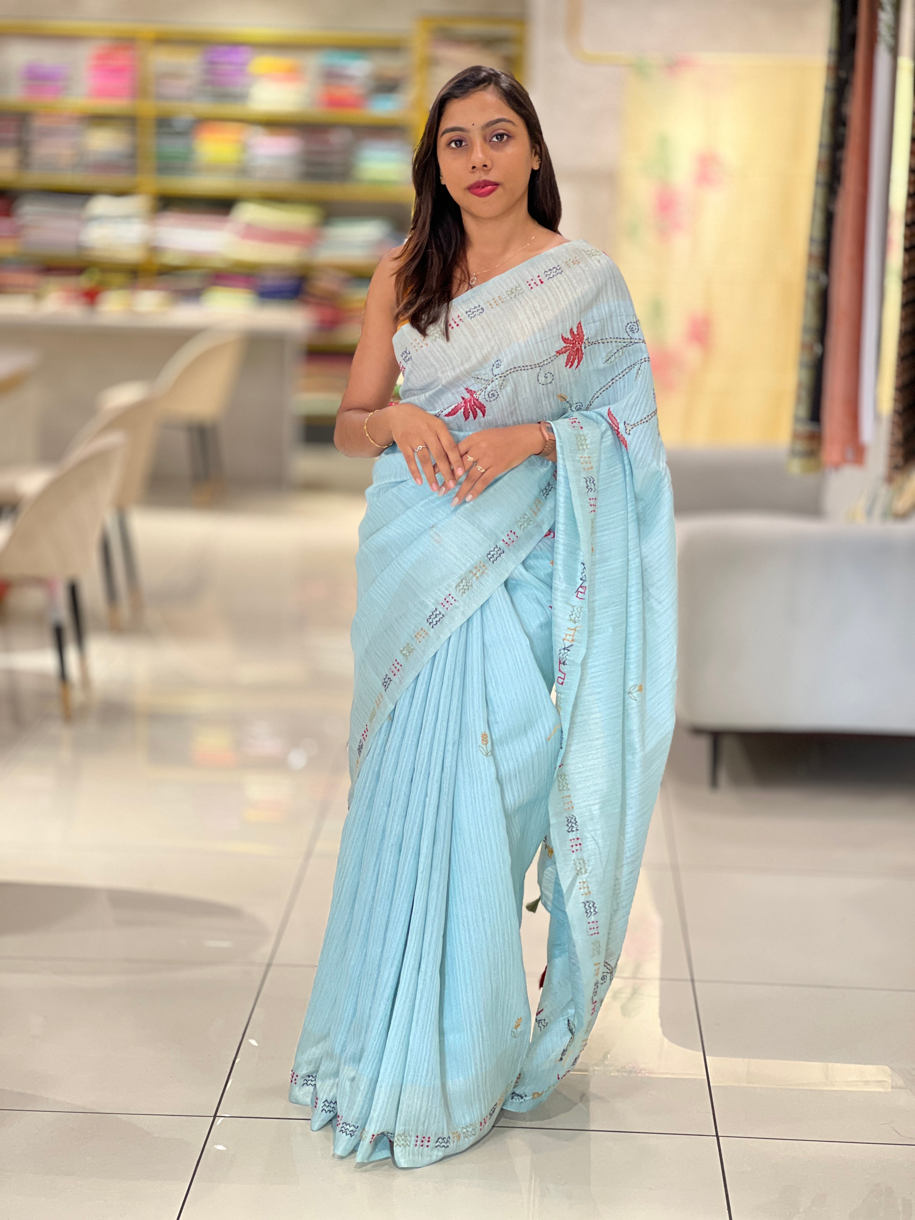 Traditional Hand Embroidery Detailed Green Silk Saree | BLD1245 Traditional Hand Embroidery Detailed Green Silk Saree | BLD1245