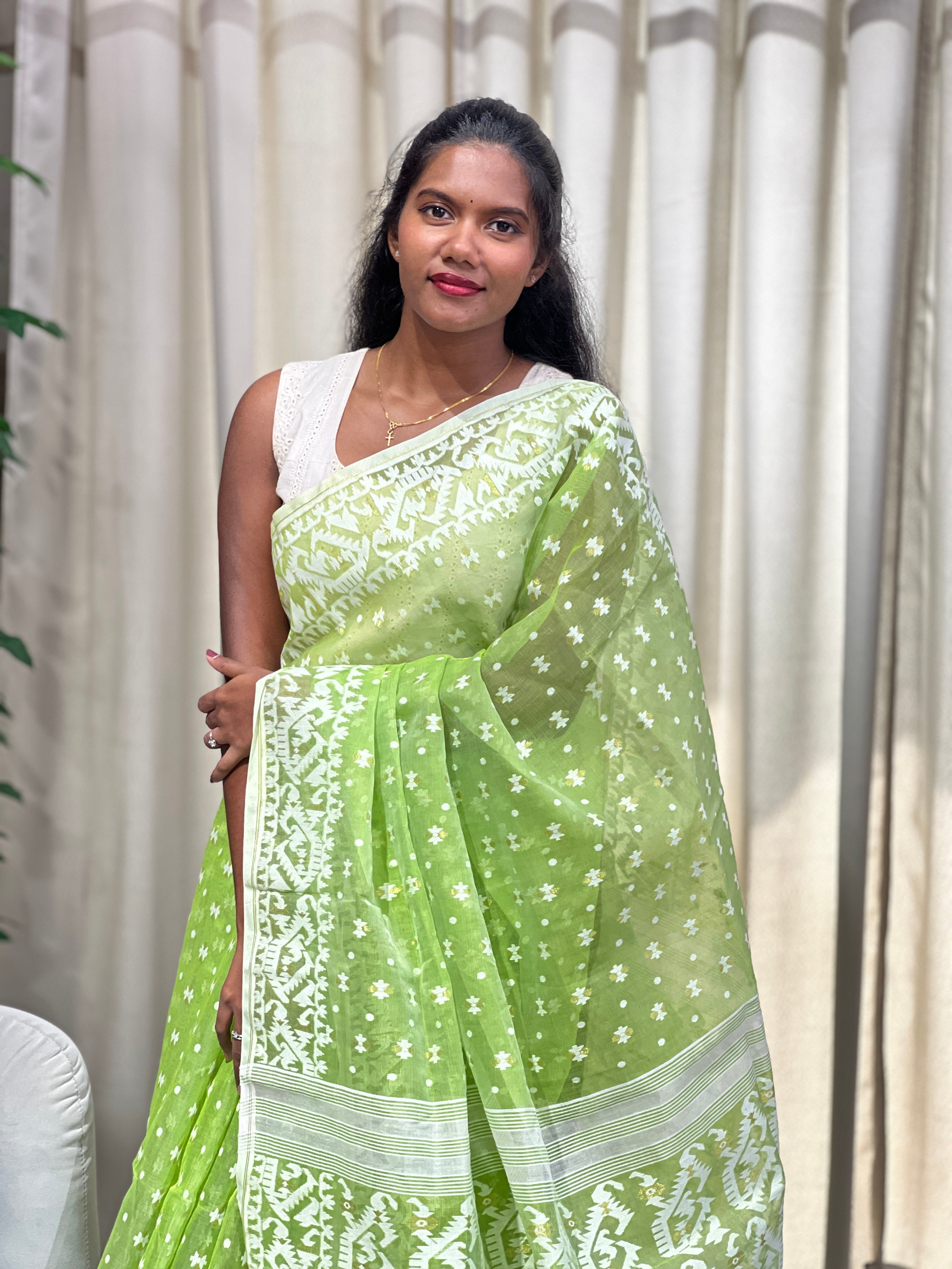 • Traditional Jamdani Woven Organdy-Cotton Saree | AYD247