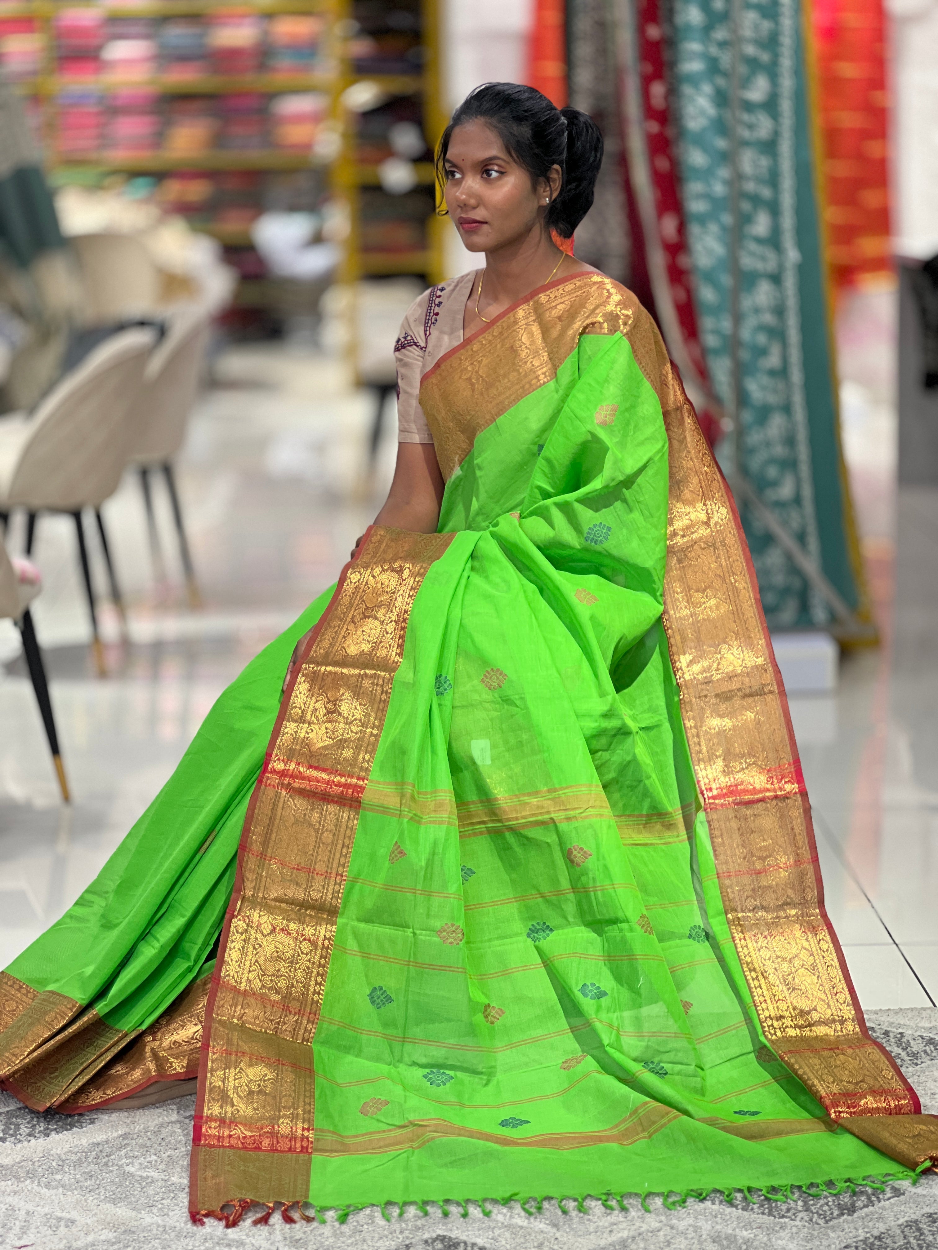 • Kanchi Cotton Sarees with Traditional Borders| VR224