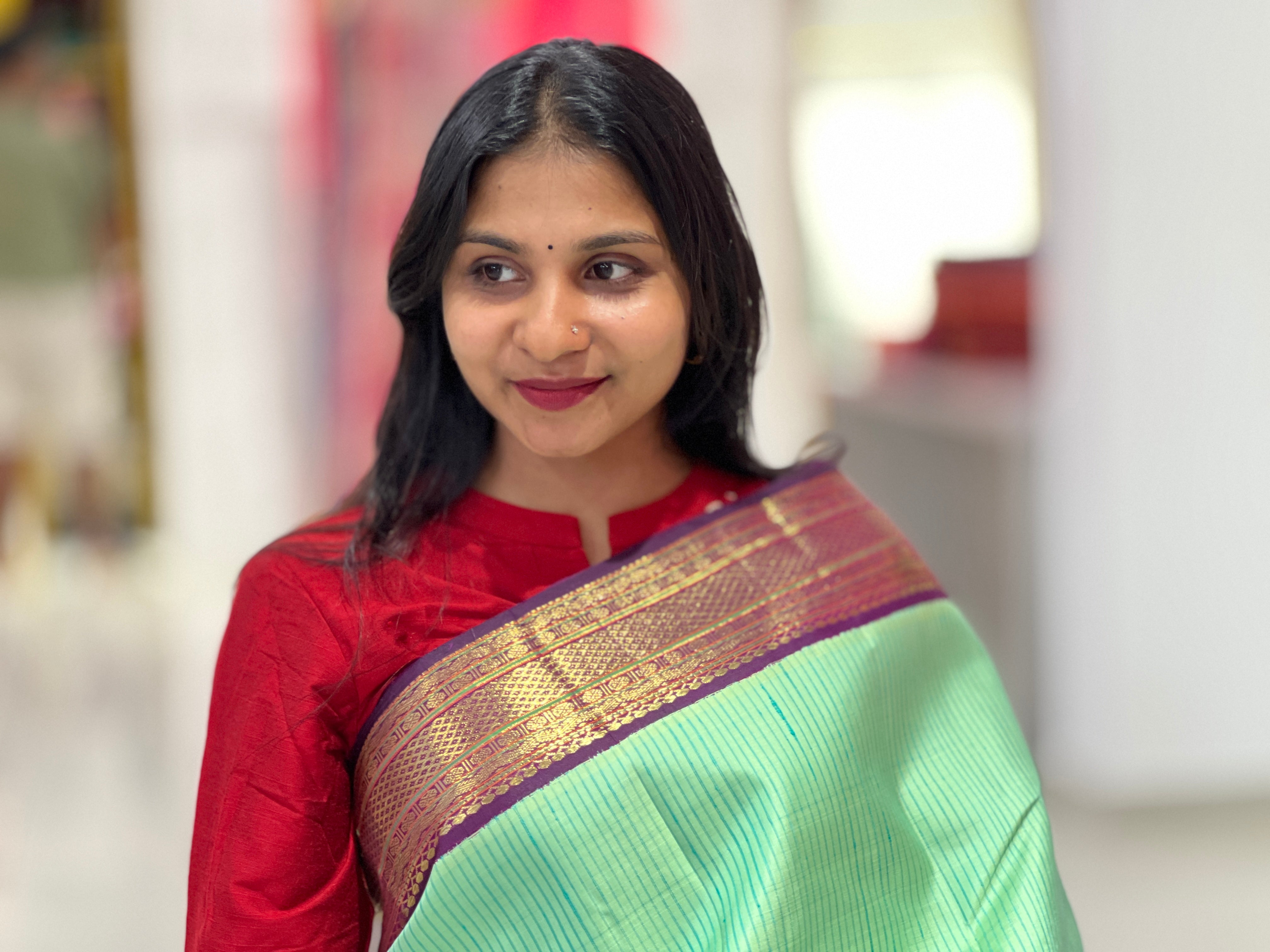 - Style: Silver Zari Weaved Border and Stripe Pattern