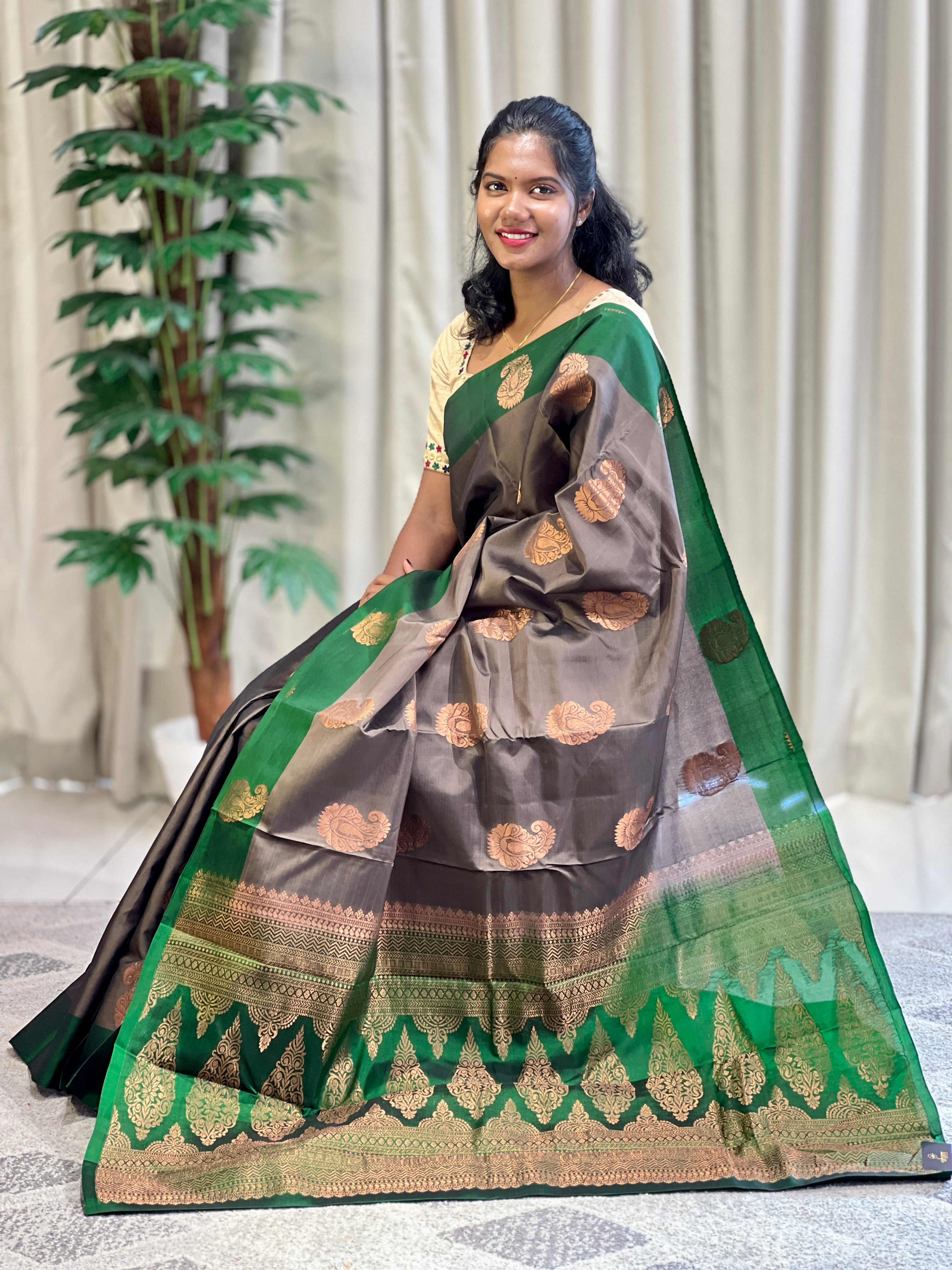 - Style: Zari Woven Traditional Paisley Motifs, Contrast Borders & Pallu, Paisley & Geometric Patterned Pallu