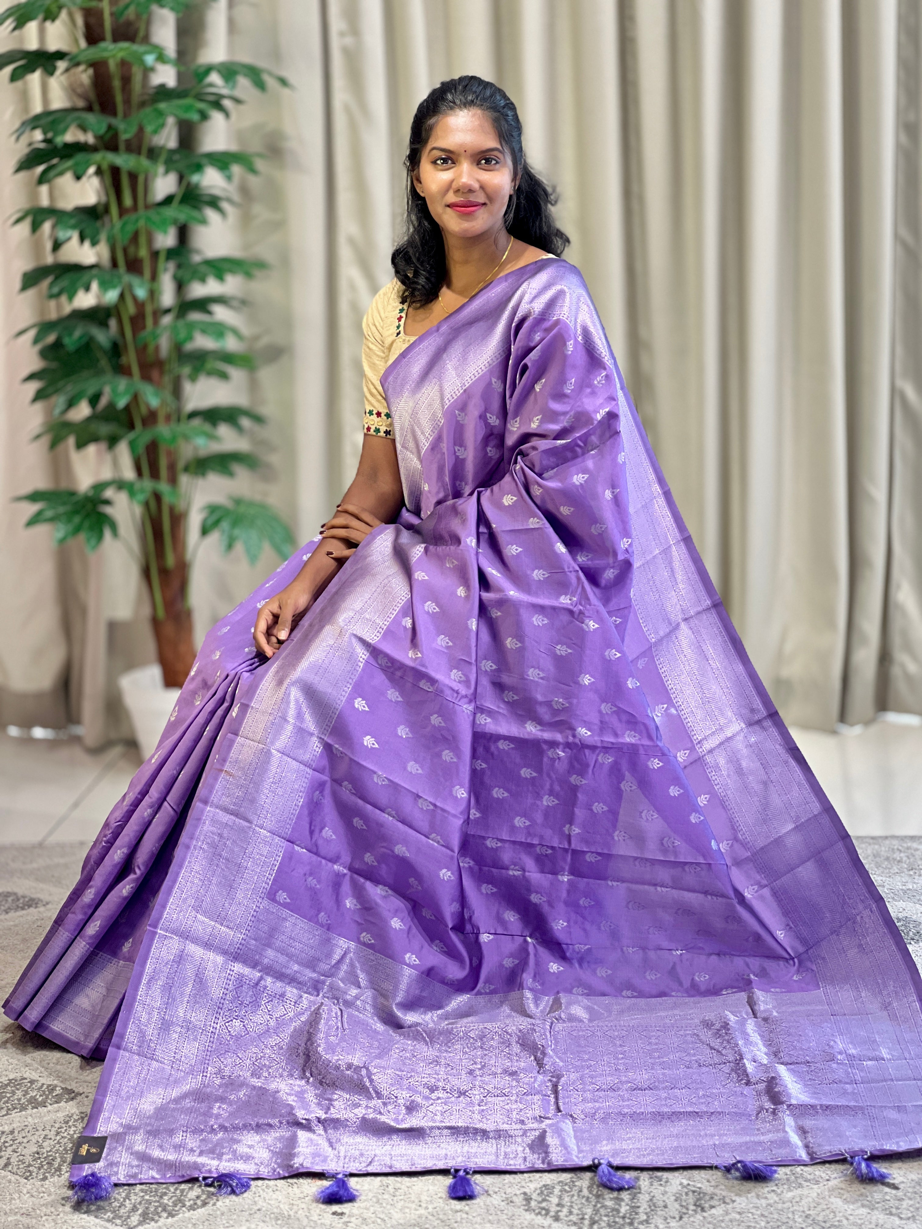 Traditional Silver Zari Buta Weaved Semi Silk Saree | HT174