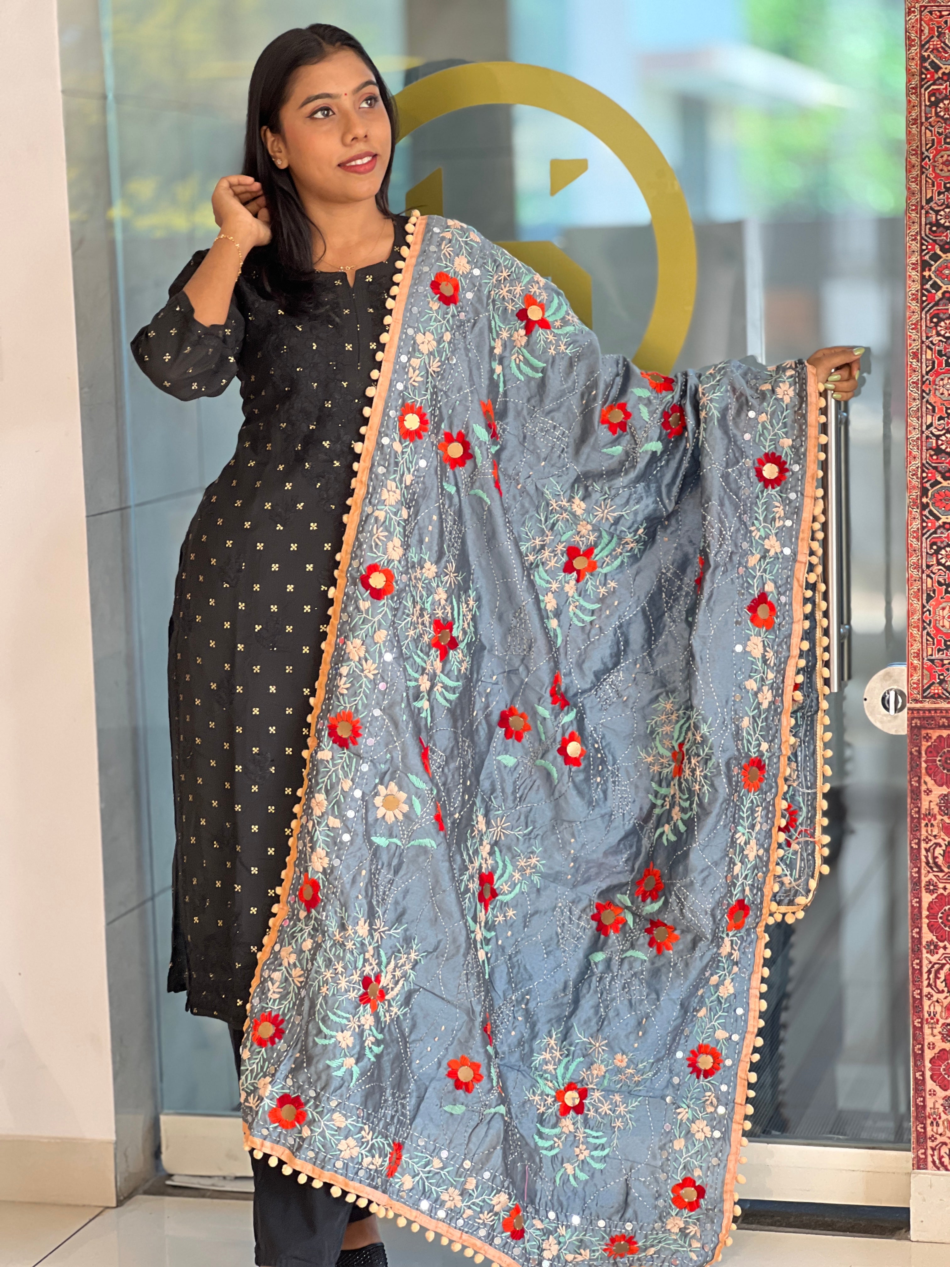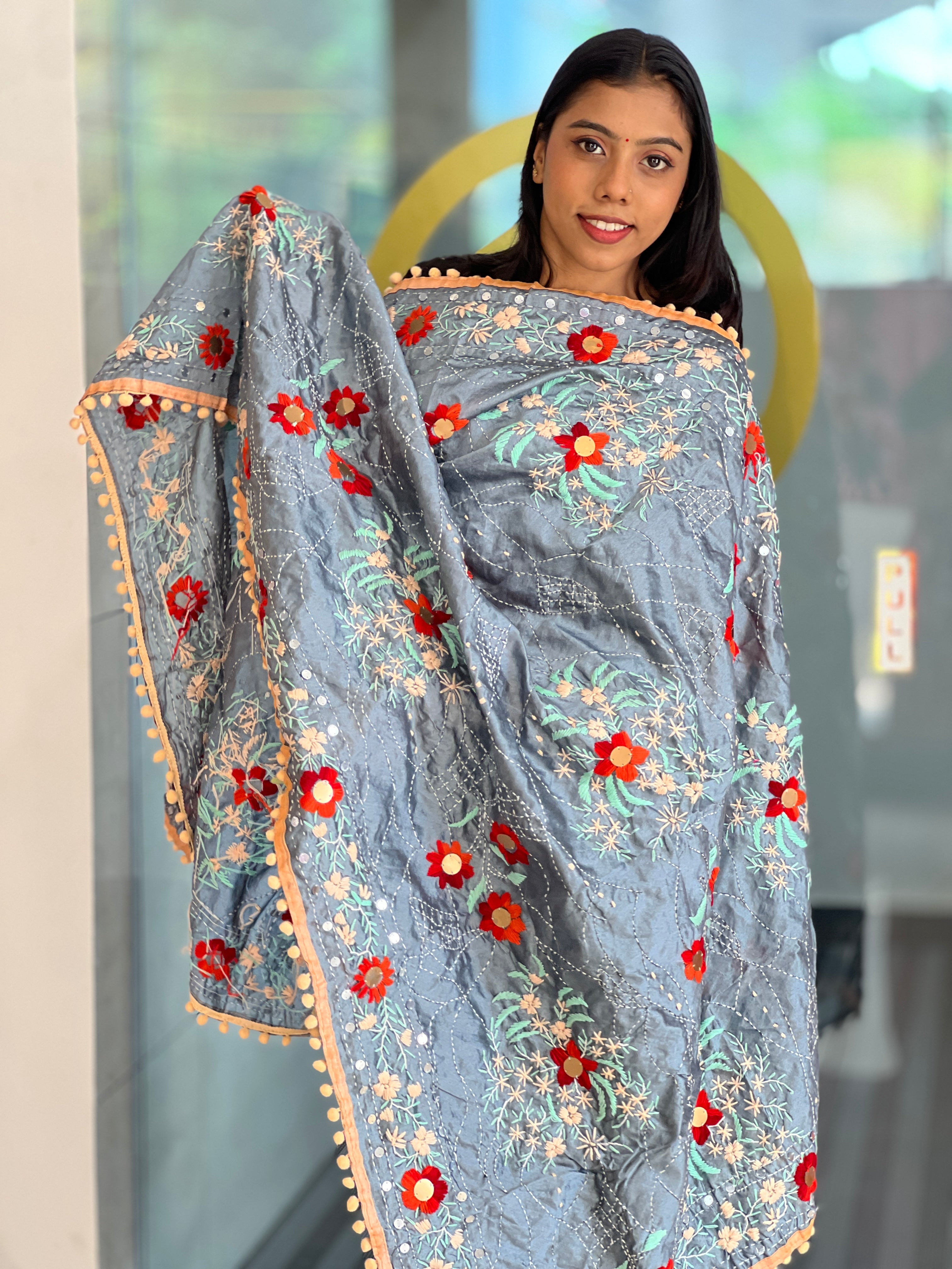 • Traditional Thread Embroidery Detailed Chanderi Finish Dupatta | VET265