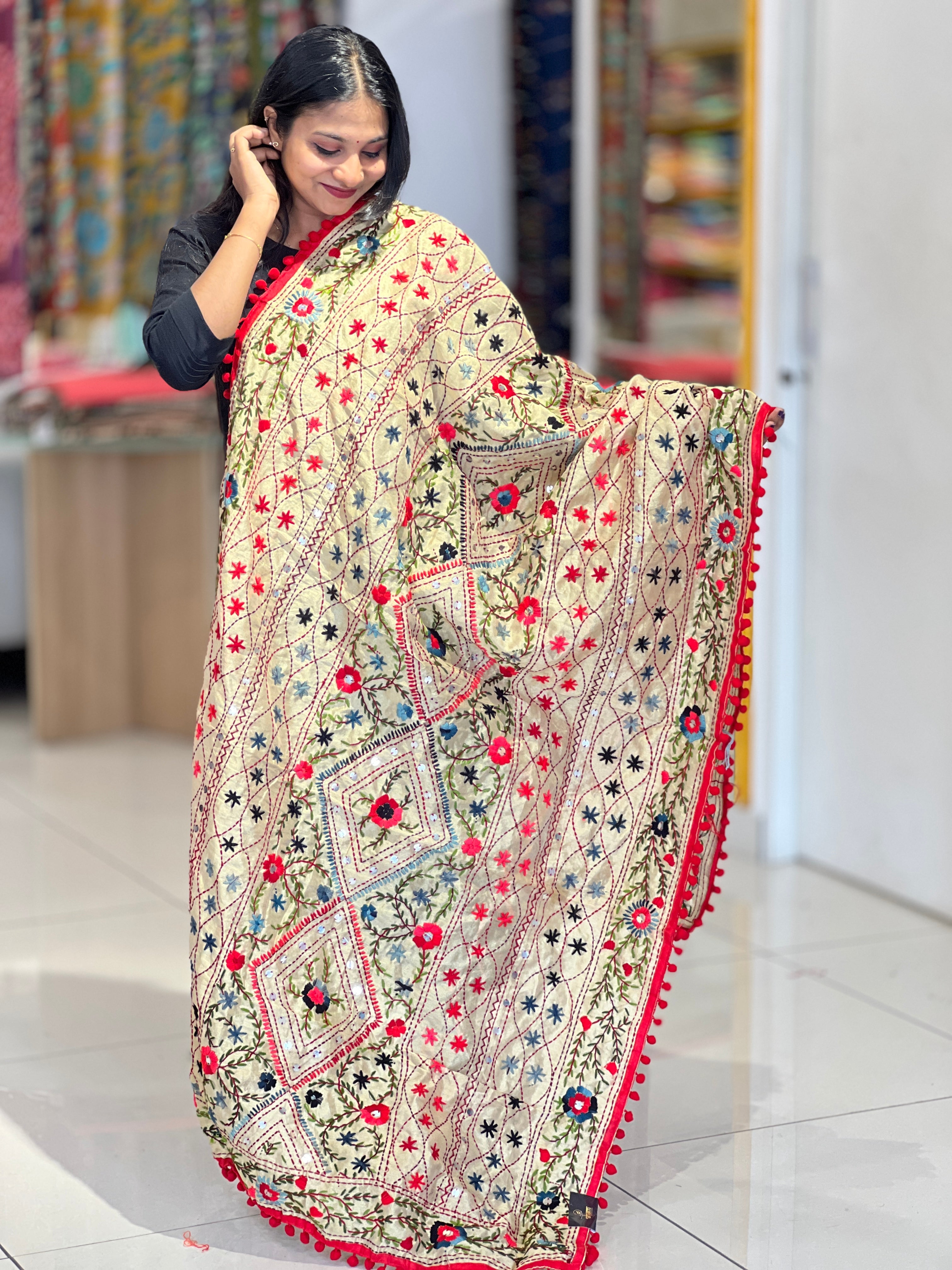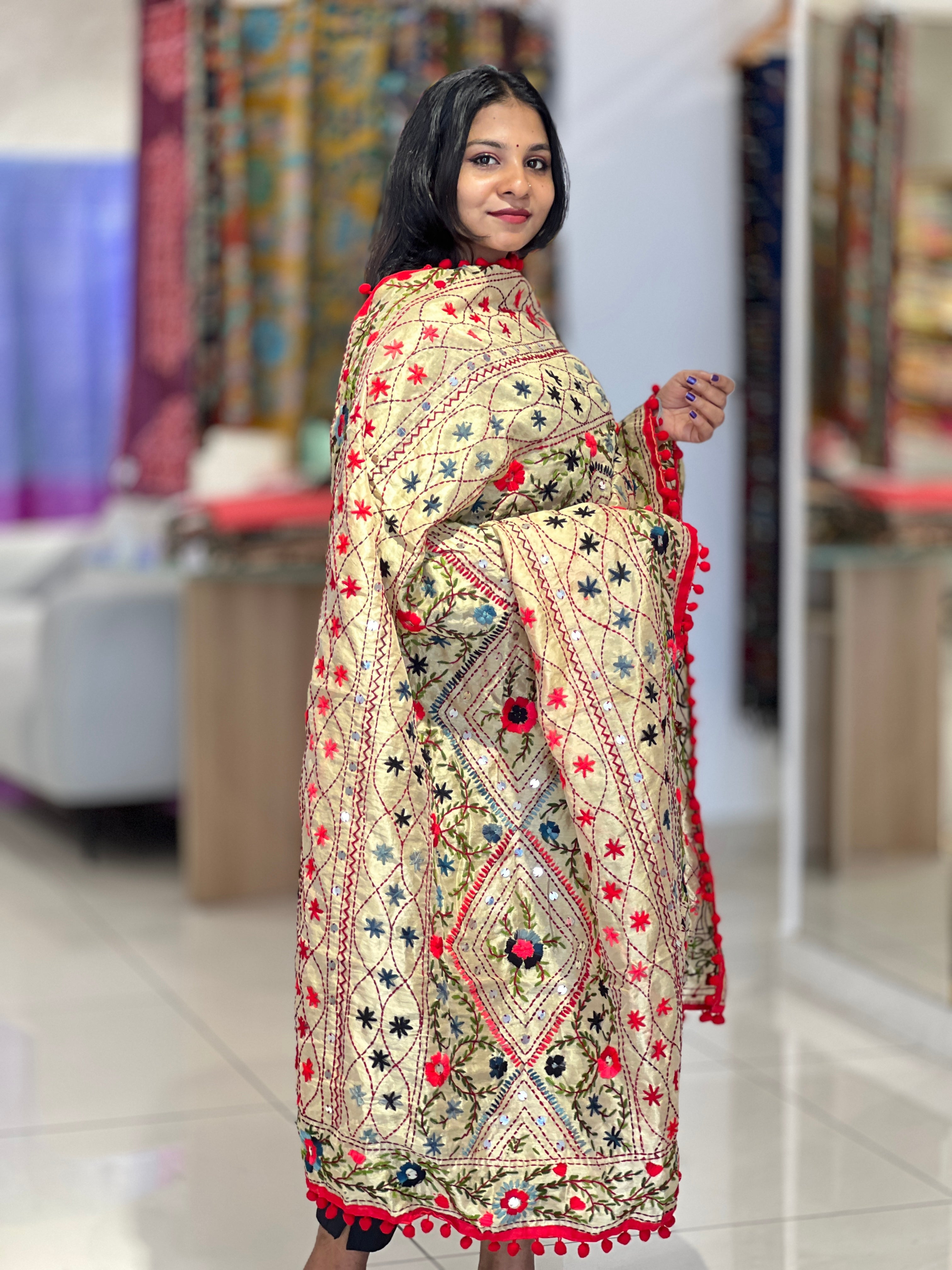 • Traditional Thread Embroidery Detailed Chanderi Finish Dupatta | VET287