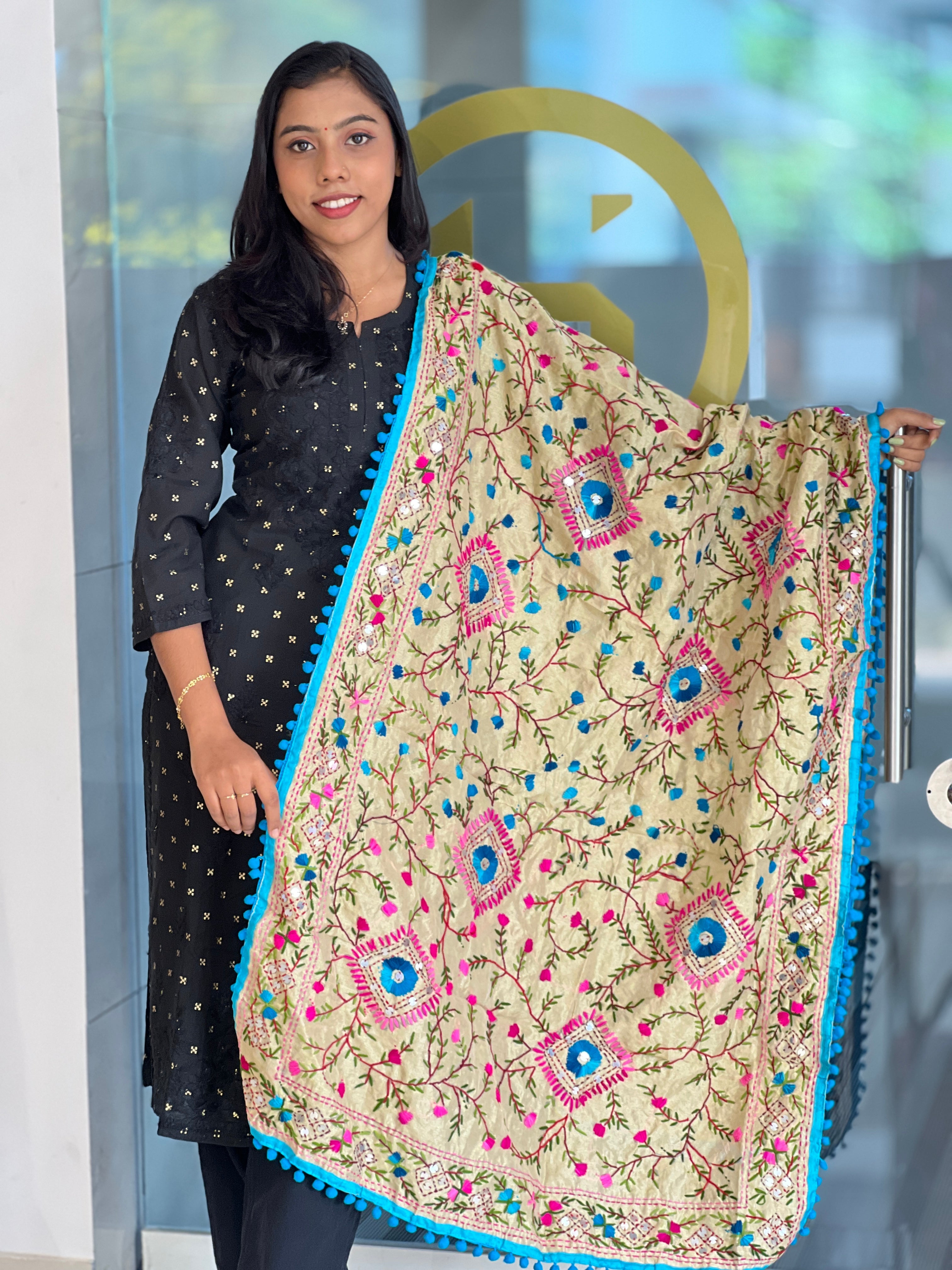 • Traditional Thread Embroidery Detailed Chanderi Finish Dupatta | VET289