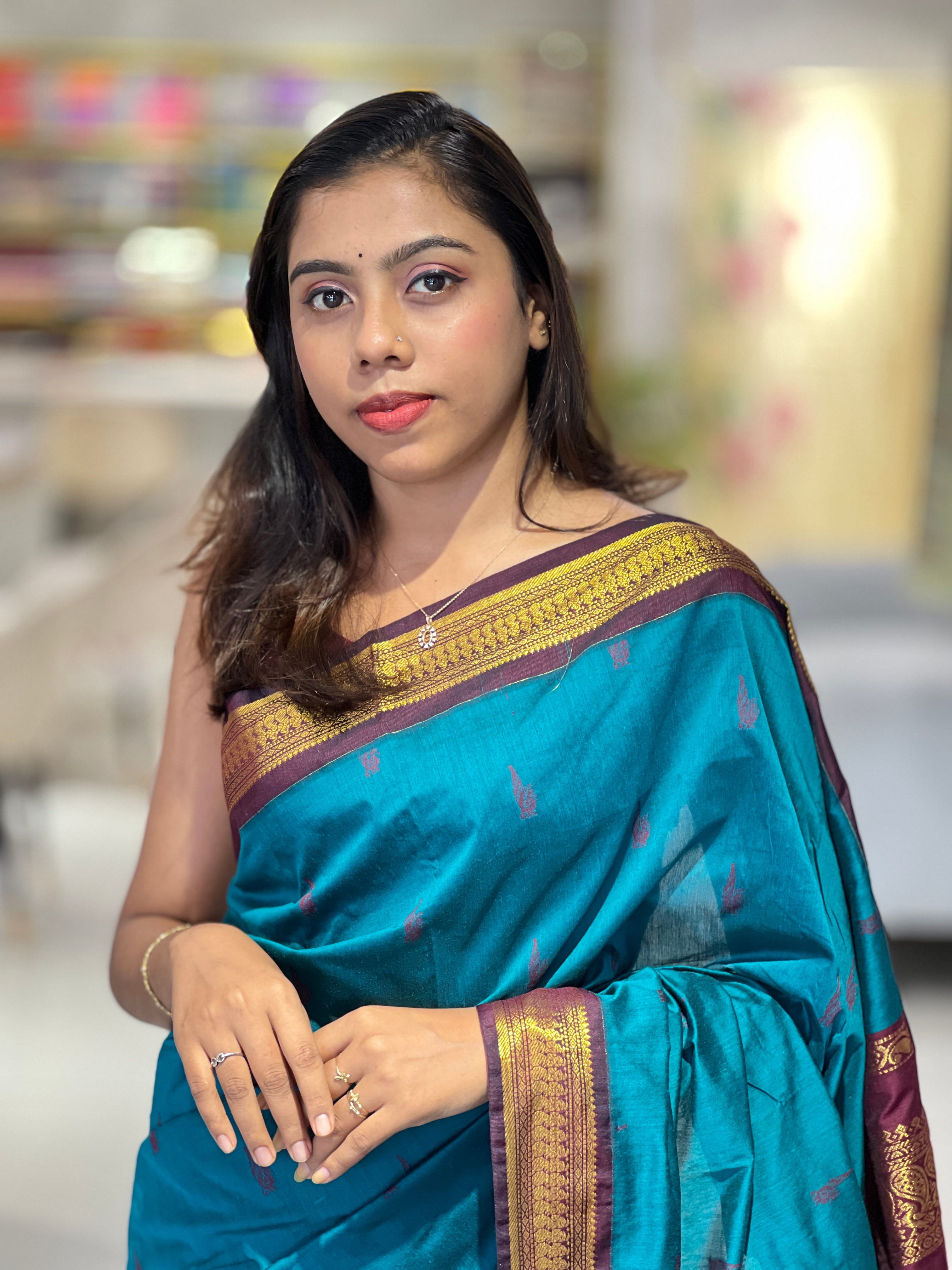 • Traditional Thread Weaved Cotton Saree | ONA111