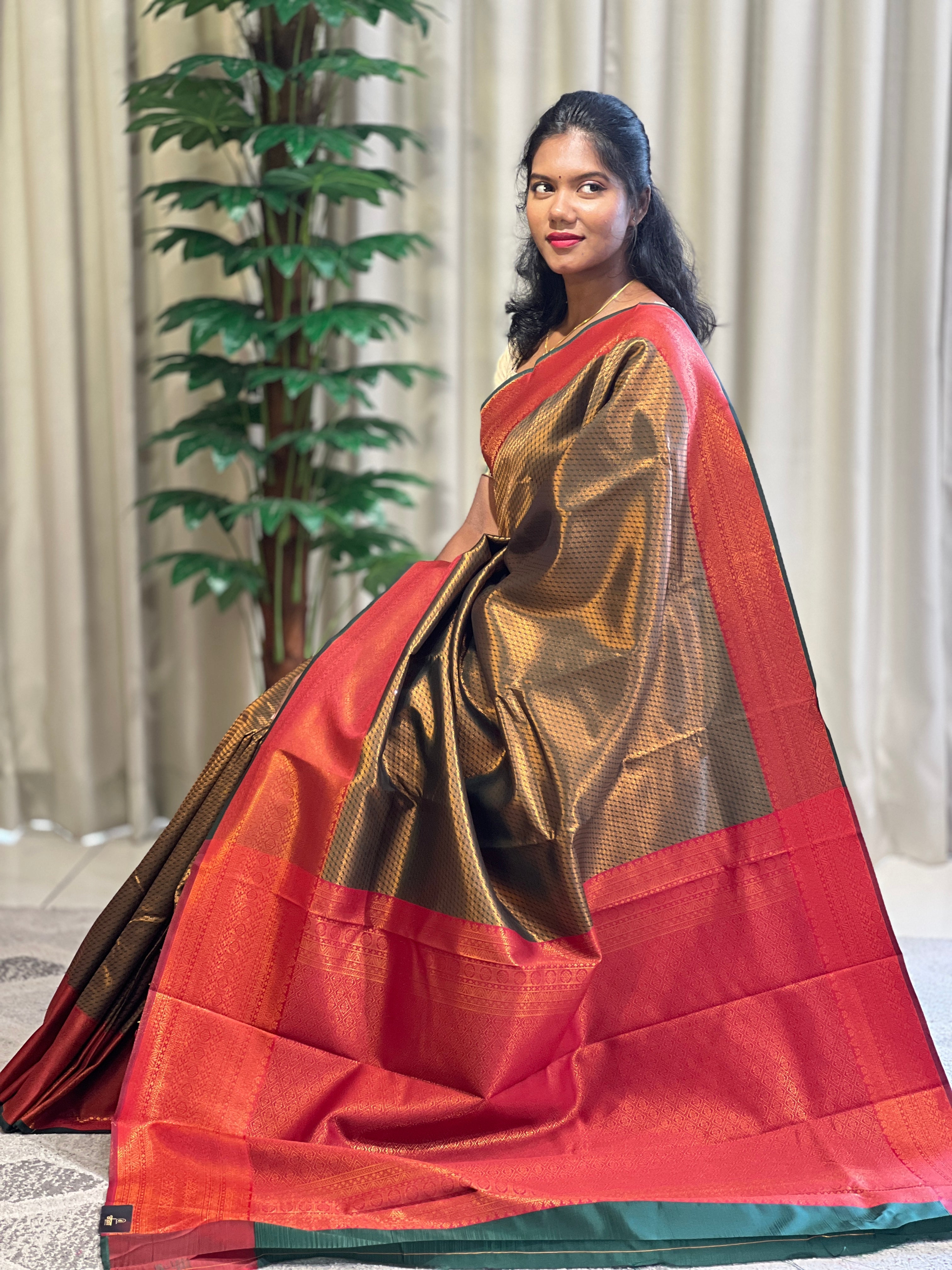 • Style:  Zari Woven, Brocade Pattern, Traditional Borders, Diamond Patterned Pallu