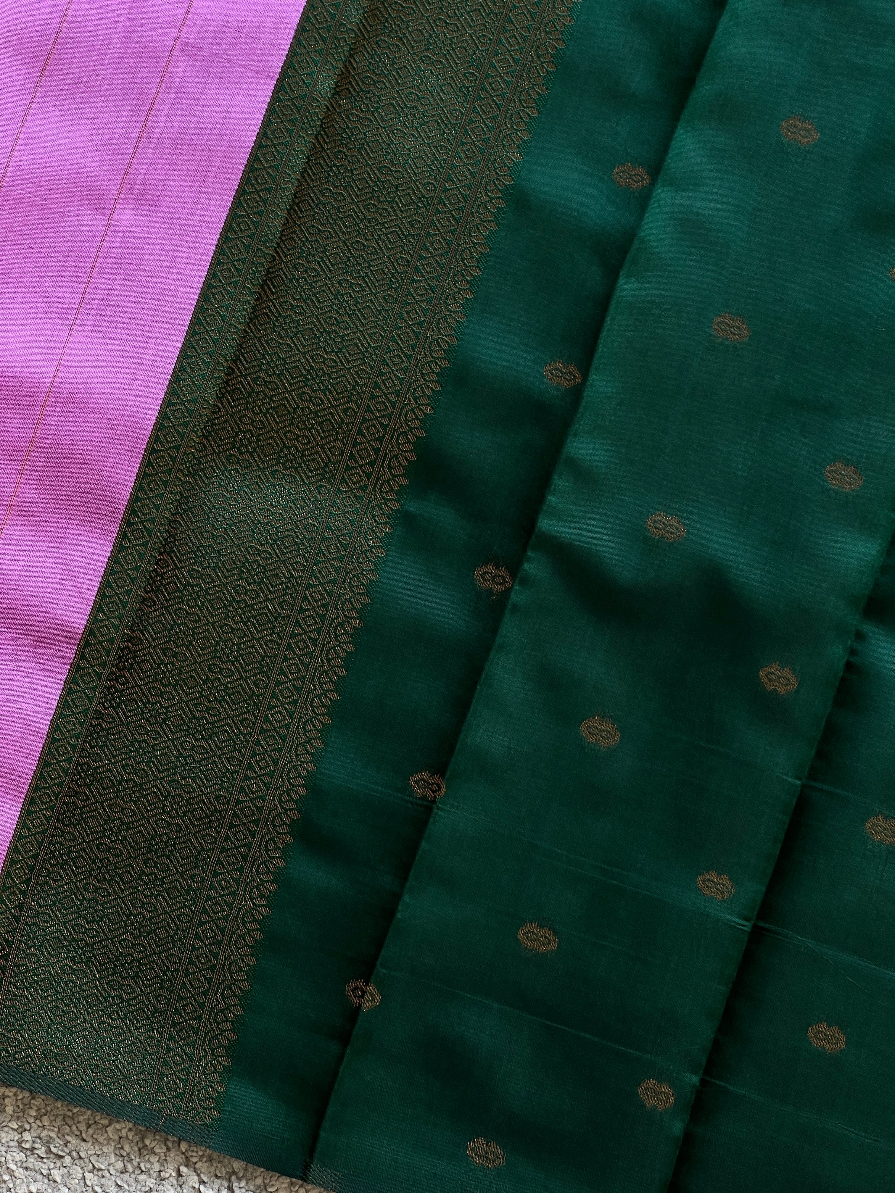 • Style: Zari Woven Stripe Pattern, Contrast Border & Pallu, Traditional Geometric Patterned Borders, Brocade Pallu