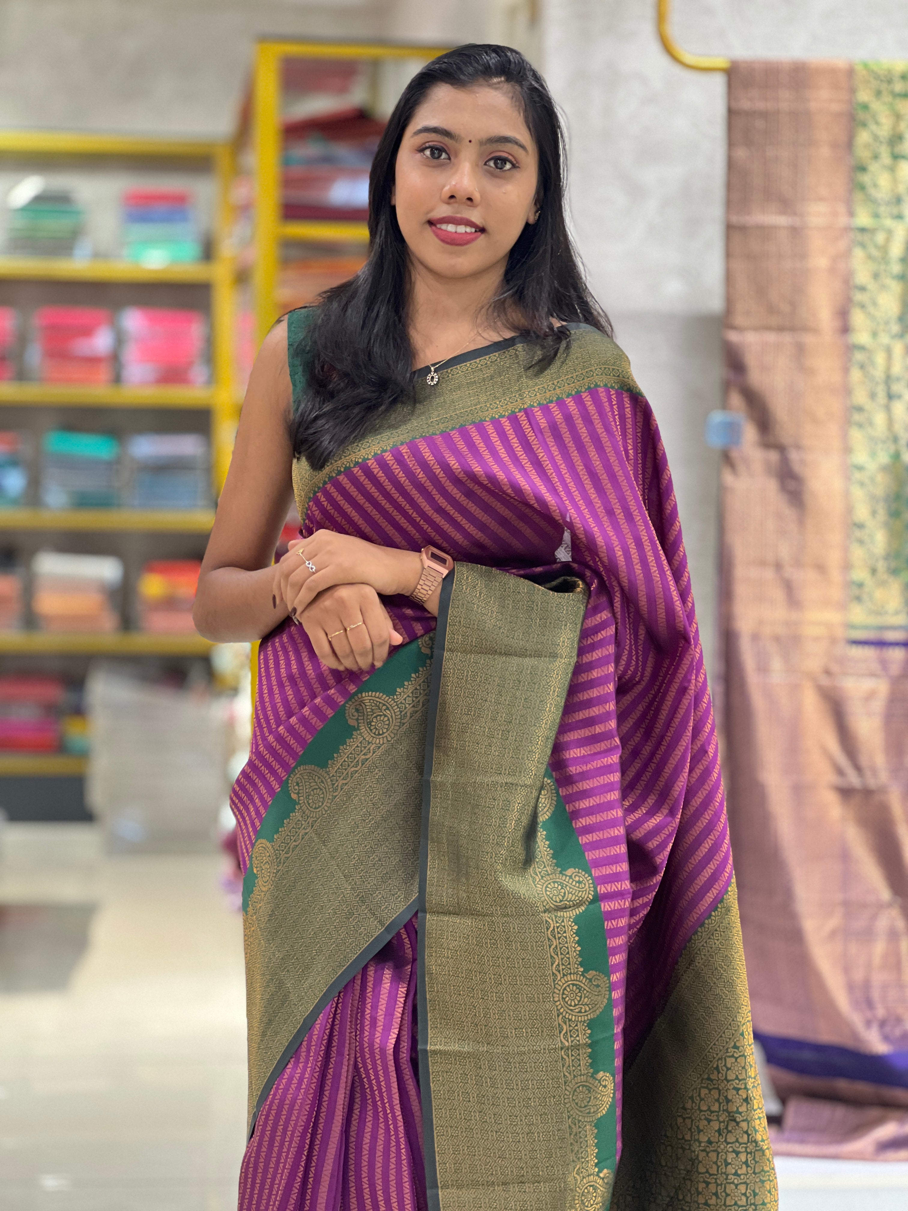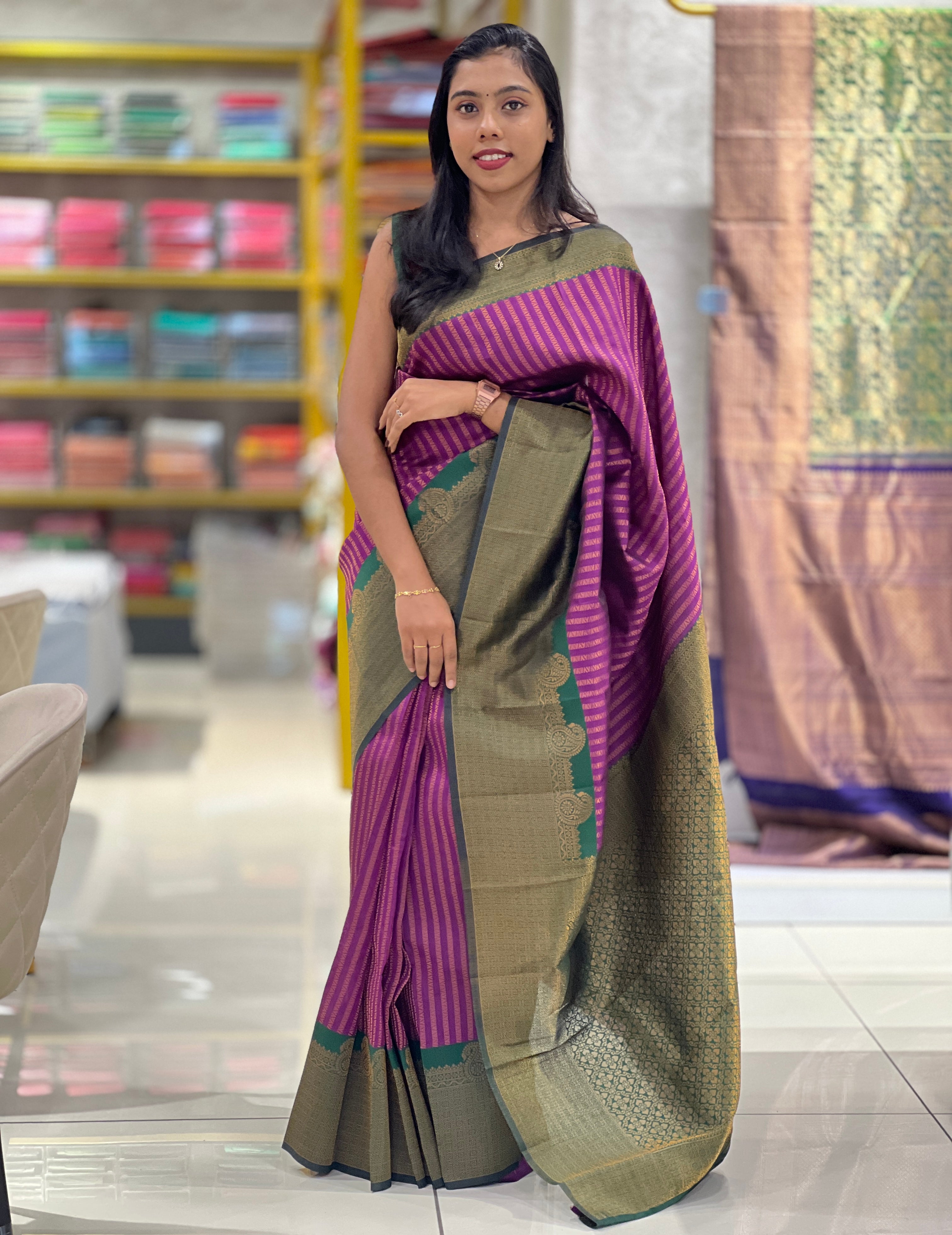 Traditional Zari Woven Stripe Patterned Semi Silk Saree | SRK111