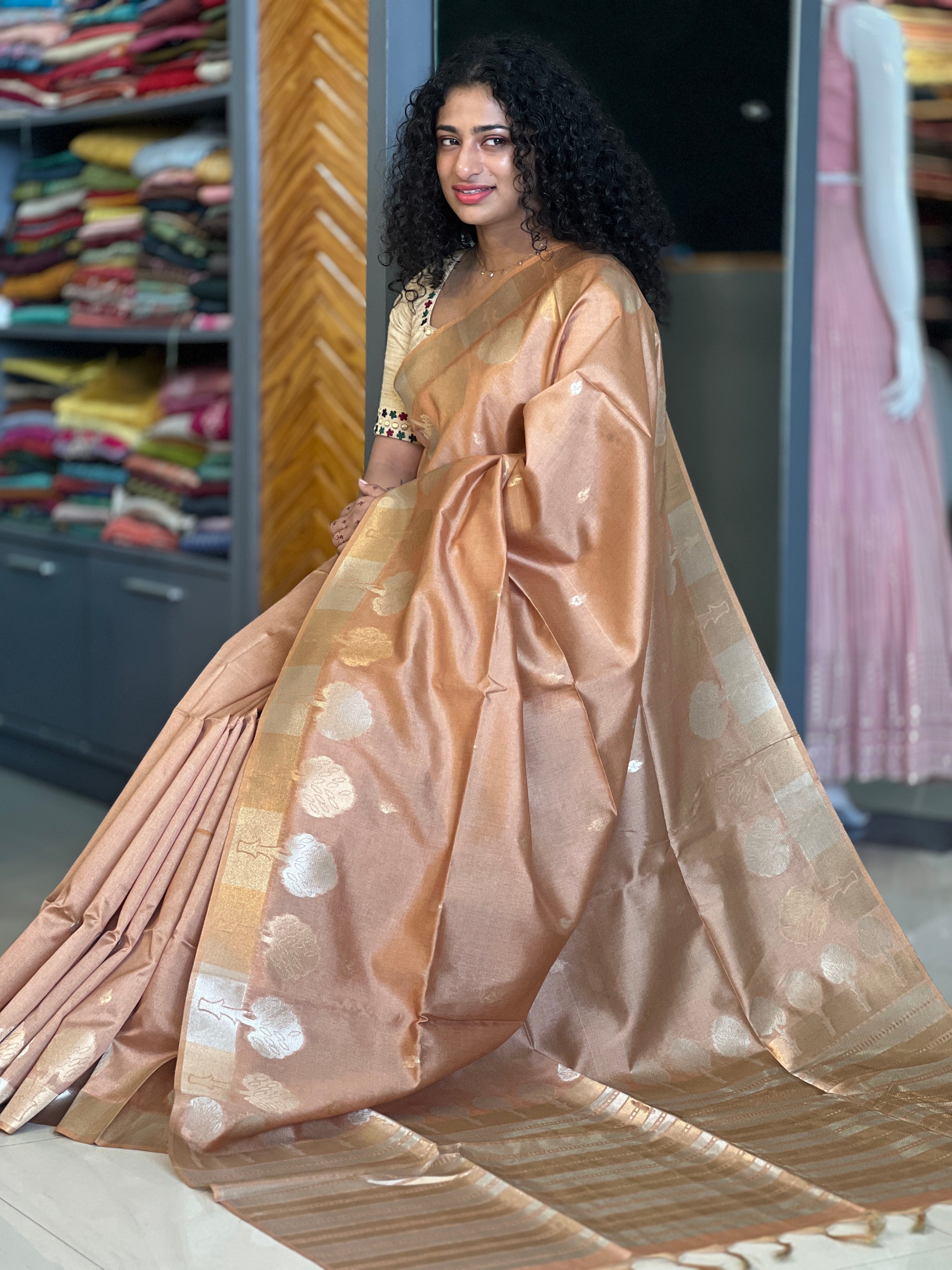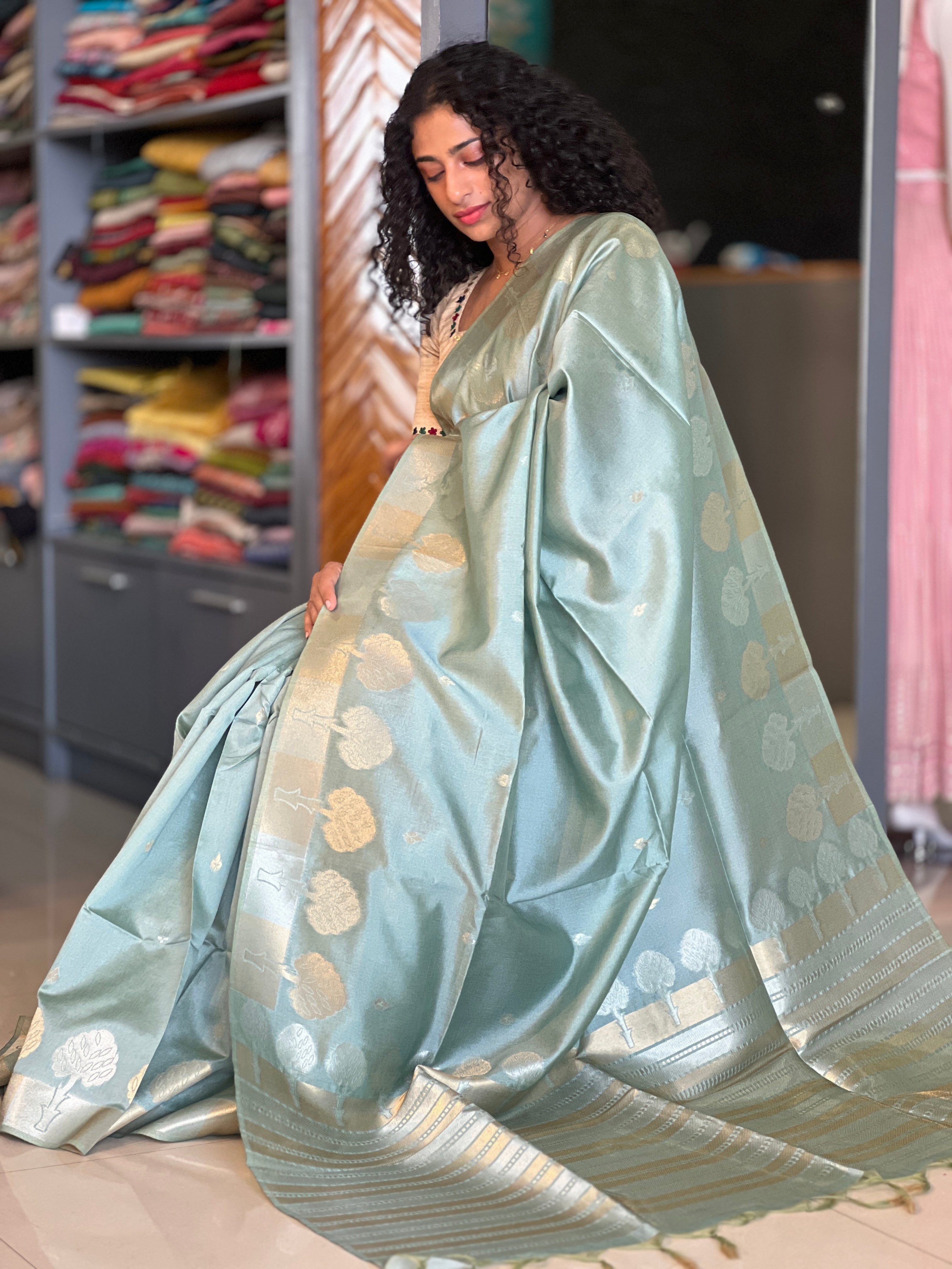 - Style: Light Golden & Sliver Zari Weaving ,Tree Pattern,Stripe Weaving Pattern