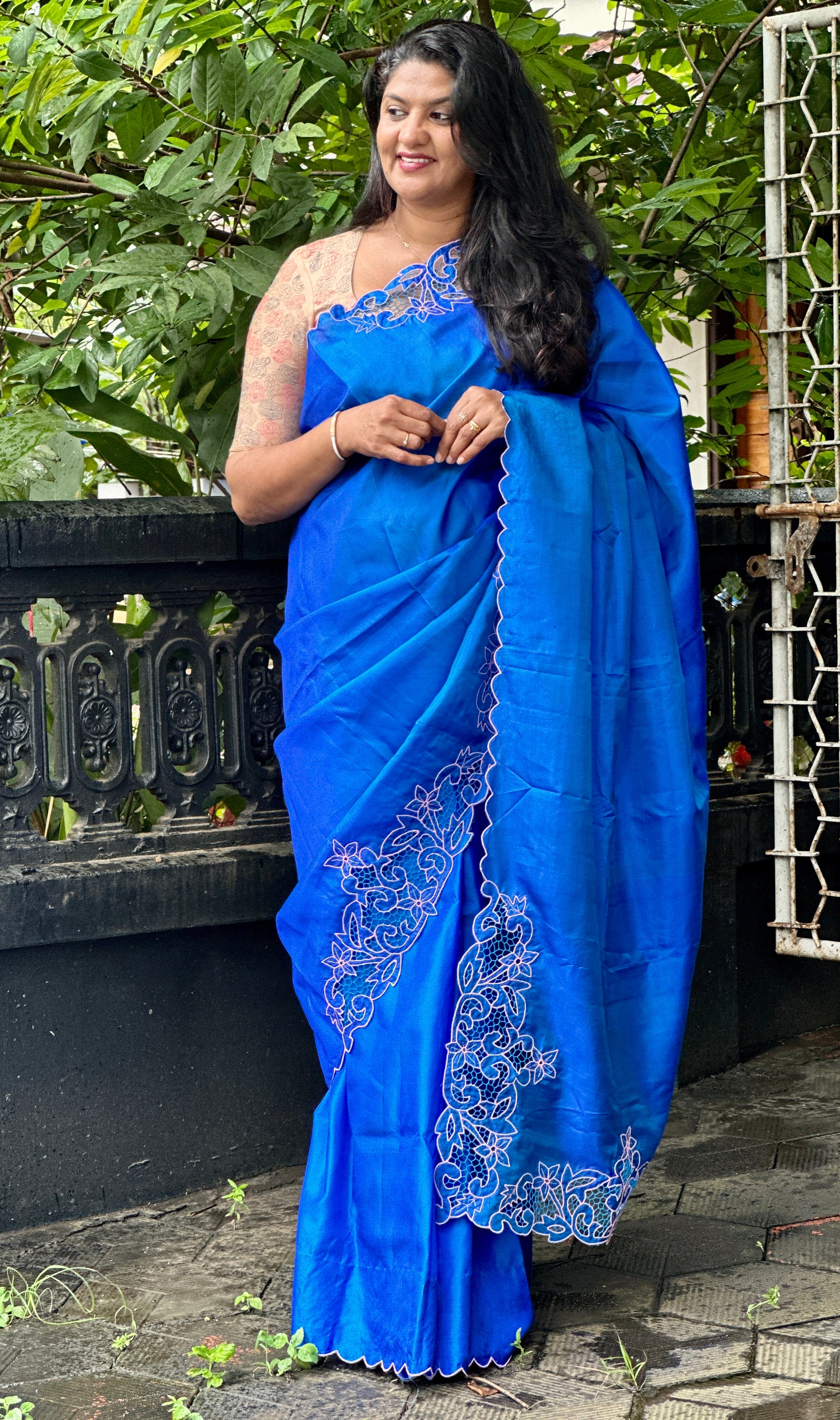 • Twine Cut Work Placement Detailed Soft Silk Saree | TC401
