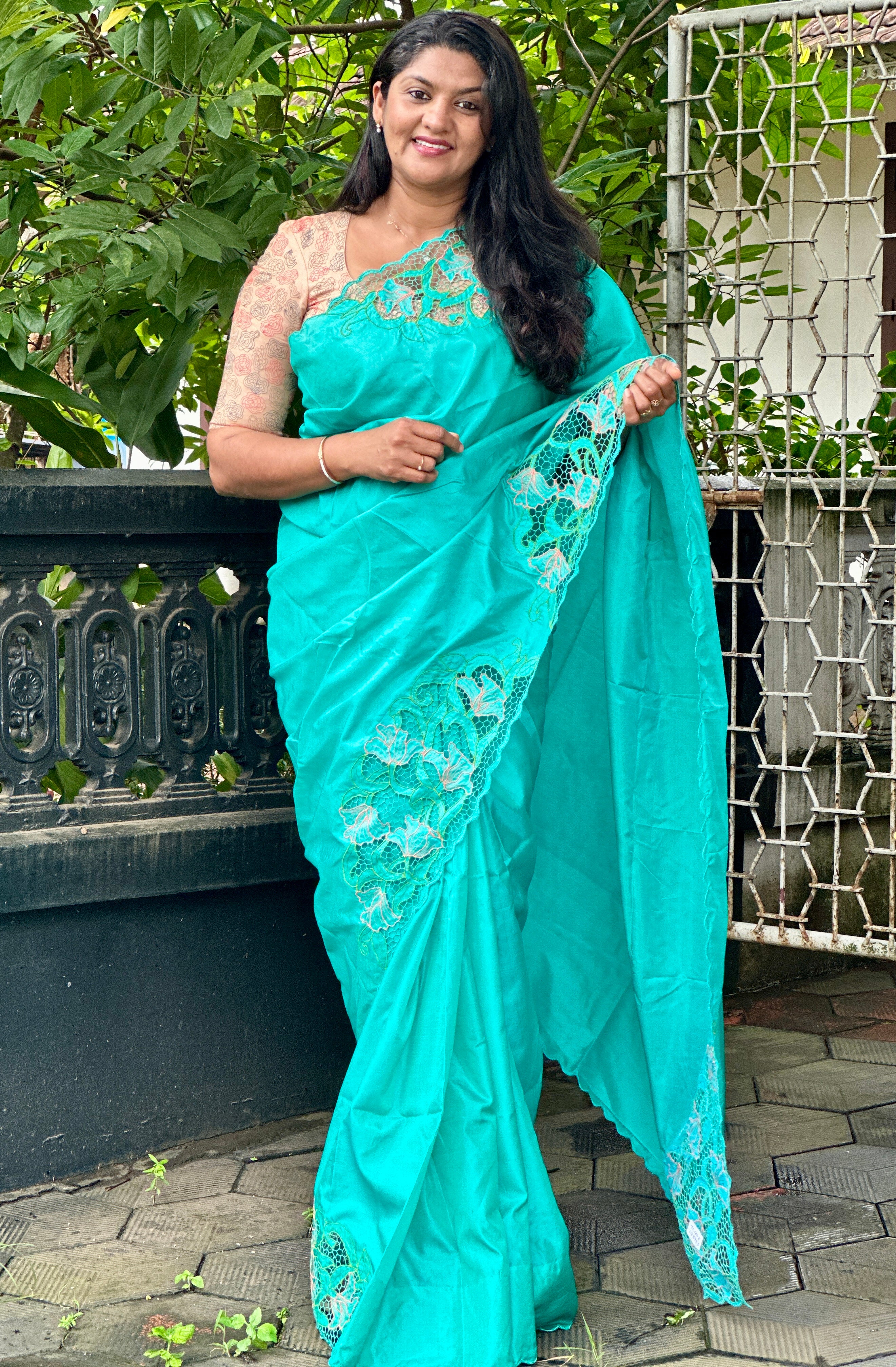 - Style: Twine Cut Work With Floral Embroidery Placement, Scallop Edges