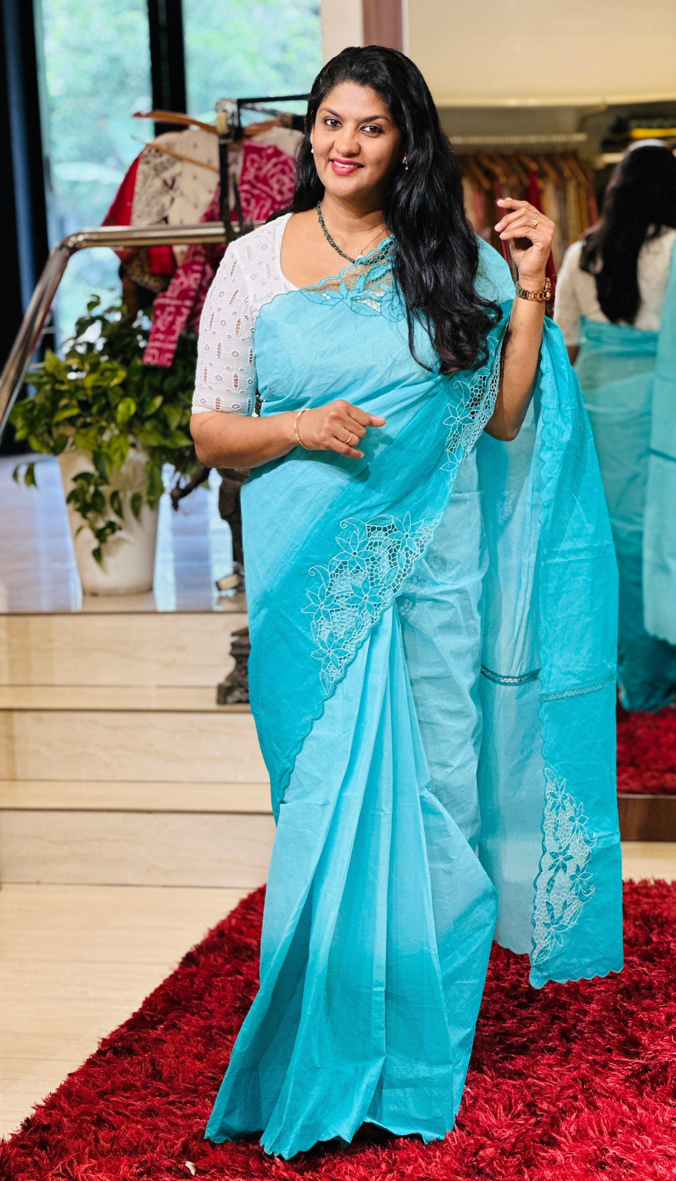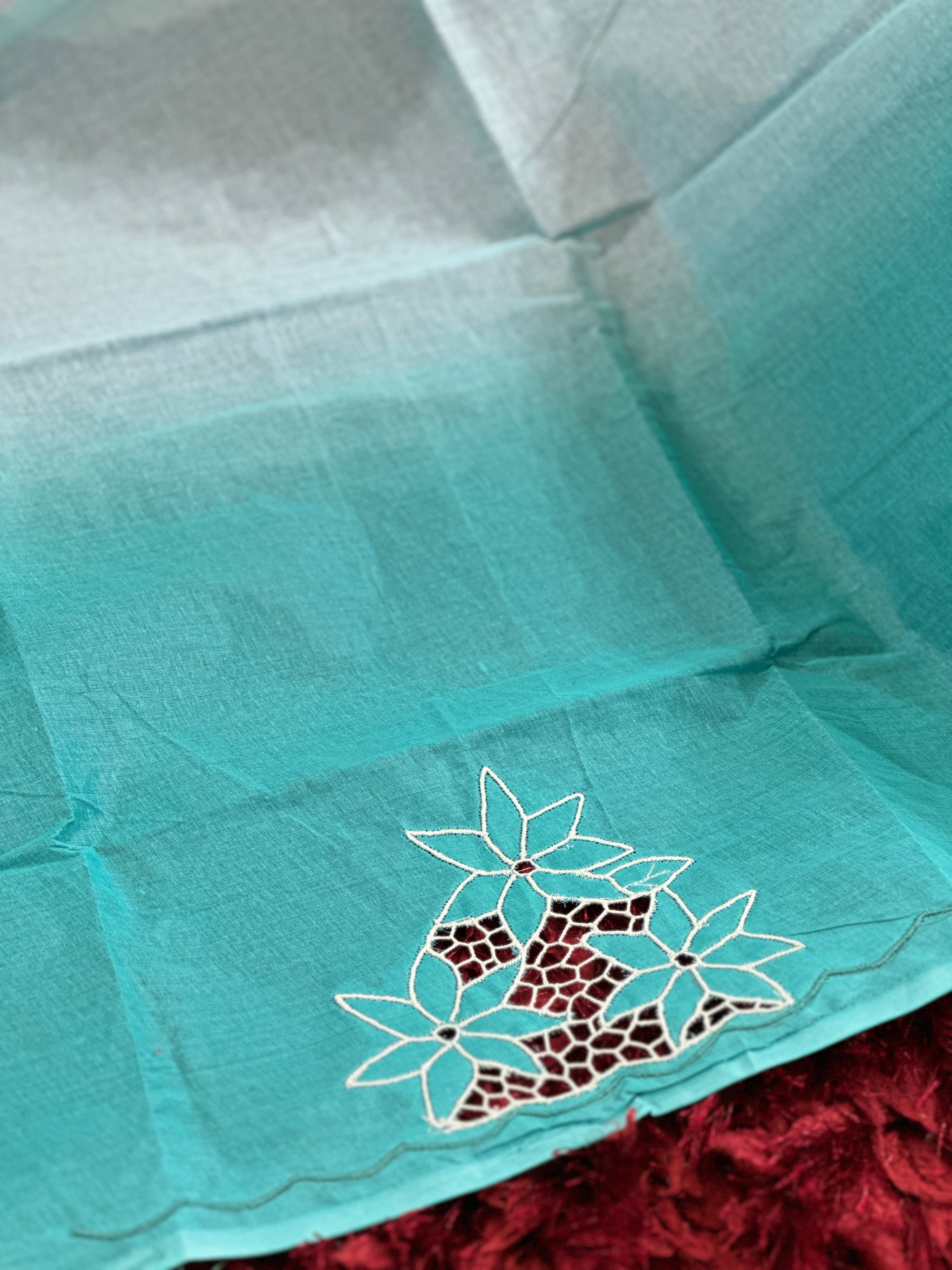 - Style: Shaded Pattern, Twine Cut Work With Floral Embroidery Placement Detailing, Scallop Edges, Joint Cut Work Detailed Pallu