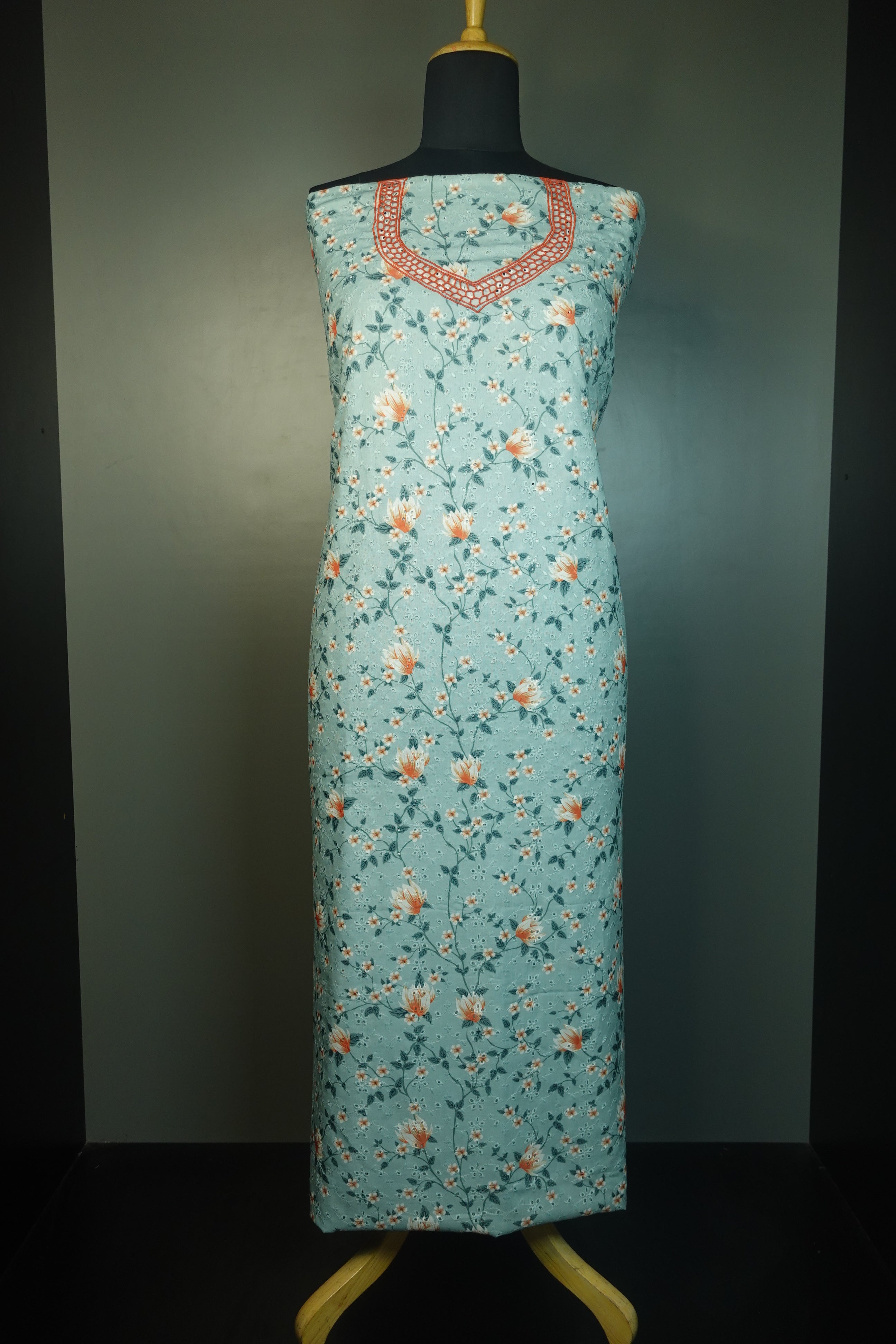 - Style: Schiffli Pattern With Floral Digital Printed, Twine Cutwork Detailed Yoke Portion