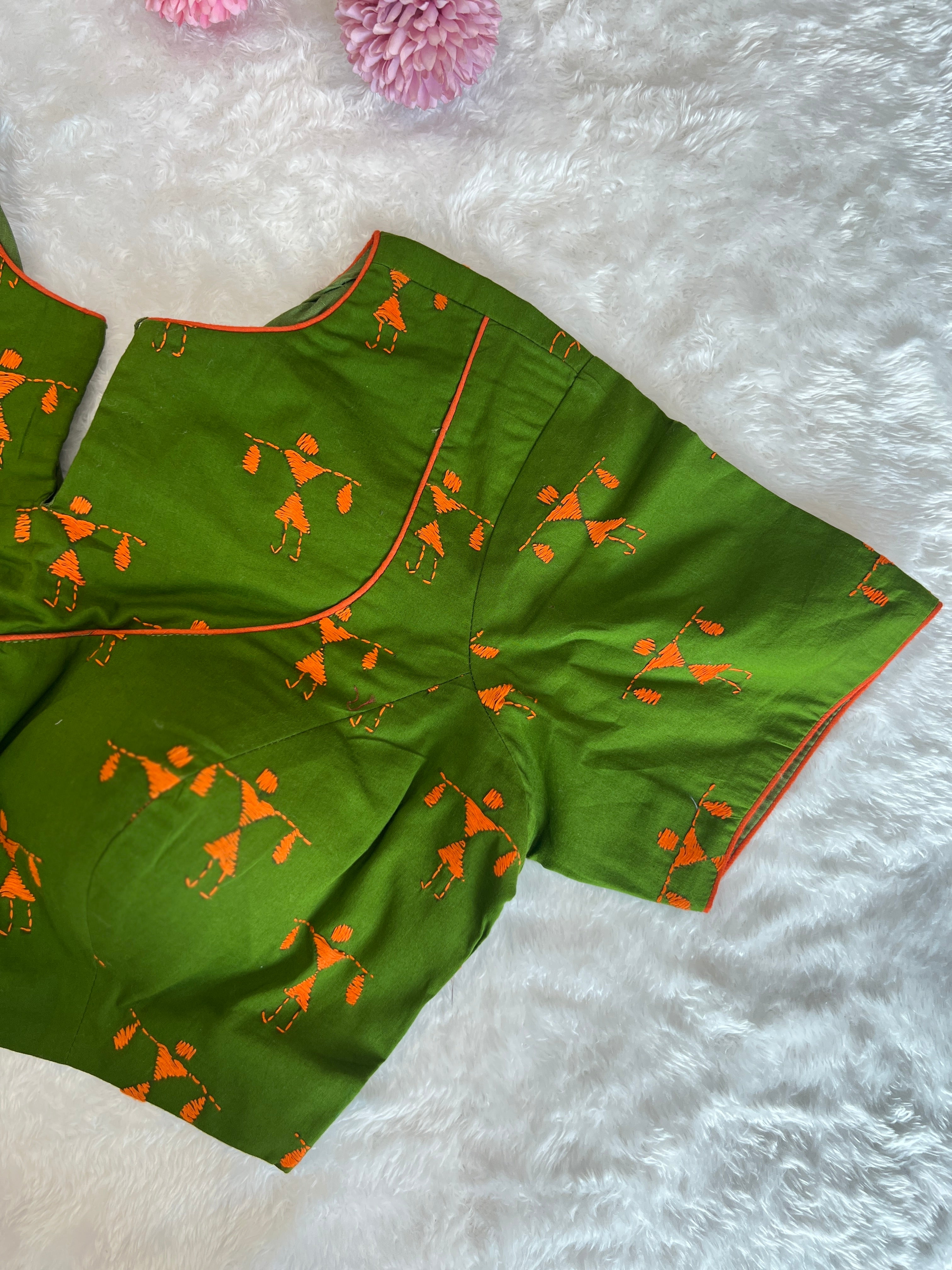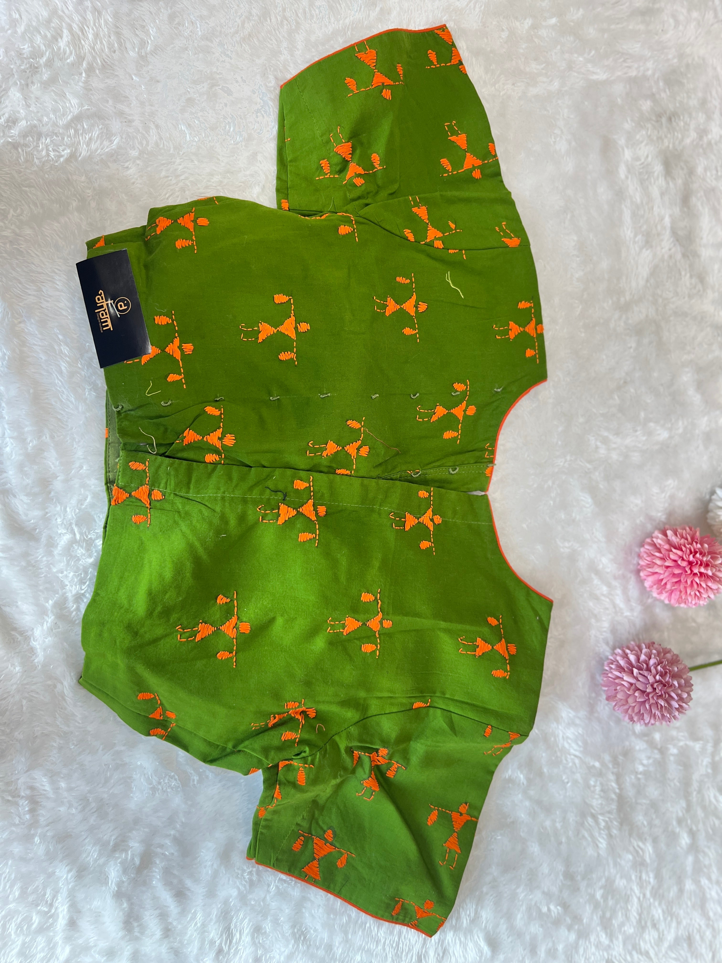 - Style: Hand Embroidery, Warli Pattern, Padded, With Lining, Princess Cut, Front & Back High Neck With Slit Detailing, Piping Detailing