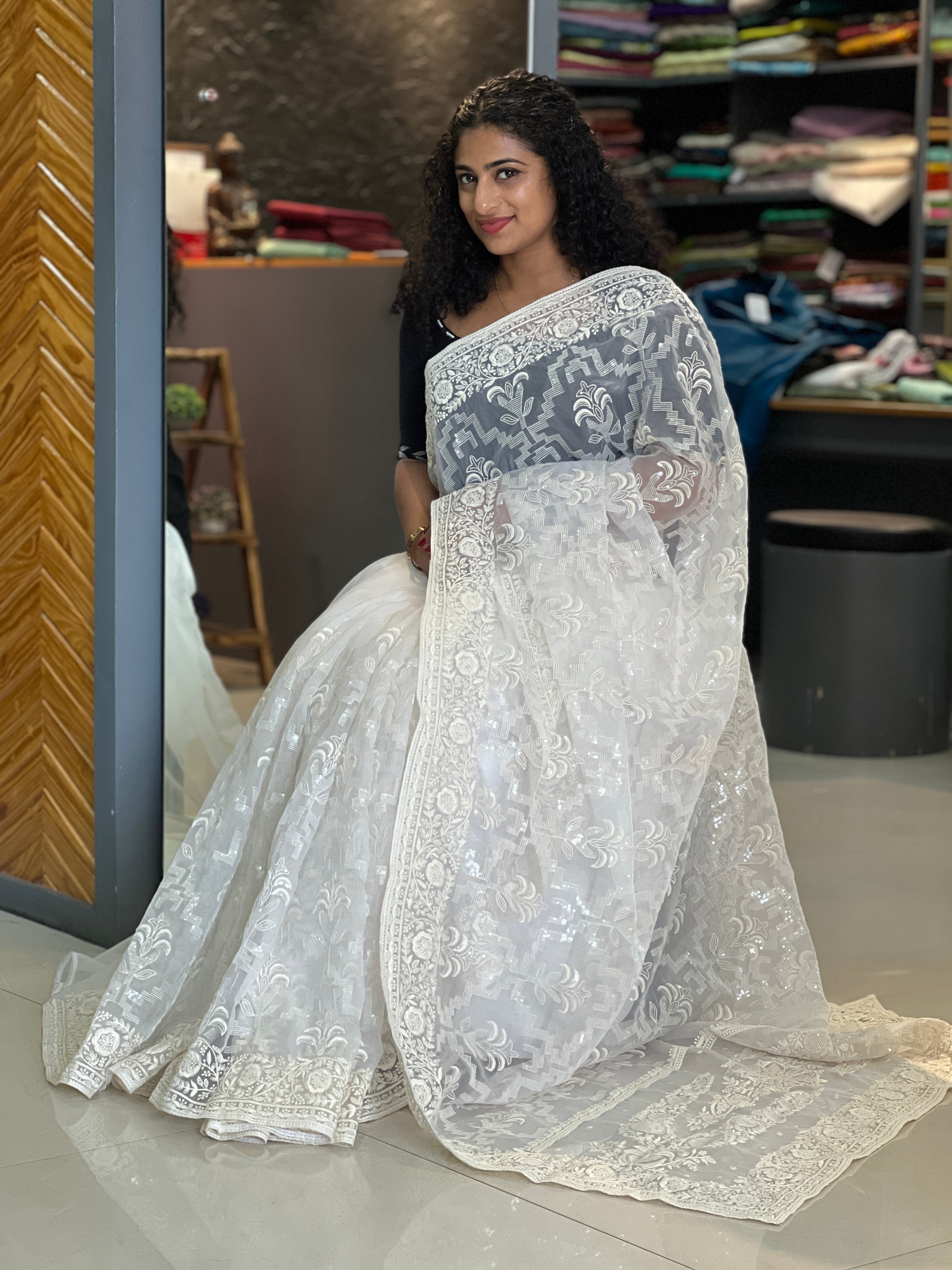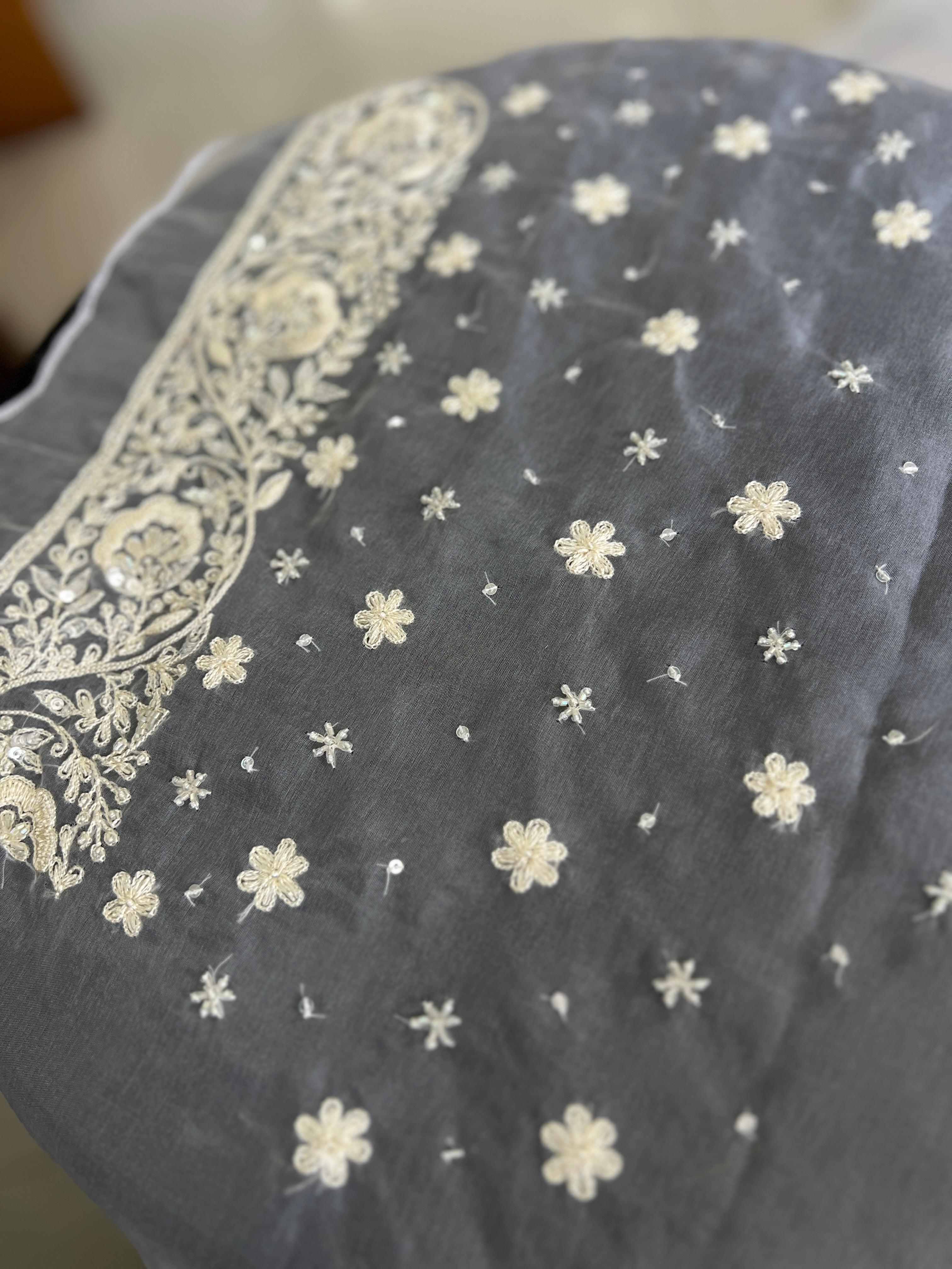 - Style: Thread and Sequence Weaved Design, Floral Embroidery Border