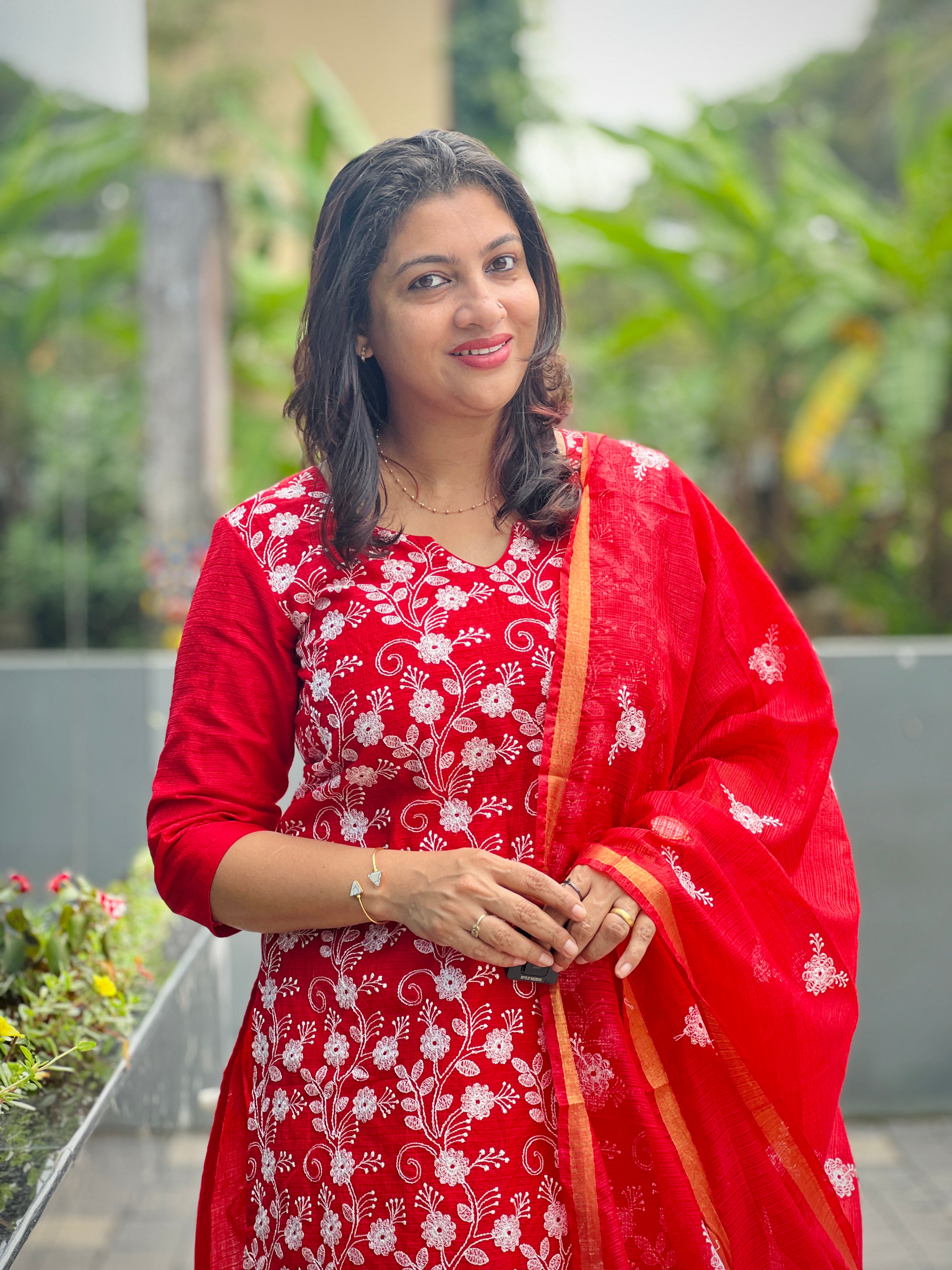 - Style: White Thread Floral Embroidery Design, Golden Zari Border Pattern