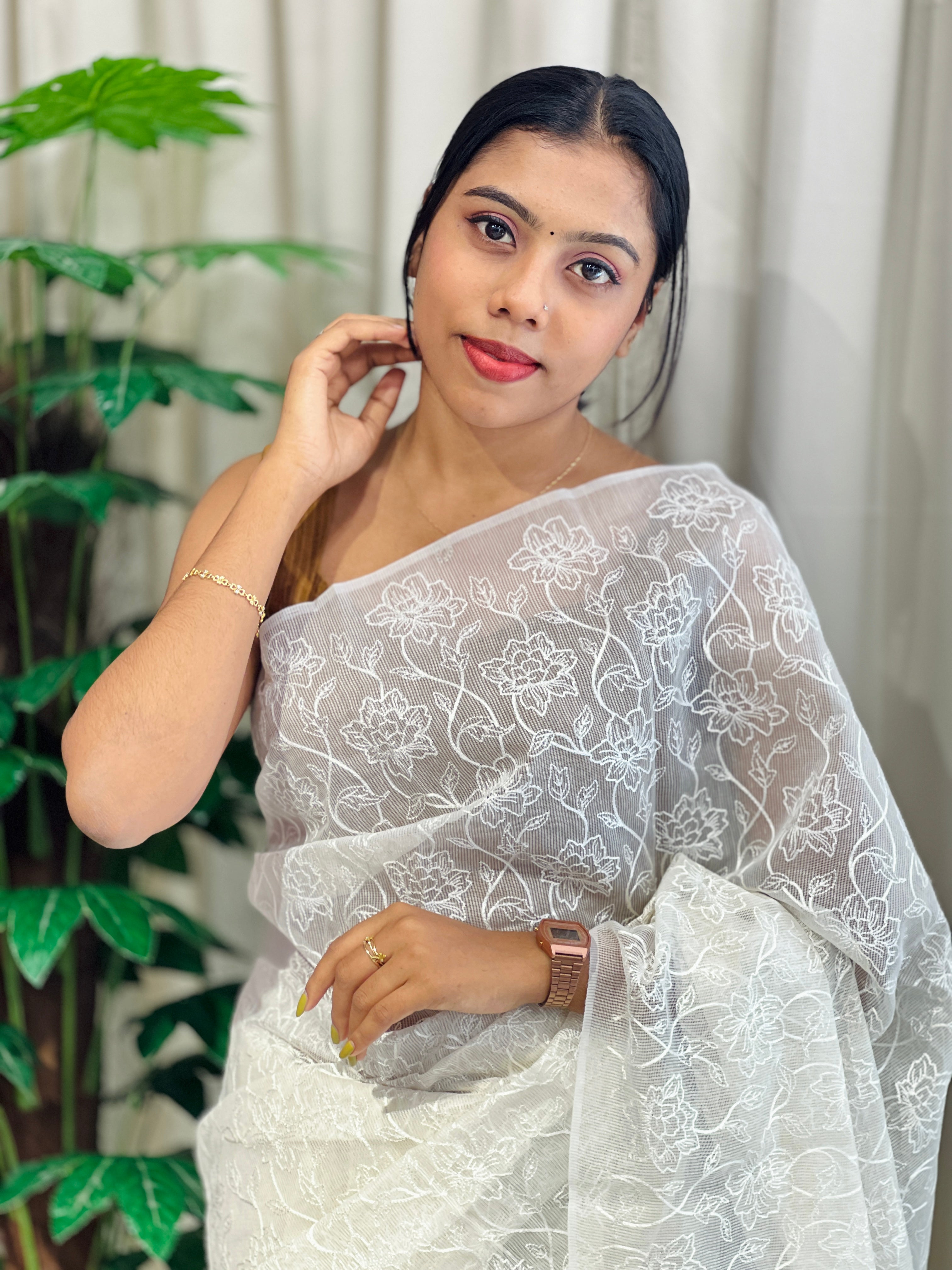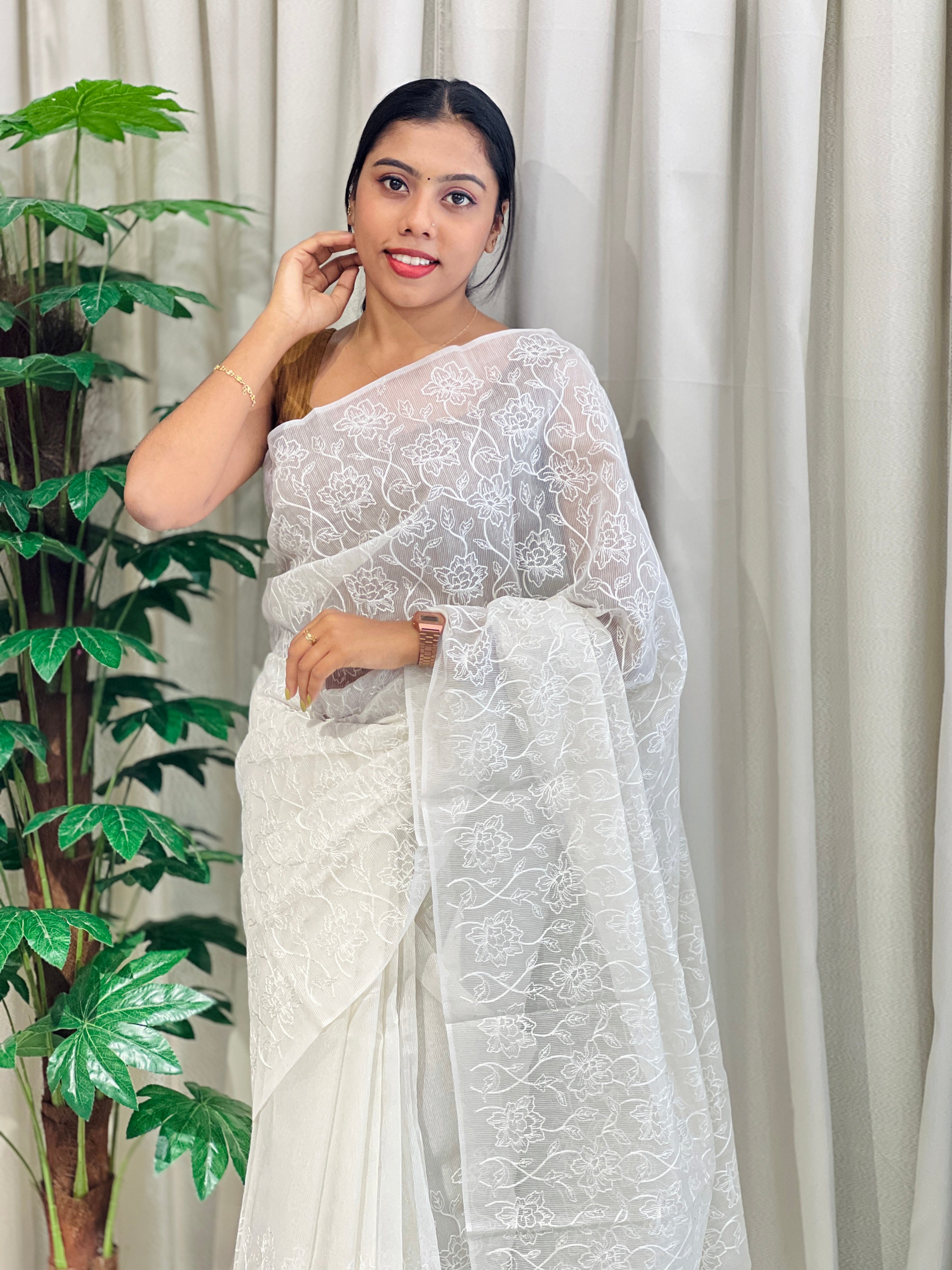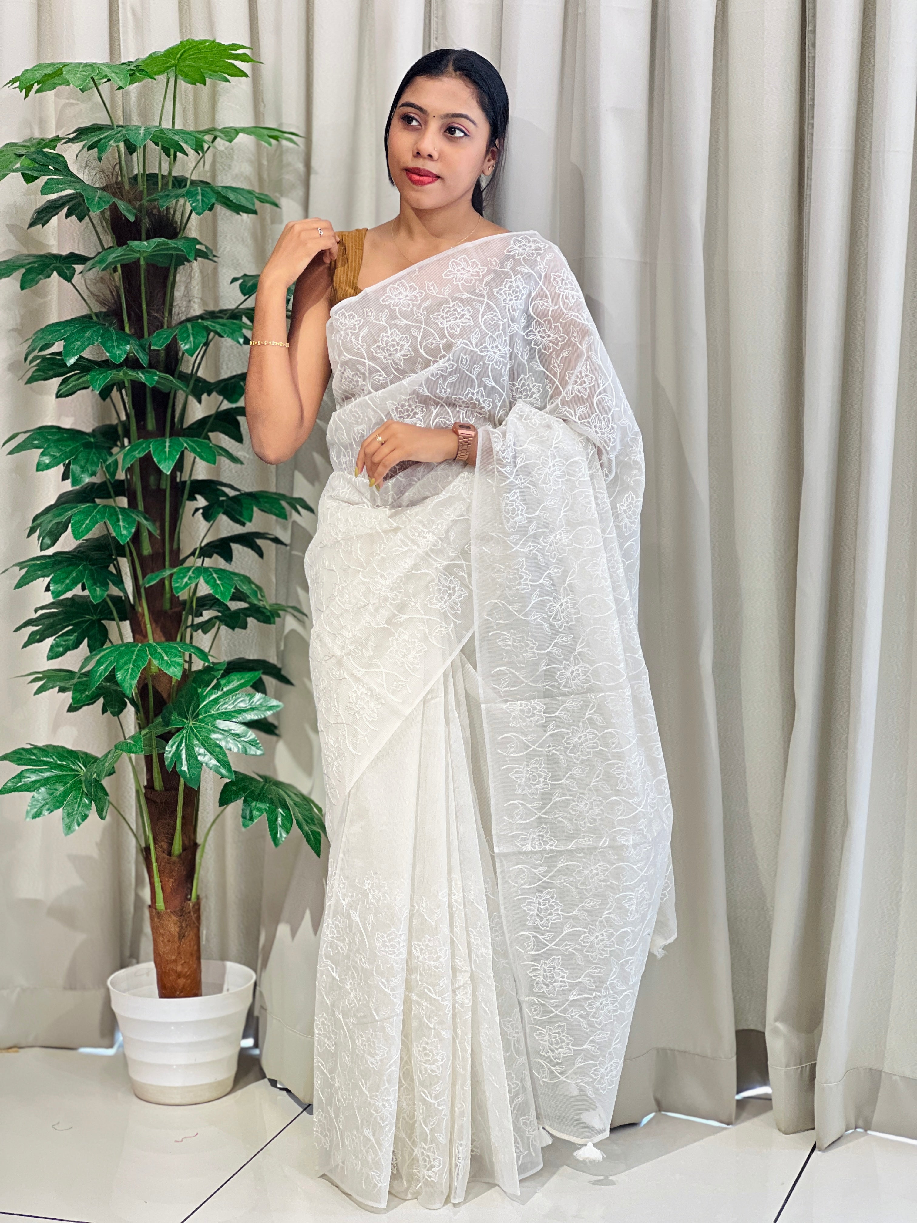• White Threads Machine Embroidery Detailed Kota Saree | MR161