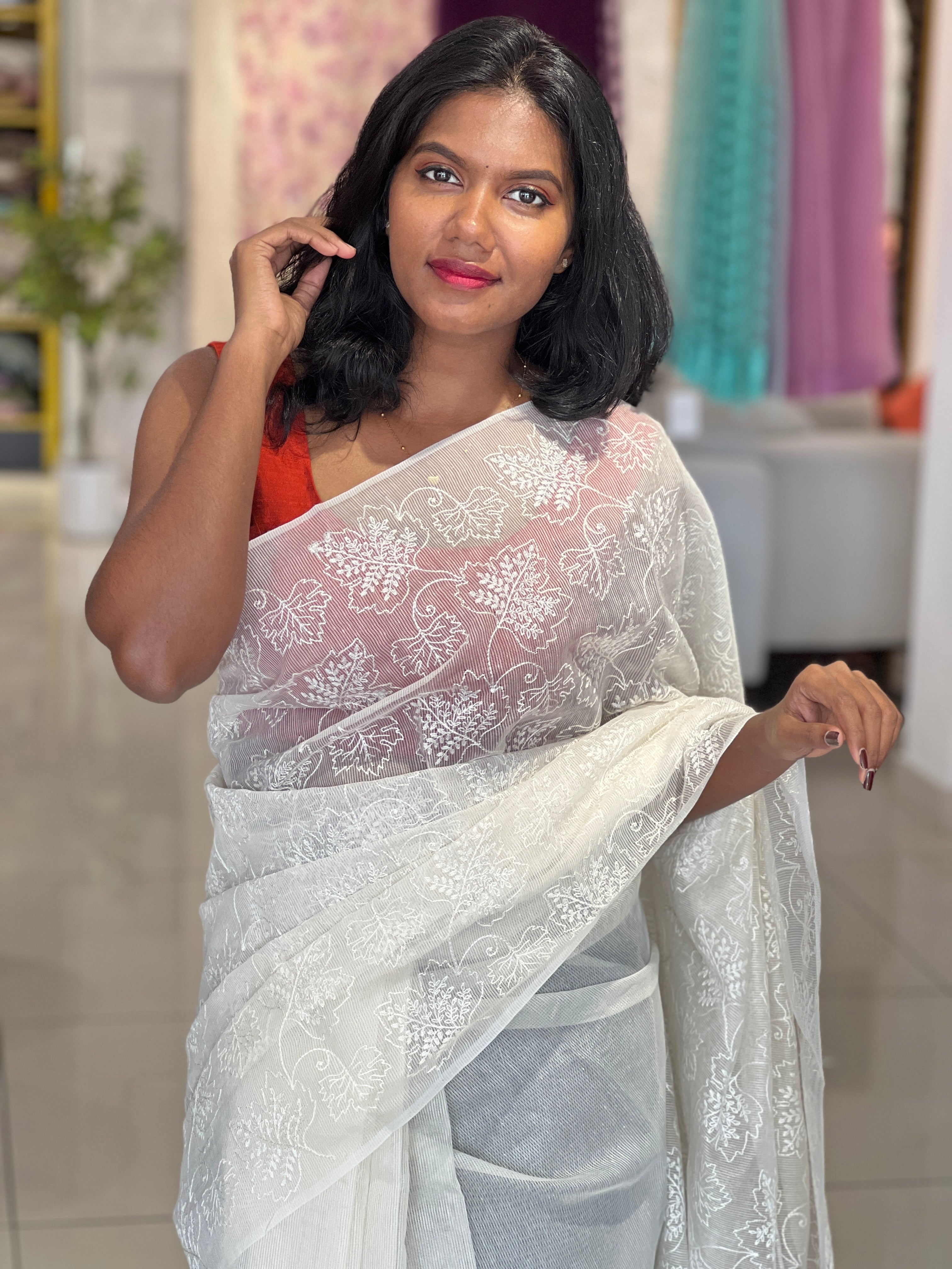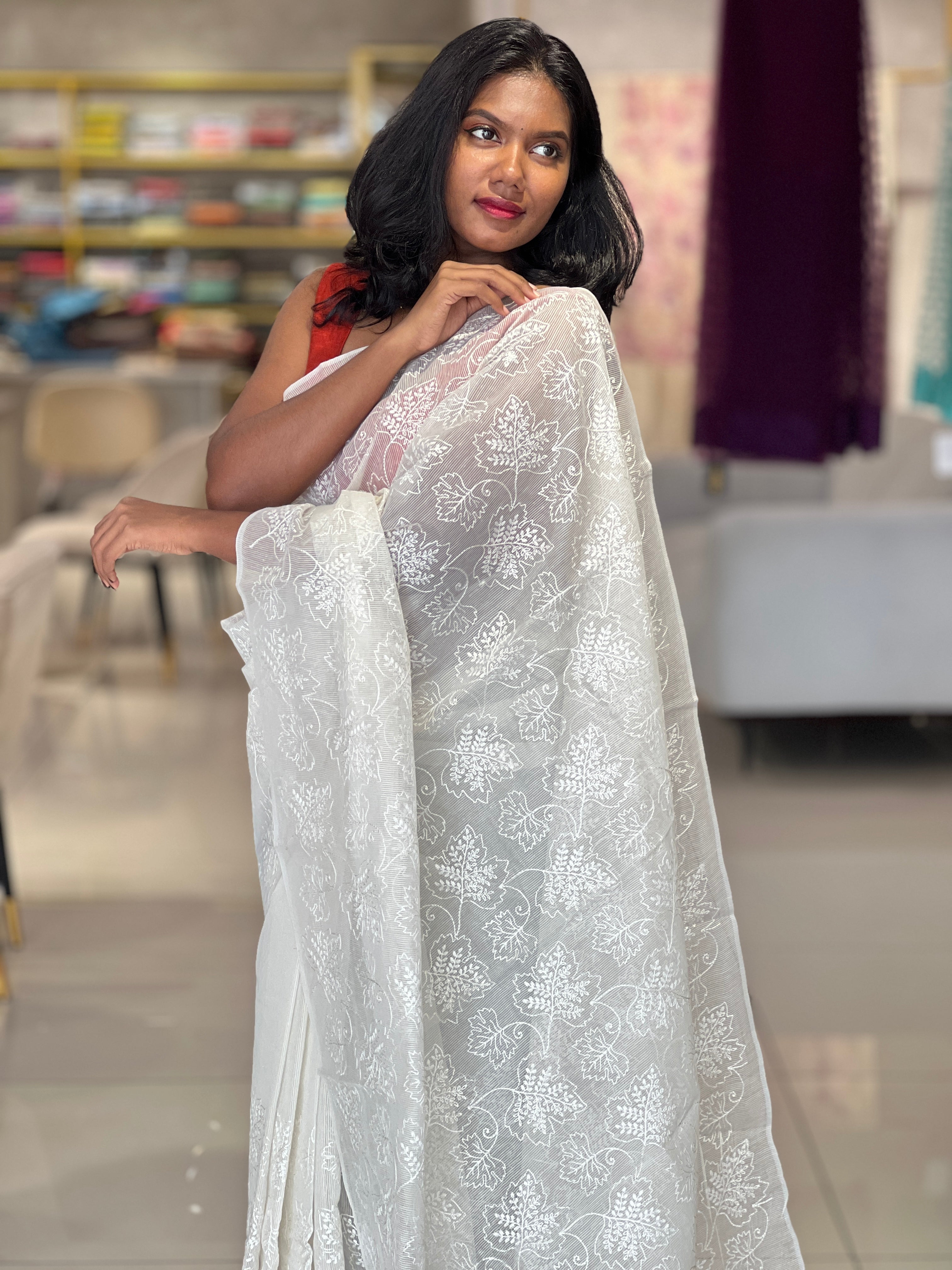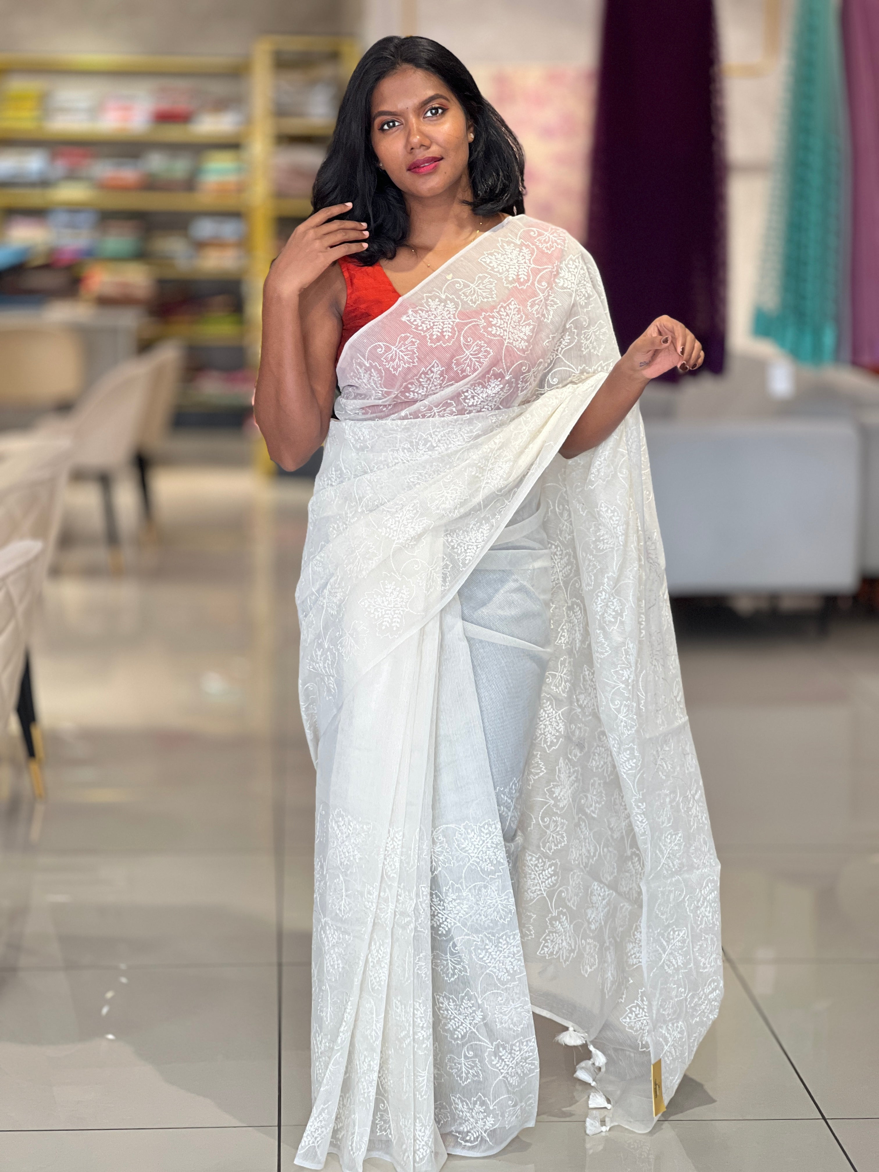 - Style: White Threads Machine Embroidery Detailing,Tassels Attached