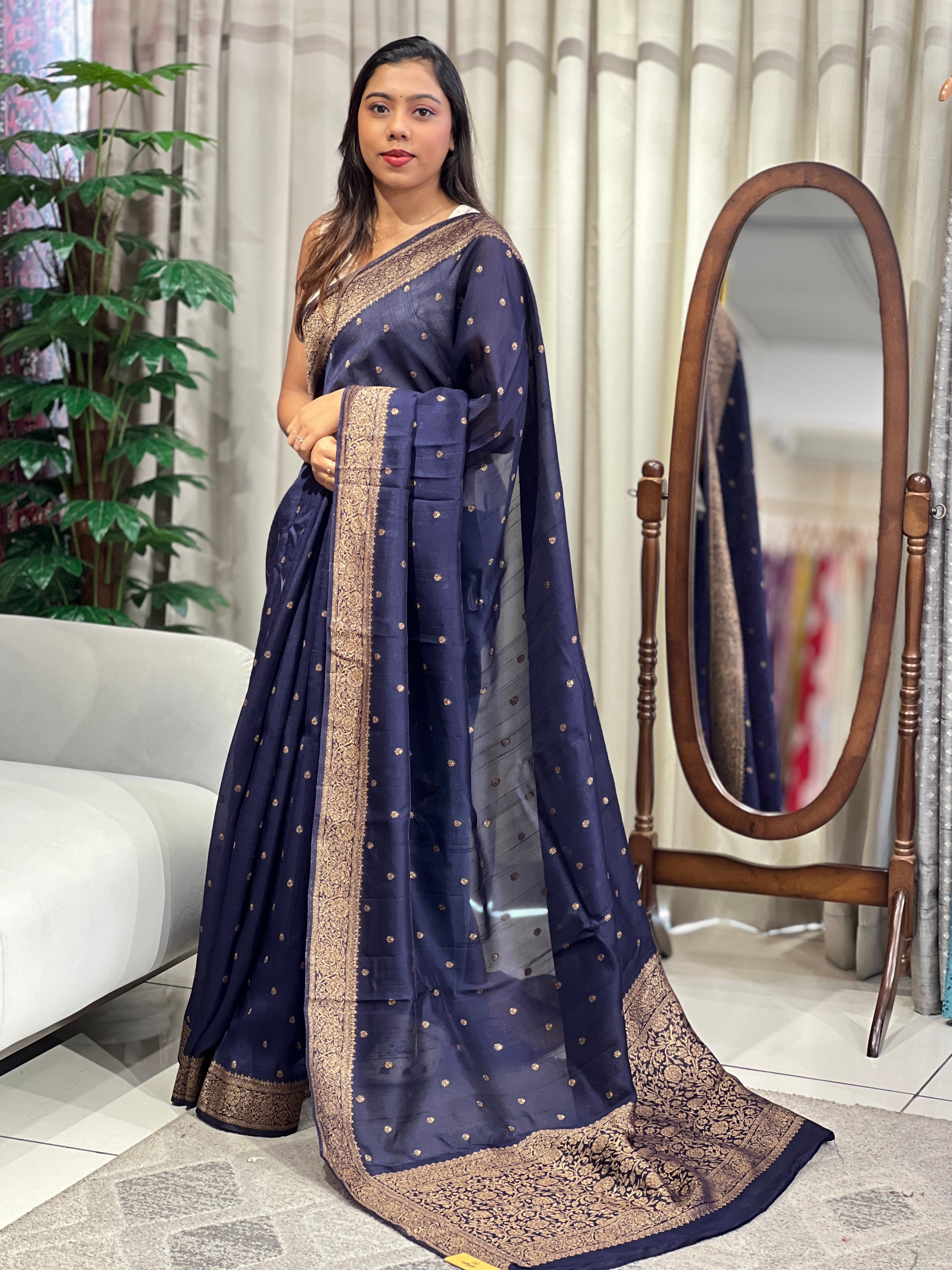 • Style: Zari And Thread Weaving, Scattered Buttas, Brocade Pallu, Border Detailing