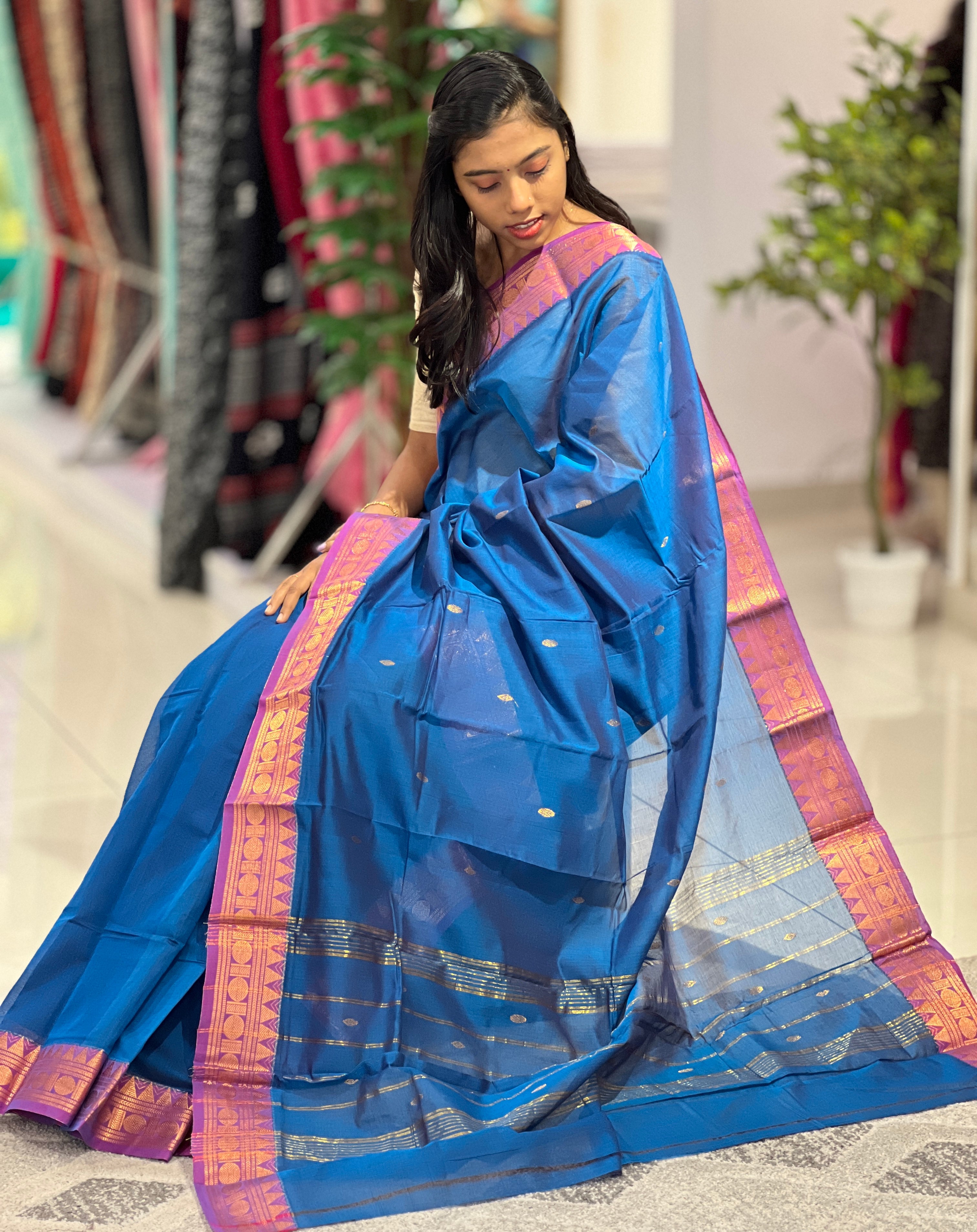 - Style: Buta Weaved Pattern, Zari With Temple Border Detailing, Line Pattern