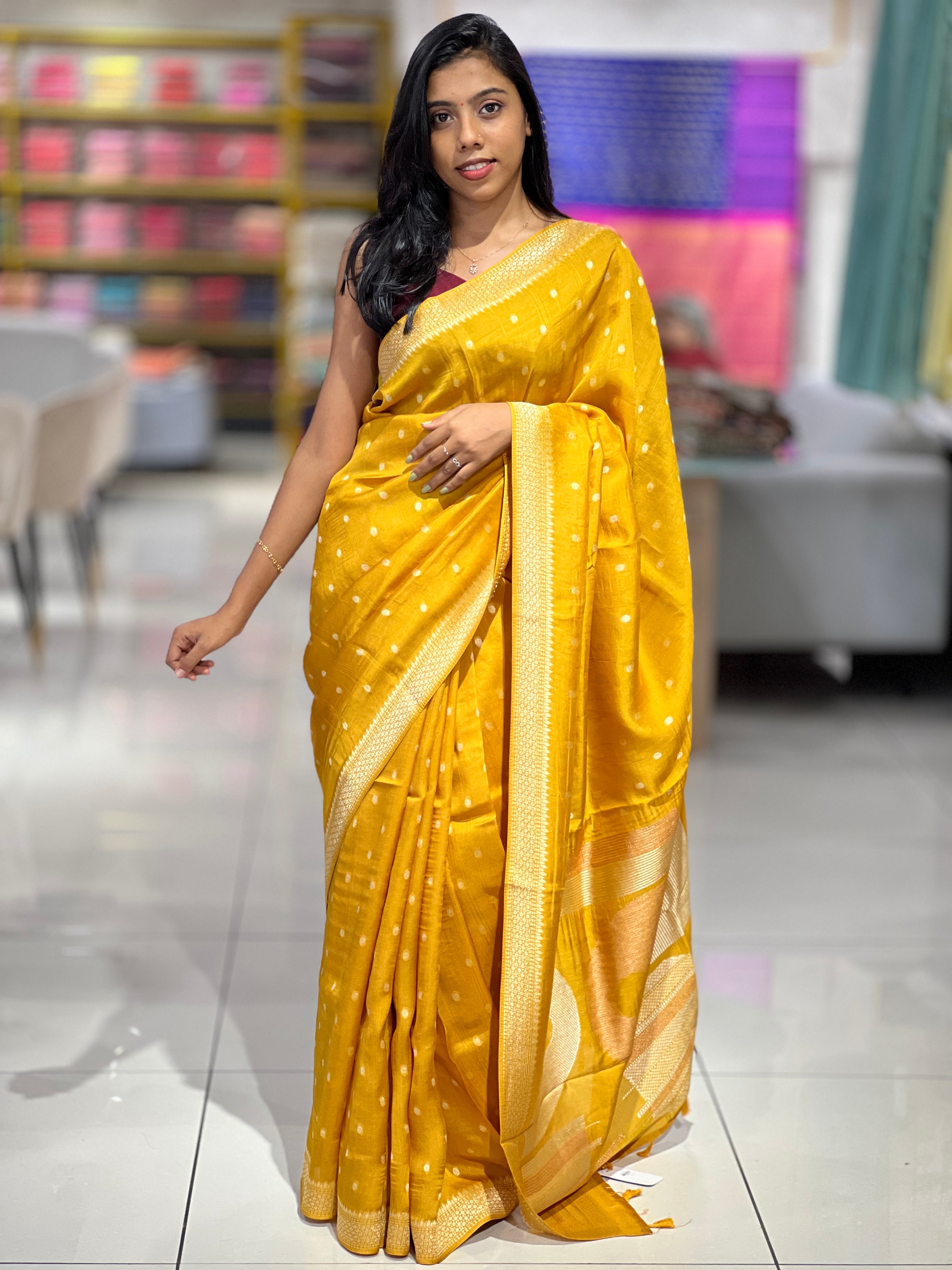 • Style: Light Golden Zari Woven, Buta Pattern, Power Loom, Banarasi Weaving Pattern