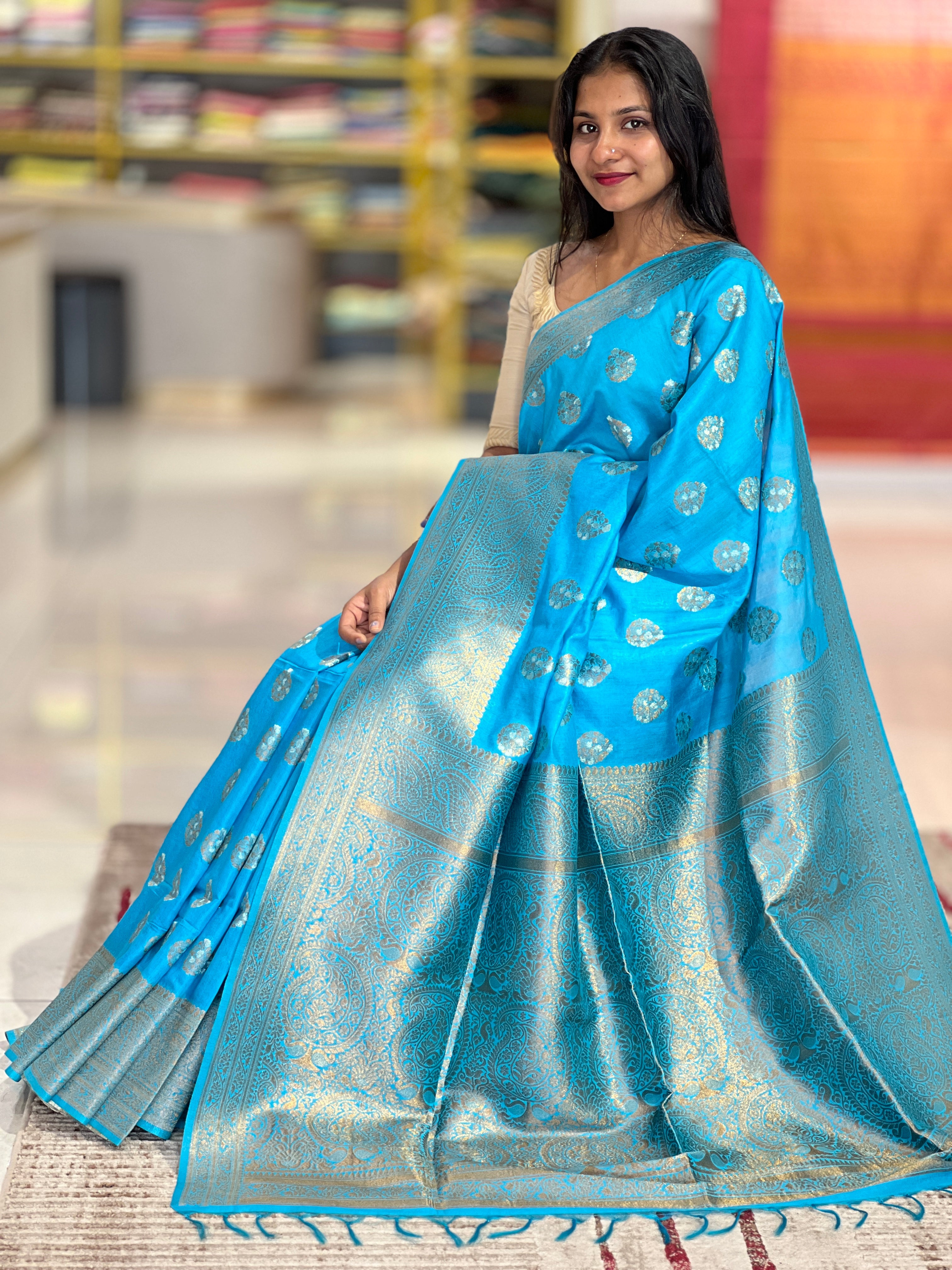- Style: Banarasi Pattern, Zari Woven Butas, Paisley Patterned Borders