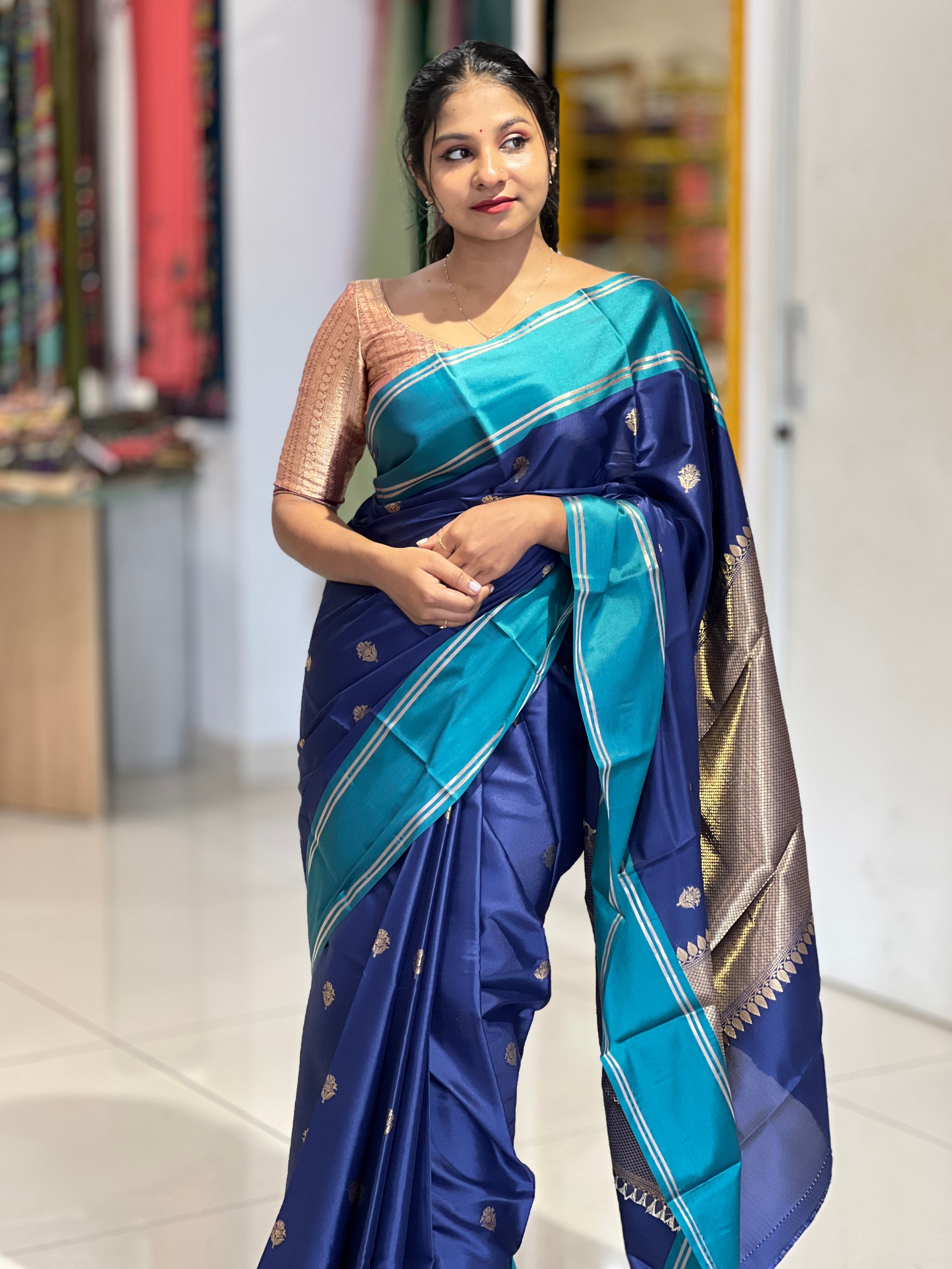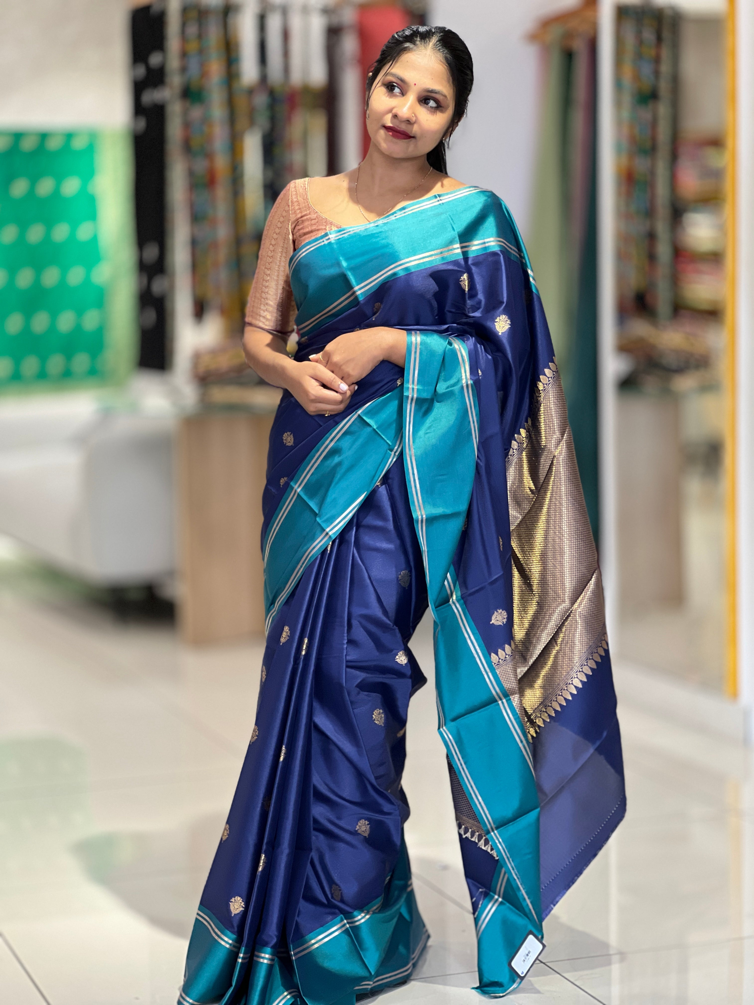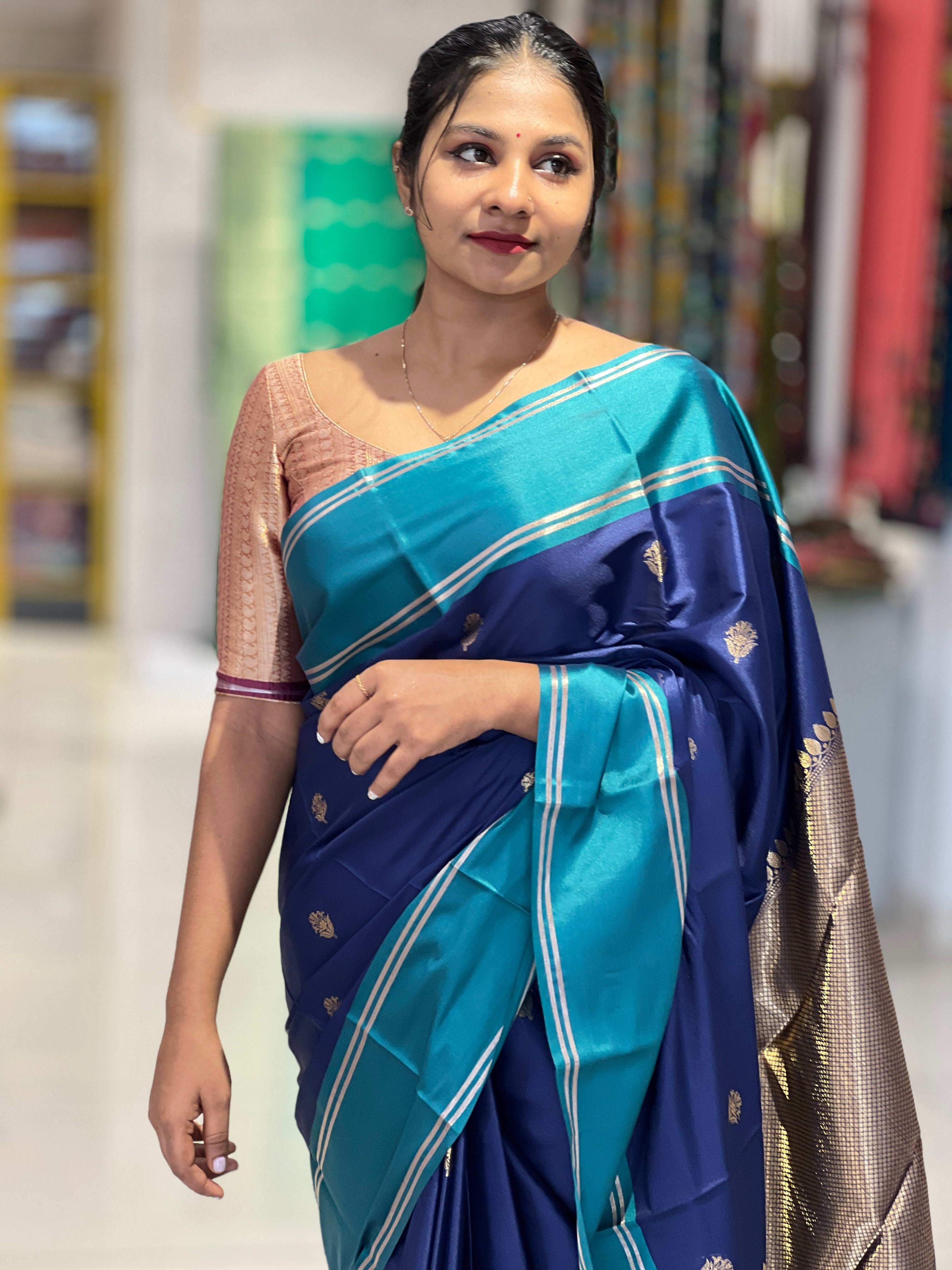 - Style: Banarasi Weaving, Zari Detailed Border, Scattered Buttas, Brocade Pallu,