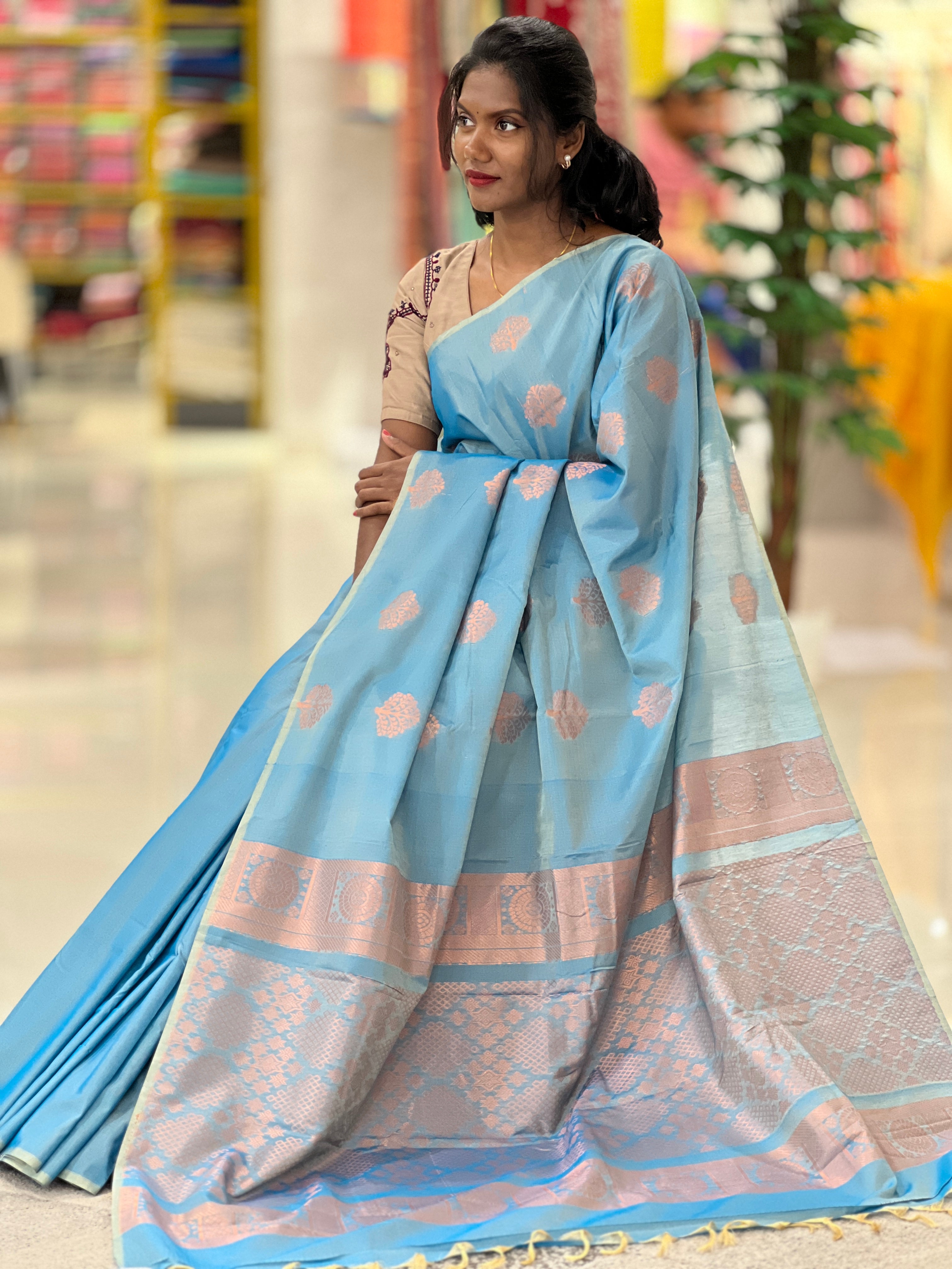 - Style: Zari Weaving Buttas , Brocade Pallu, Tassels Attached