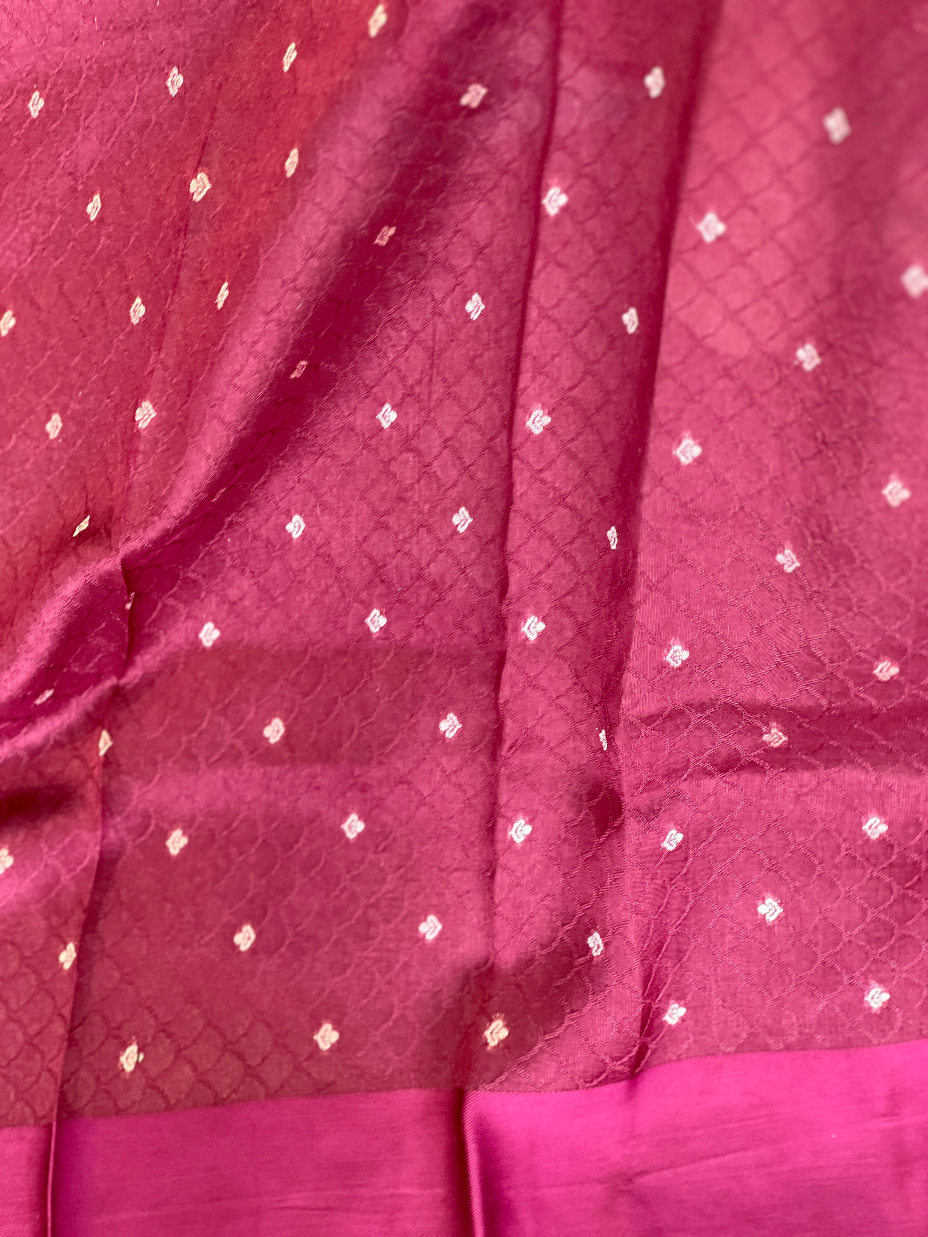 - Style: Zari Butta Weaving, Brocade Pallu with Floral & Geometric Pattern, Scattered Threads and Zari Weaving Motif Border Detailing