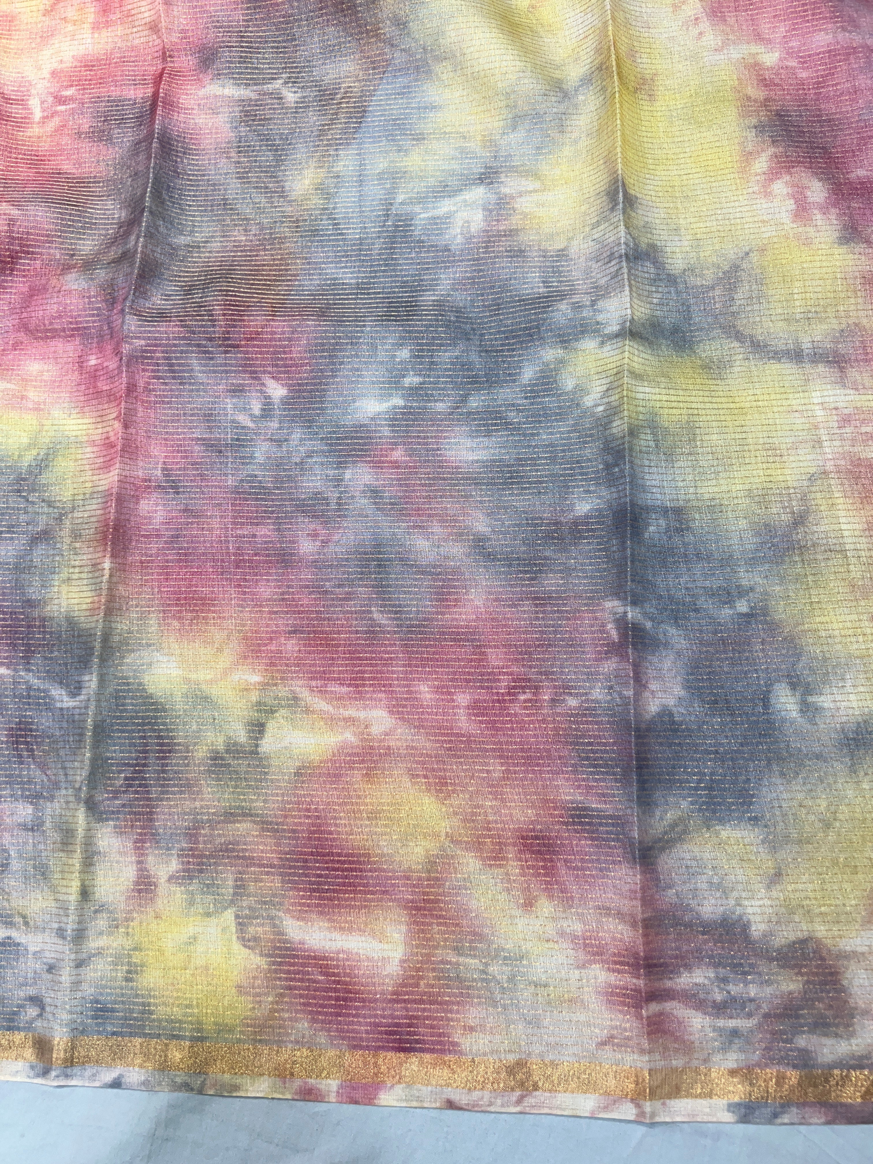 Zari Check Pattern With Tie & Dye Detailed Tussar Saree | HS1268