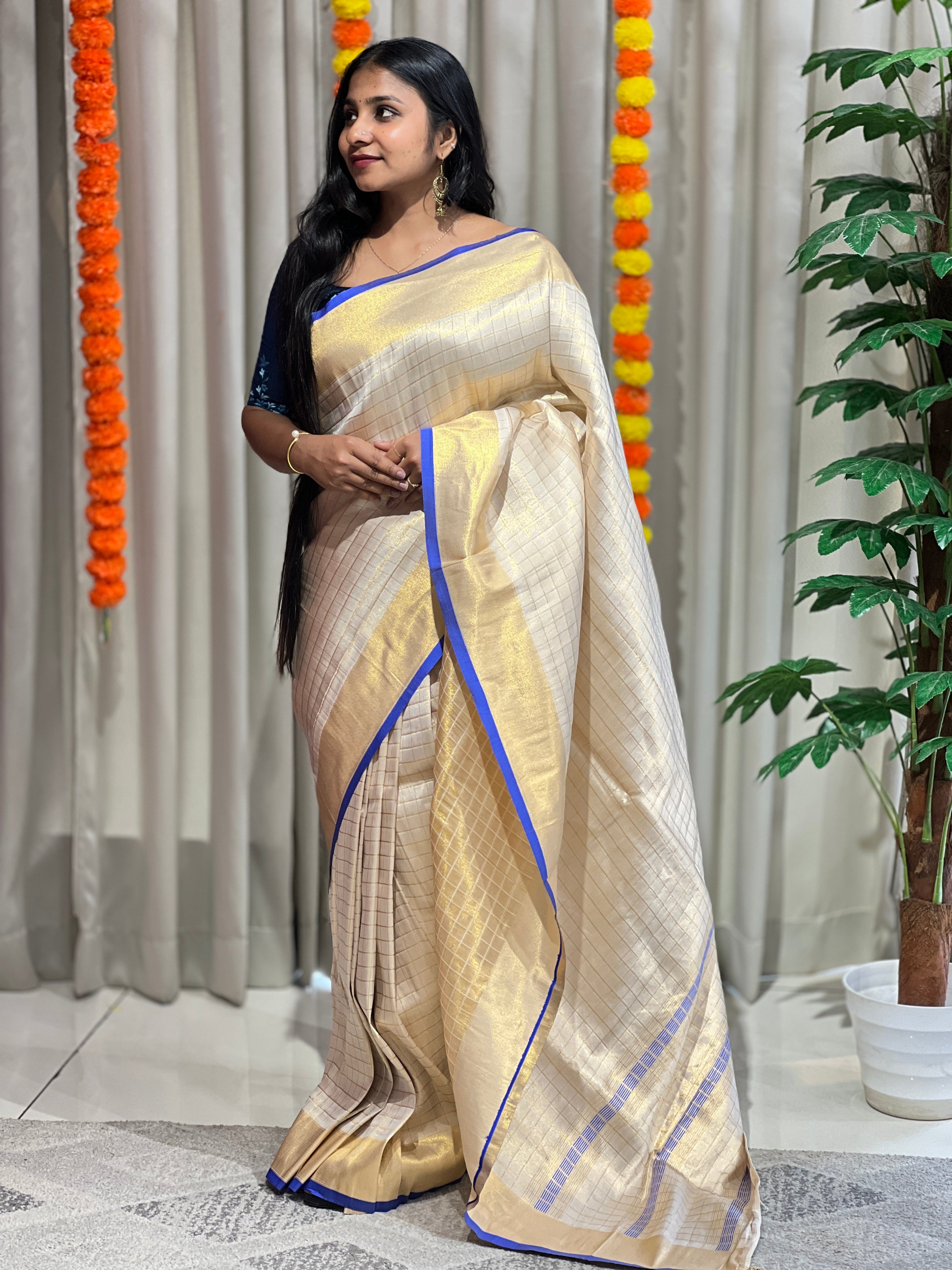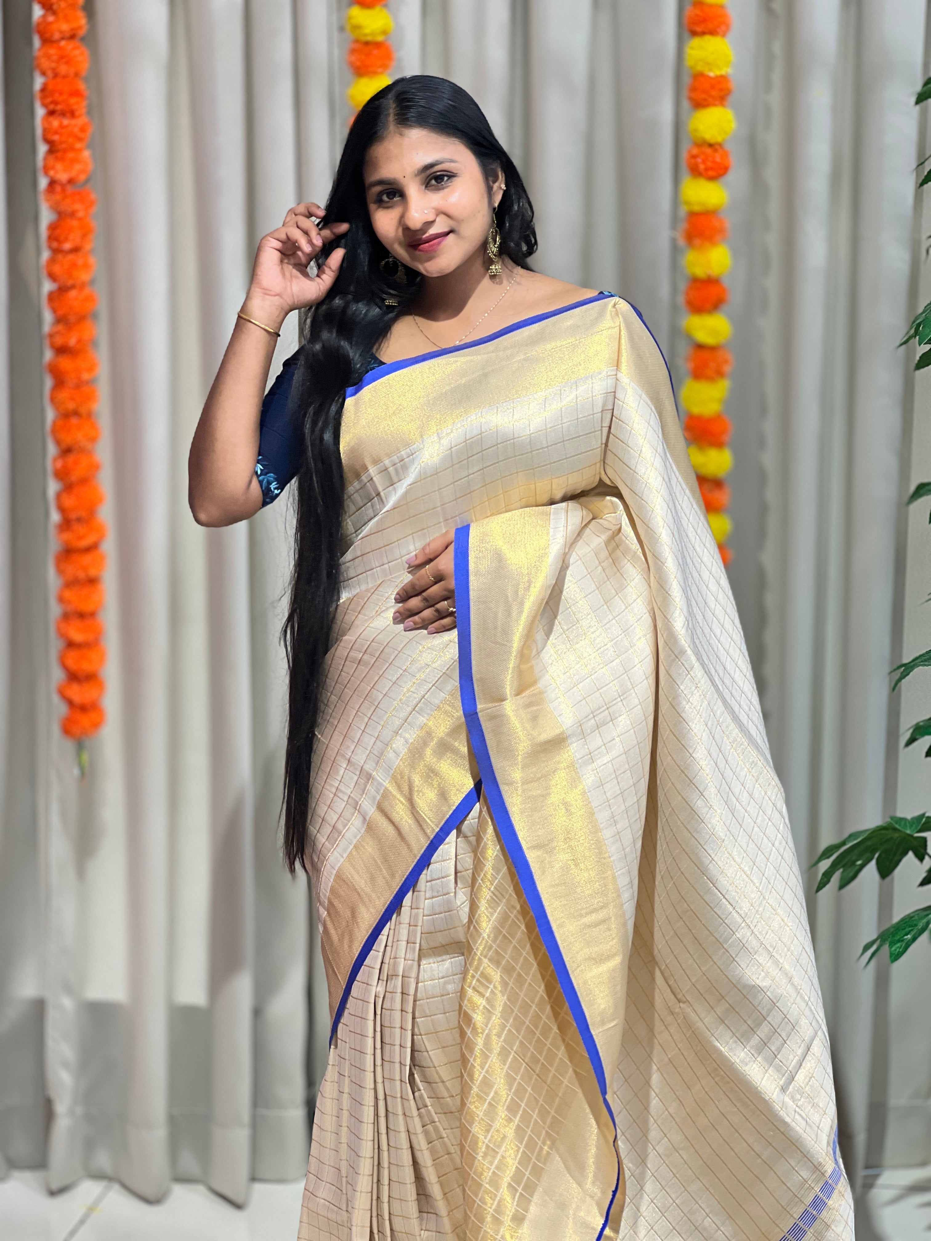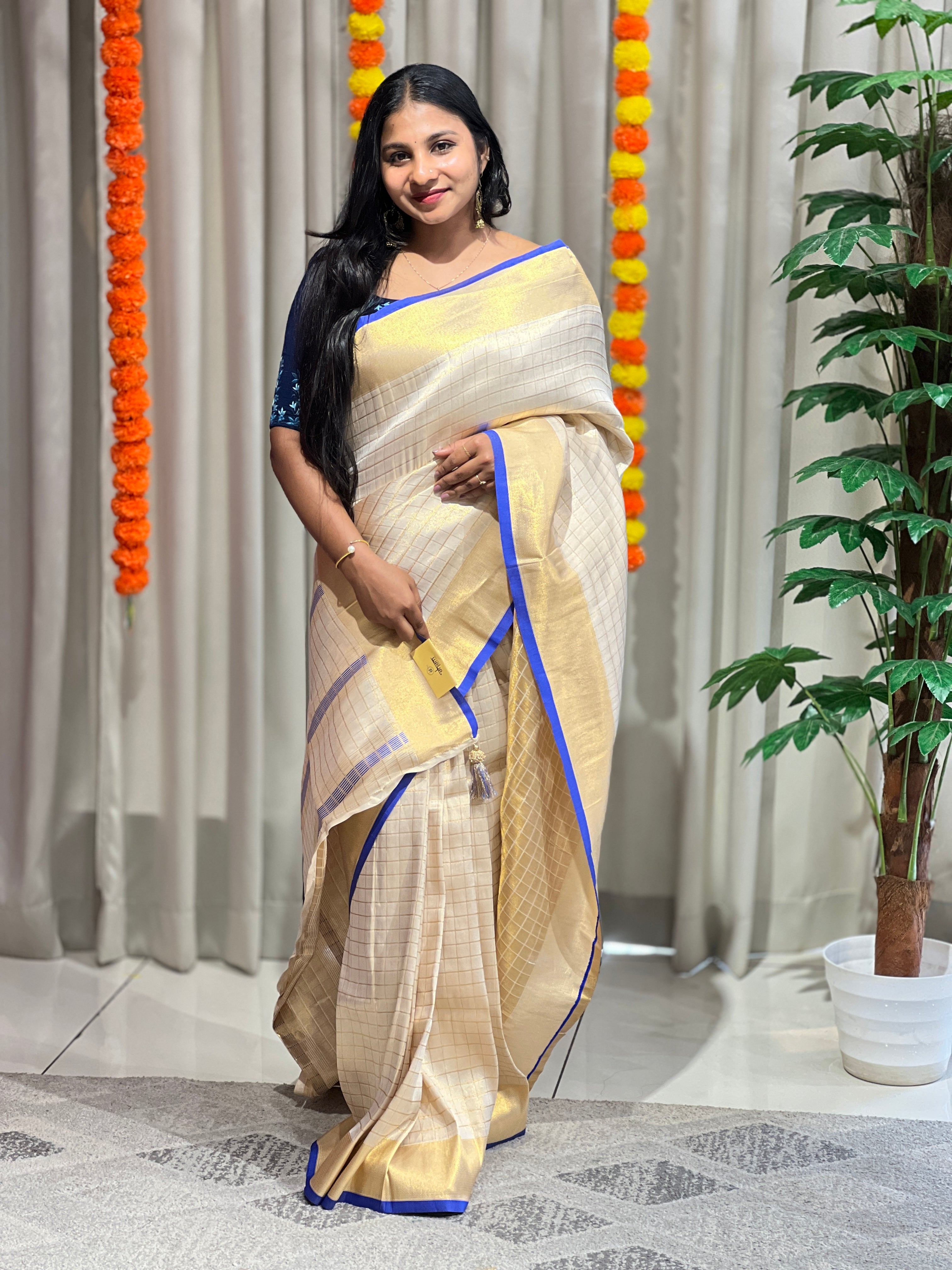 - Style: Zari Check Pattern, Stripes Pattern Pallu with Tassels attached, Zari and Kara Border Detailing