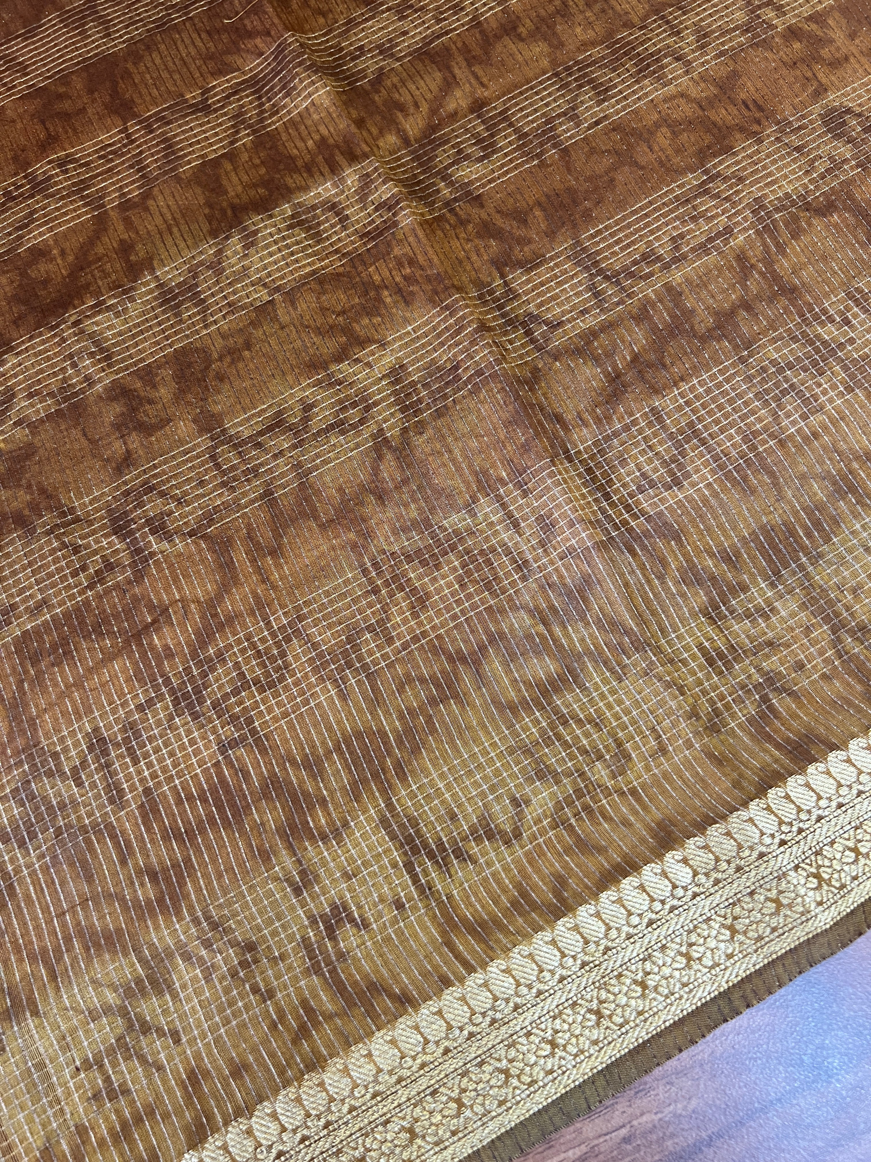 - Style: Zari Check Weaving Pattern, Light Gold Zari Border, Tie & Dye Pattern Print Design
