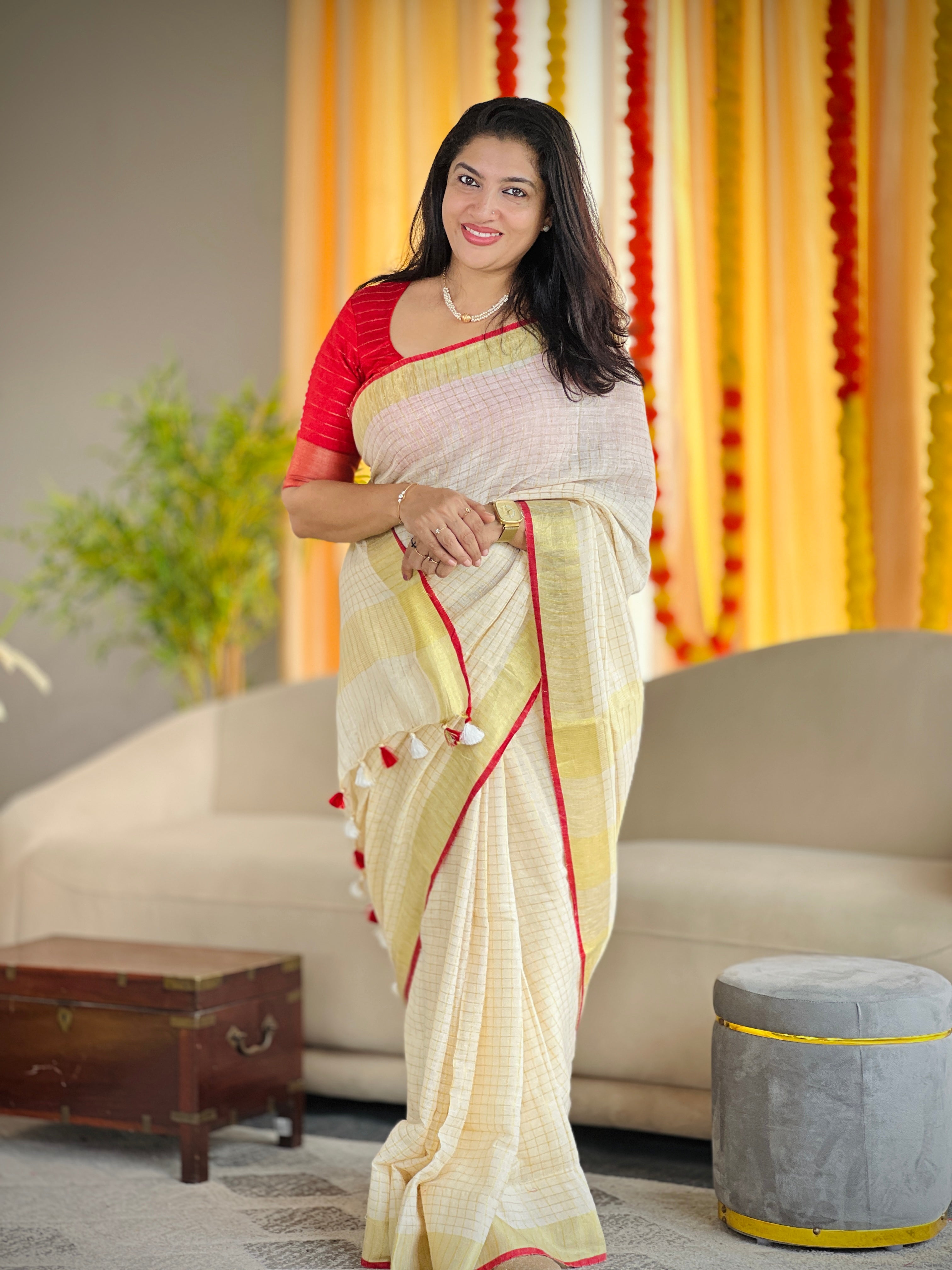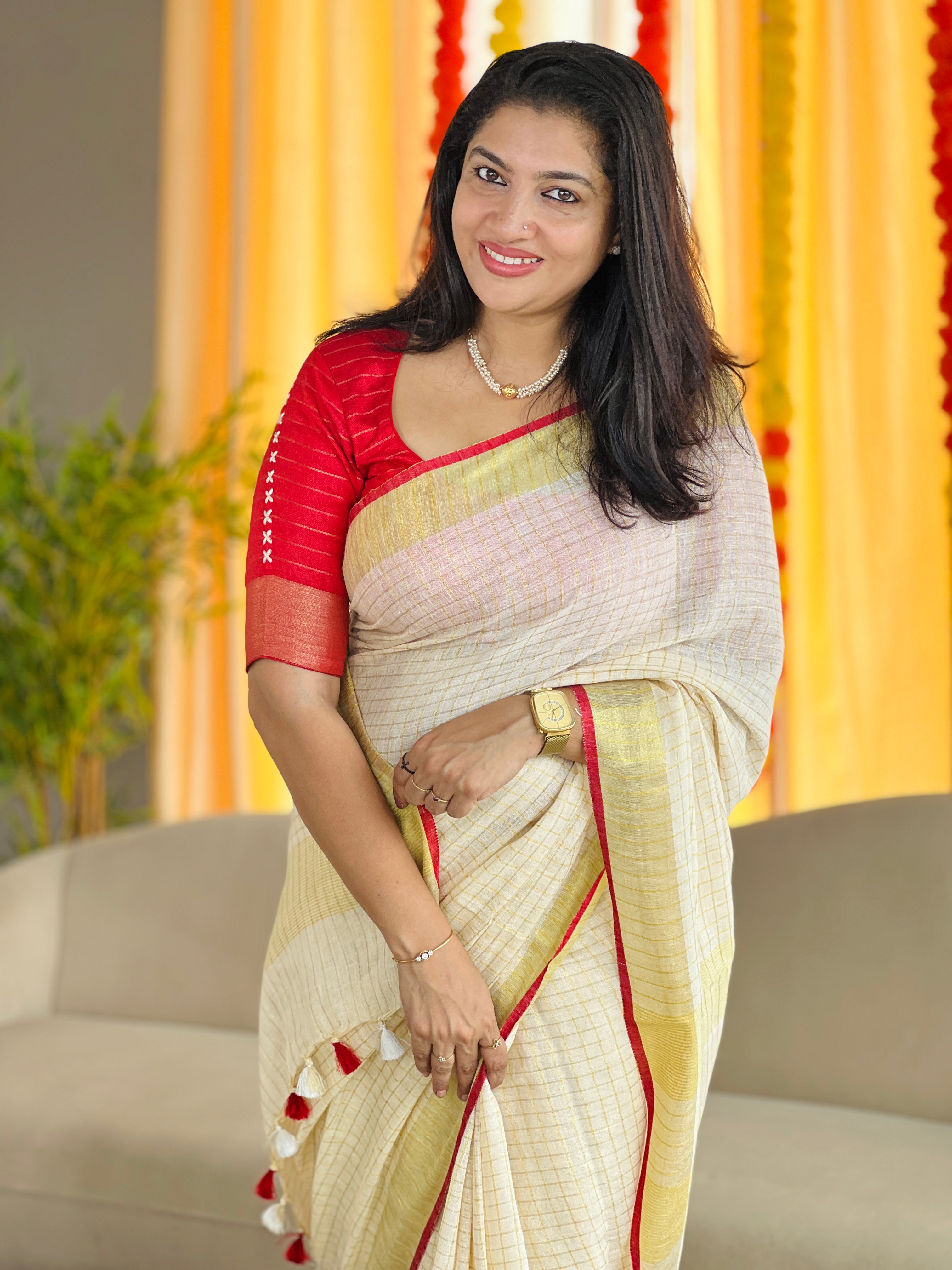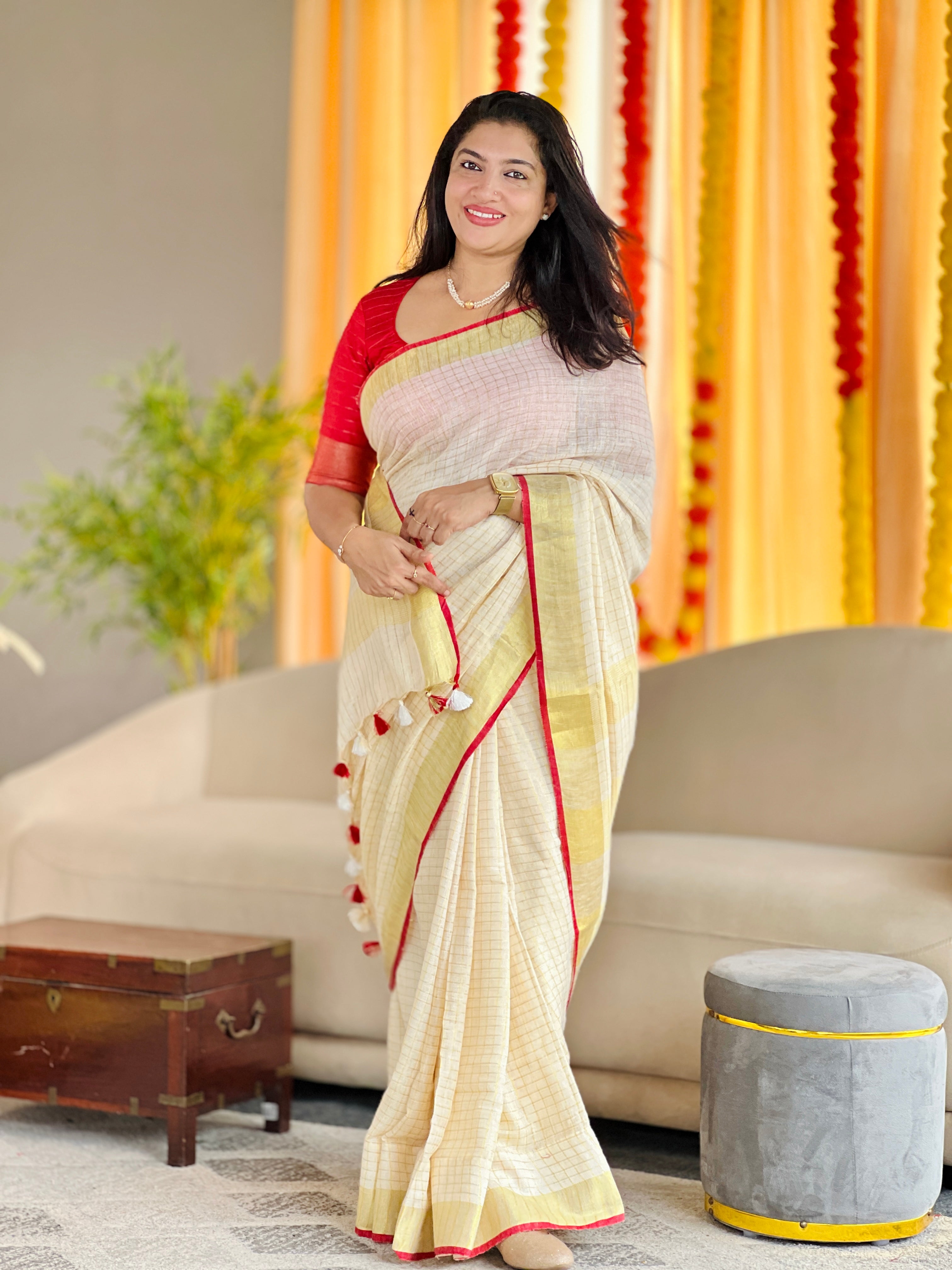 - Style: Zari Check Weaving Pattern, Piping Border