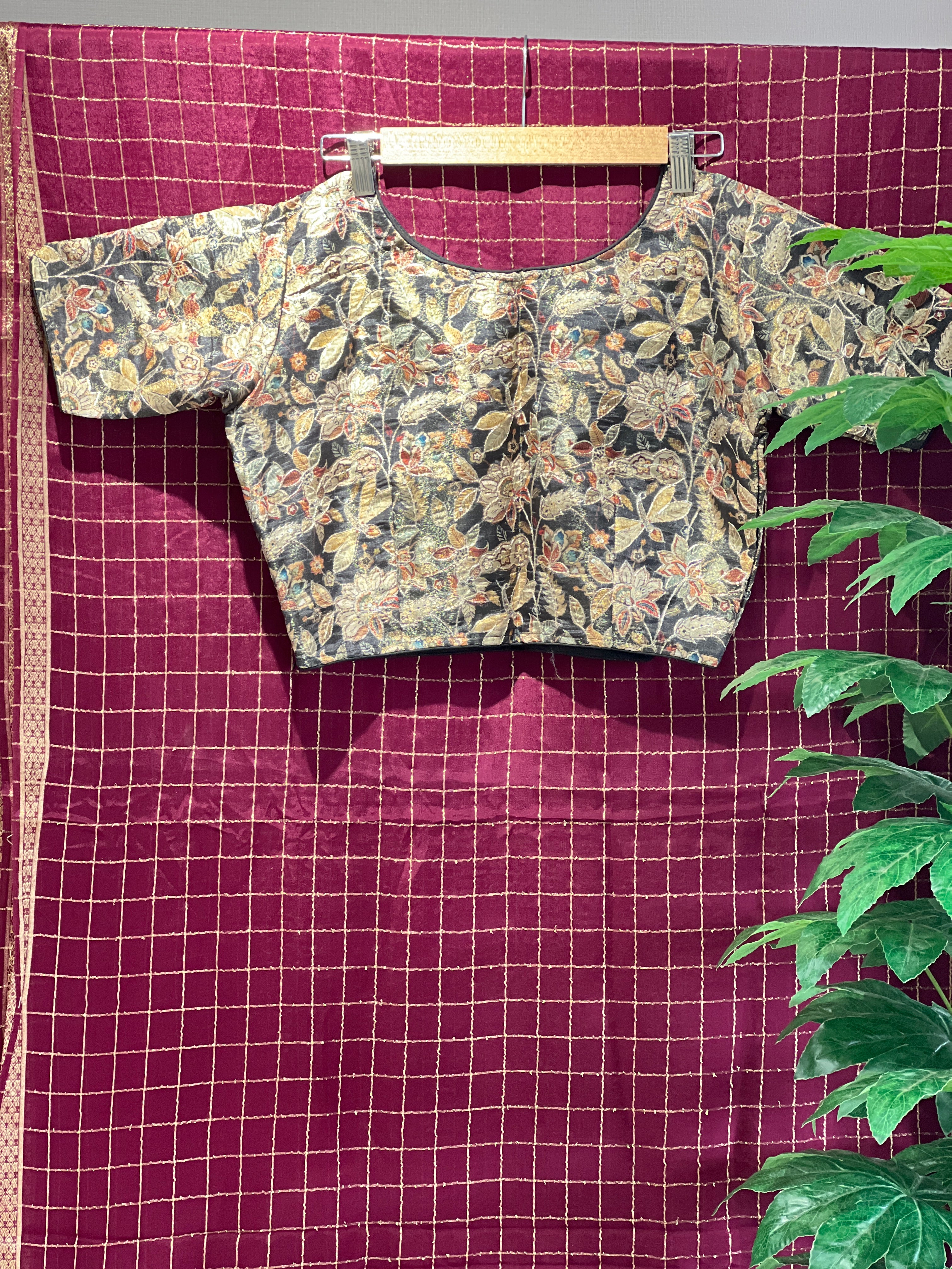 • Zari Check Weaving Pattern Crispy Georgette Saree | DVS153