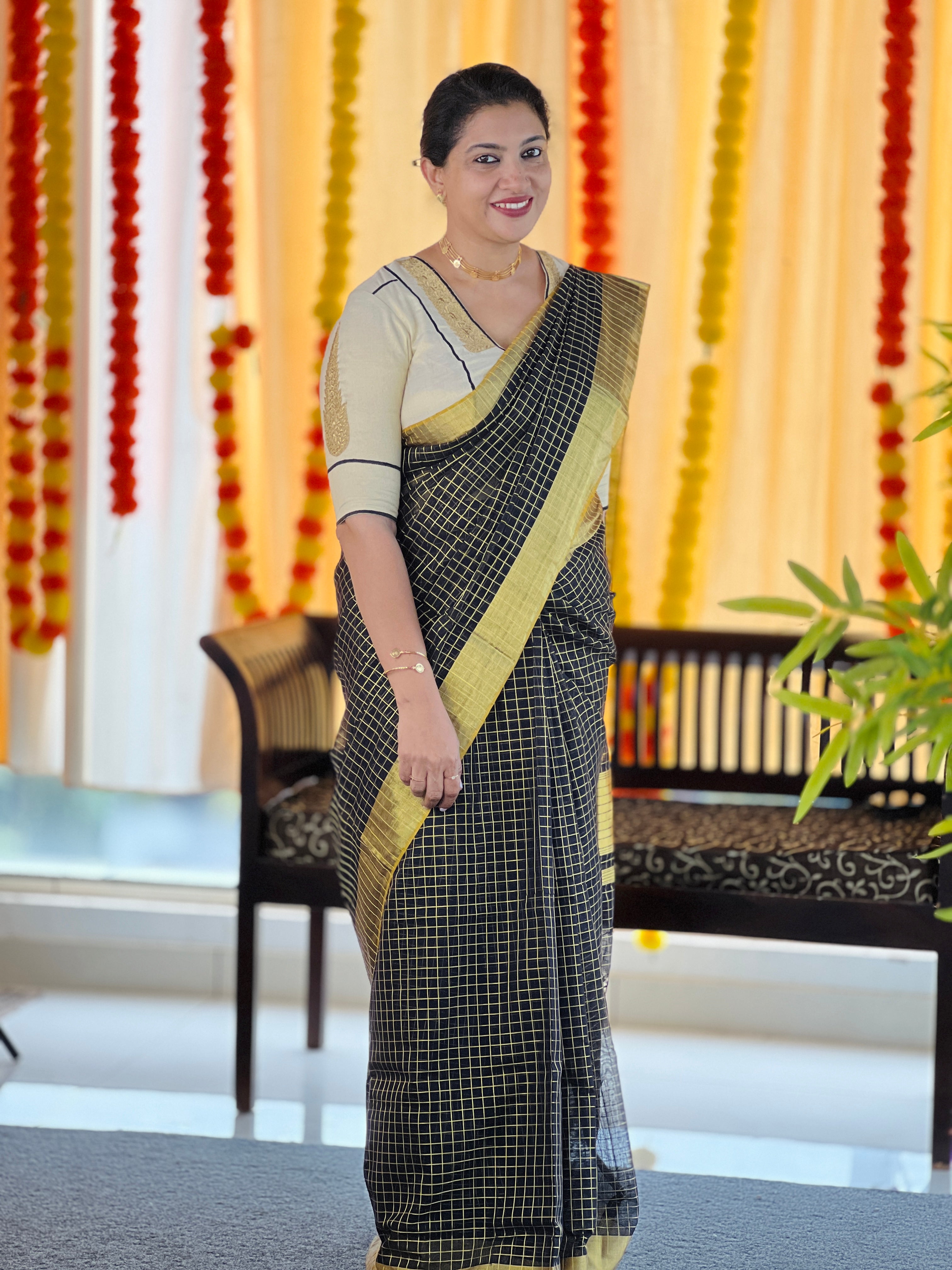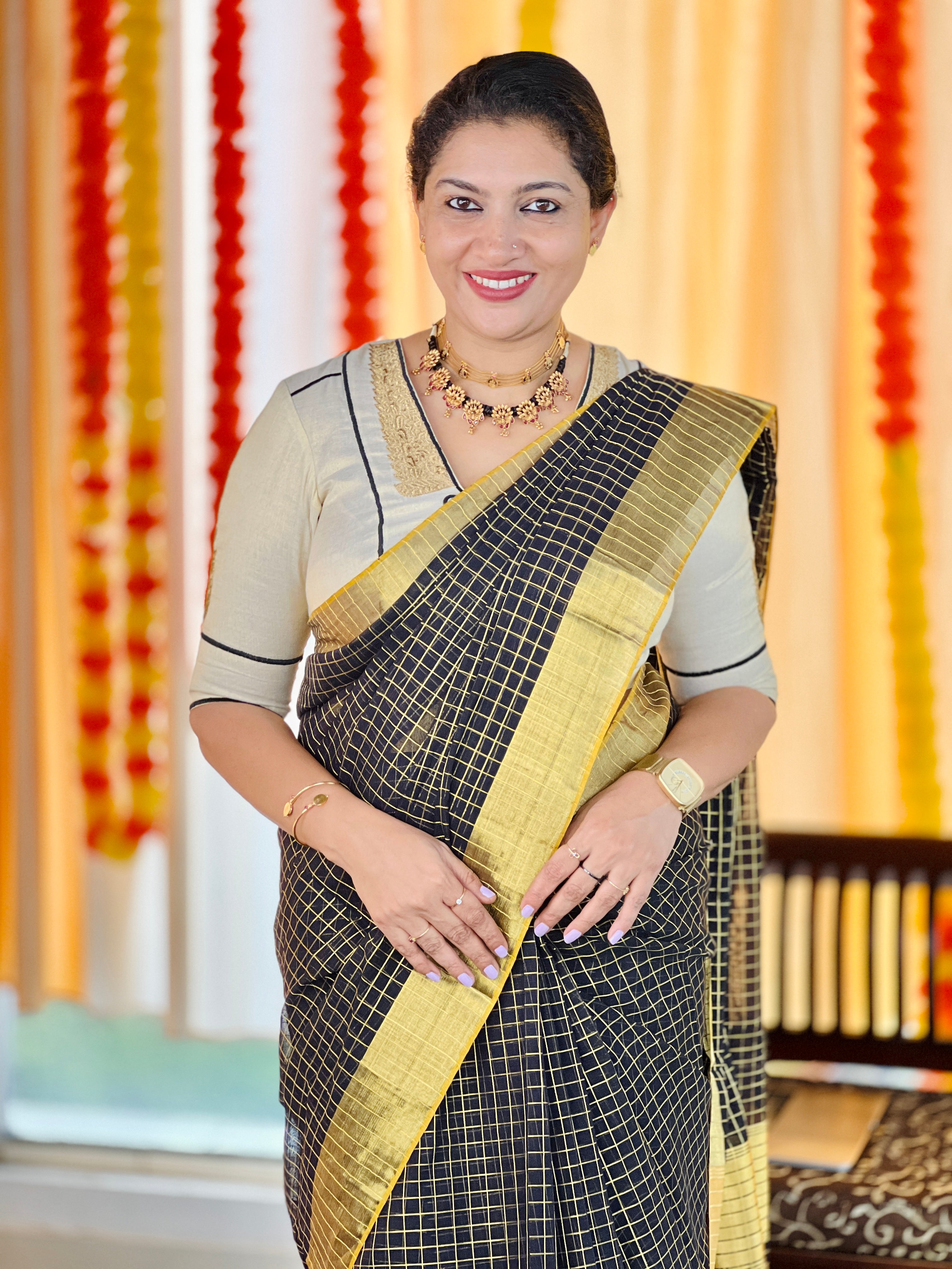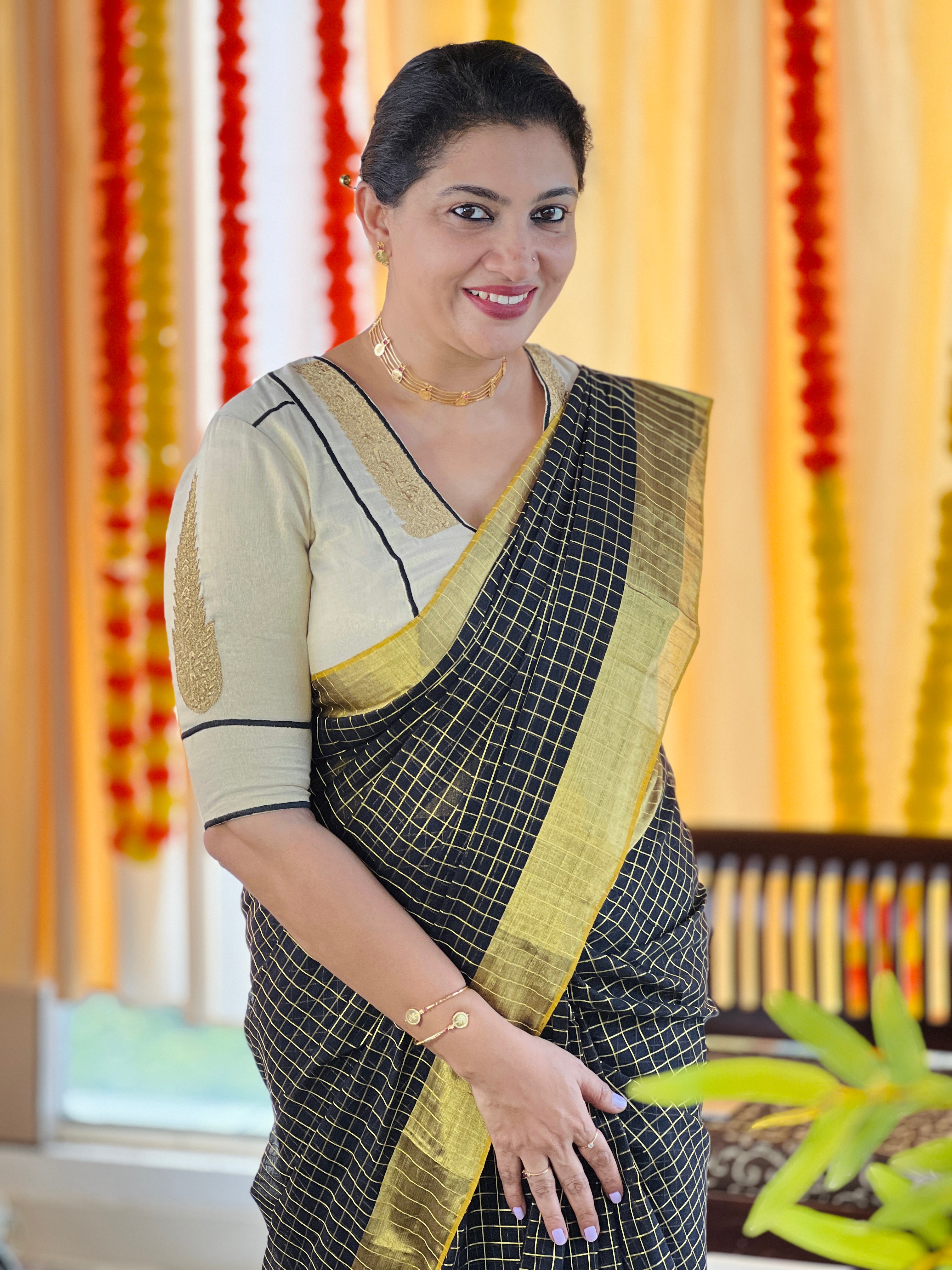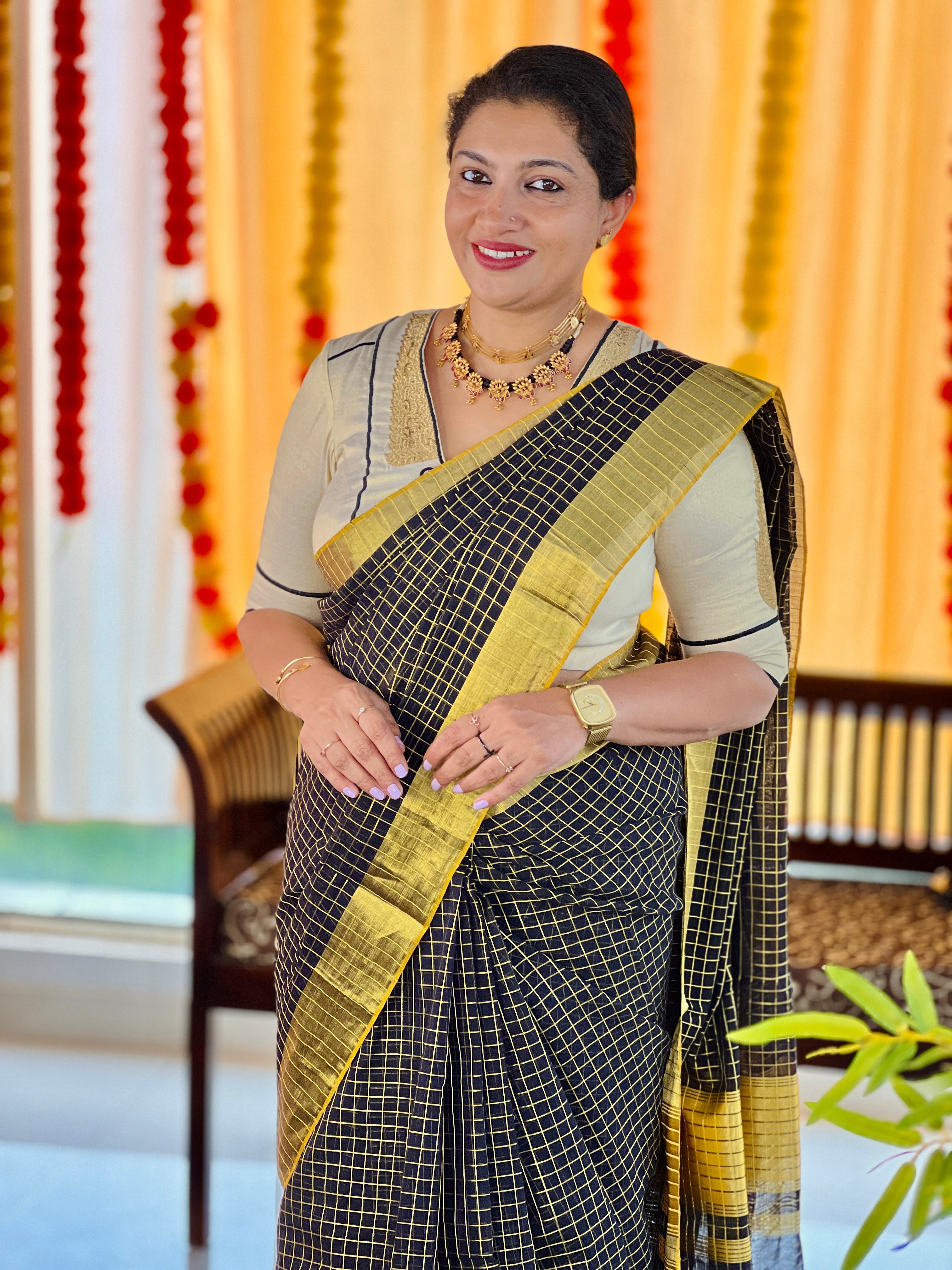 - Style: Handloom, Zari Check Weaving Pattern, Kasavu With Kara Detailed Borders & Pallu, Tassels Detailing