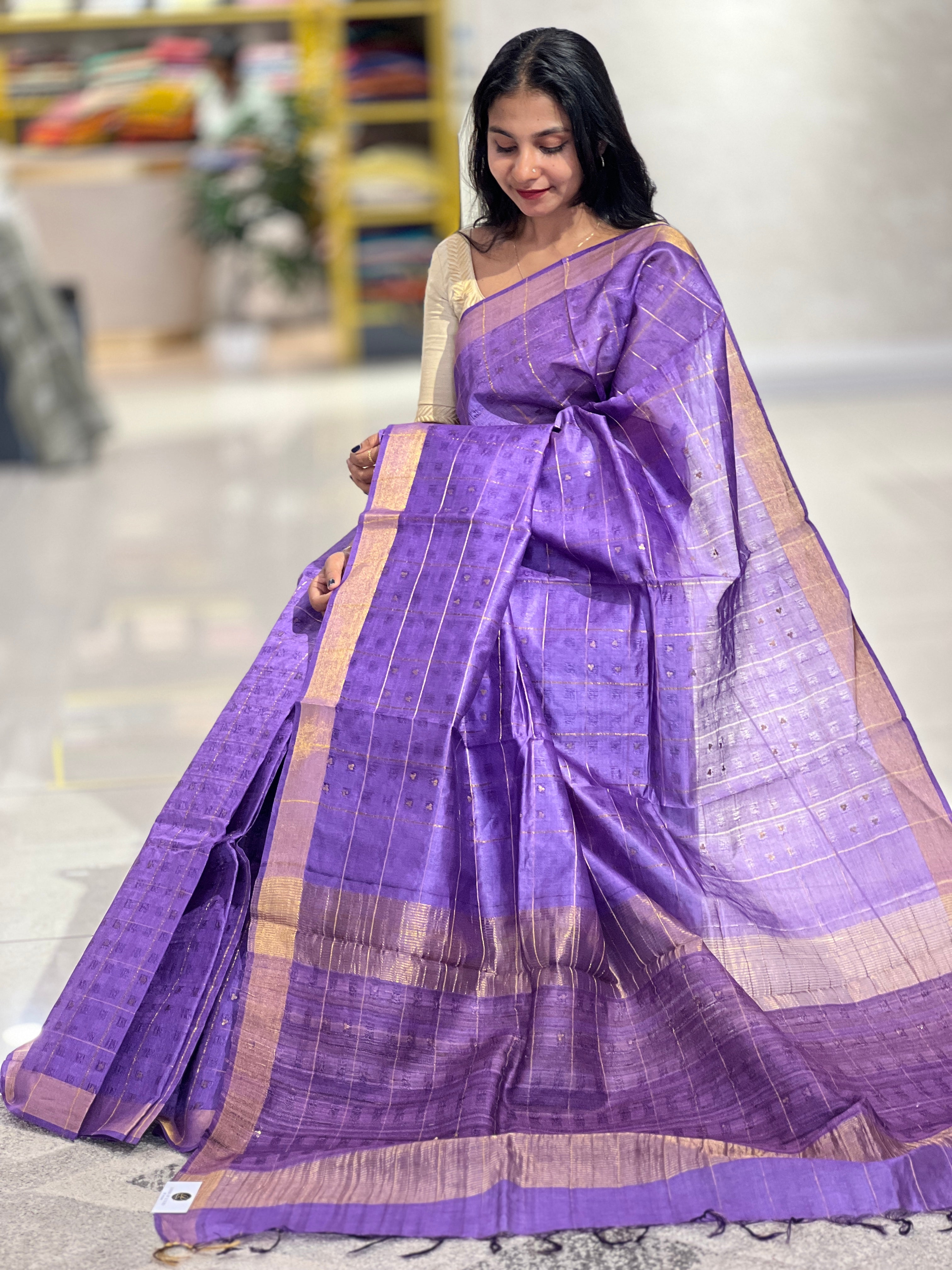 Zari Check Weaving Tussar Saree | ACT1437 Zari Check Weaving Tussar Saree | ACT1437