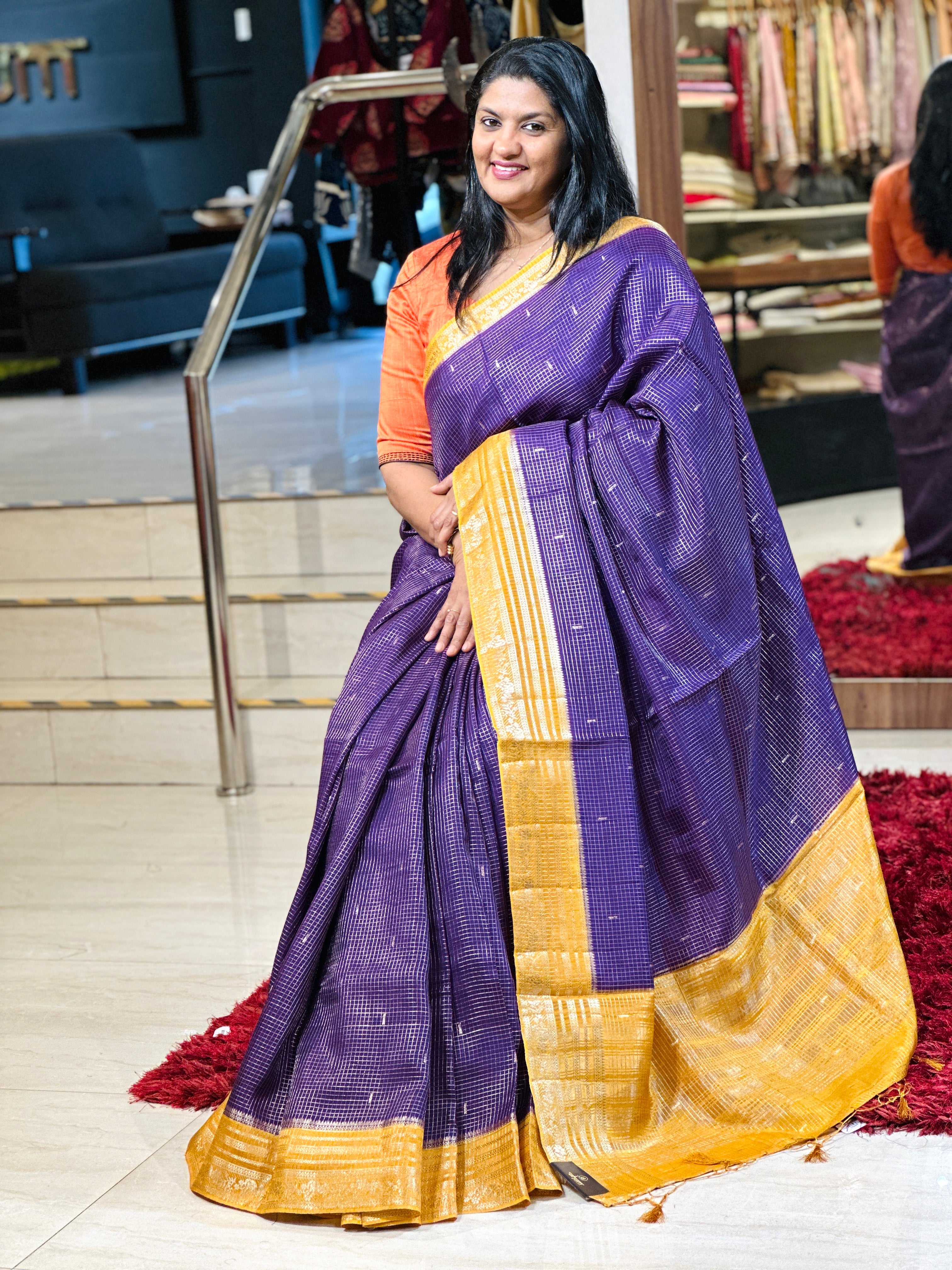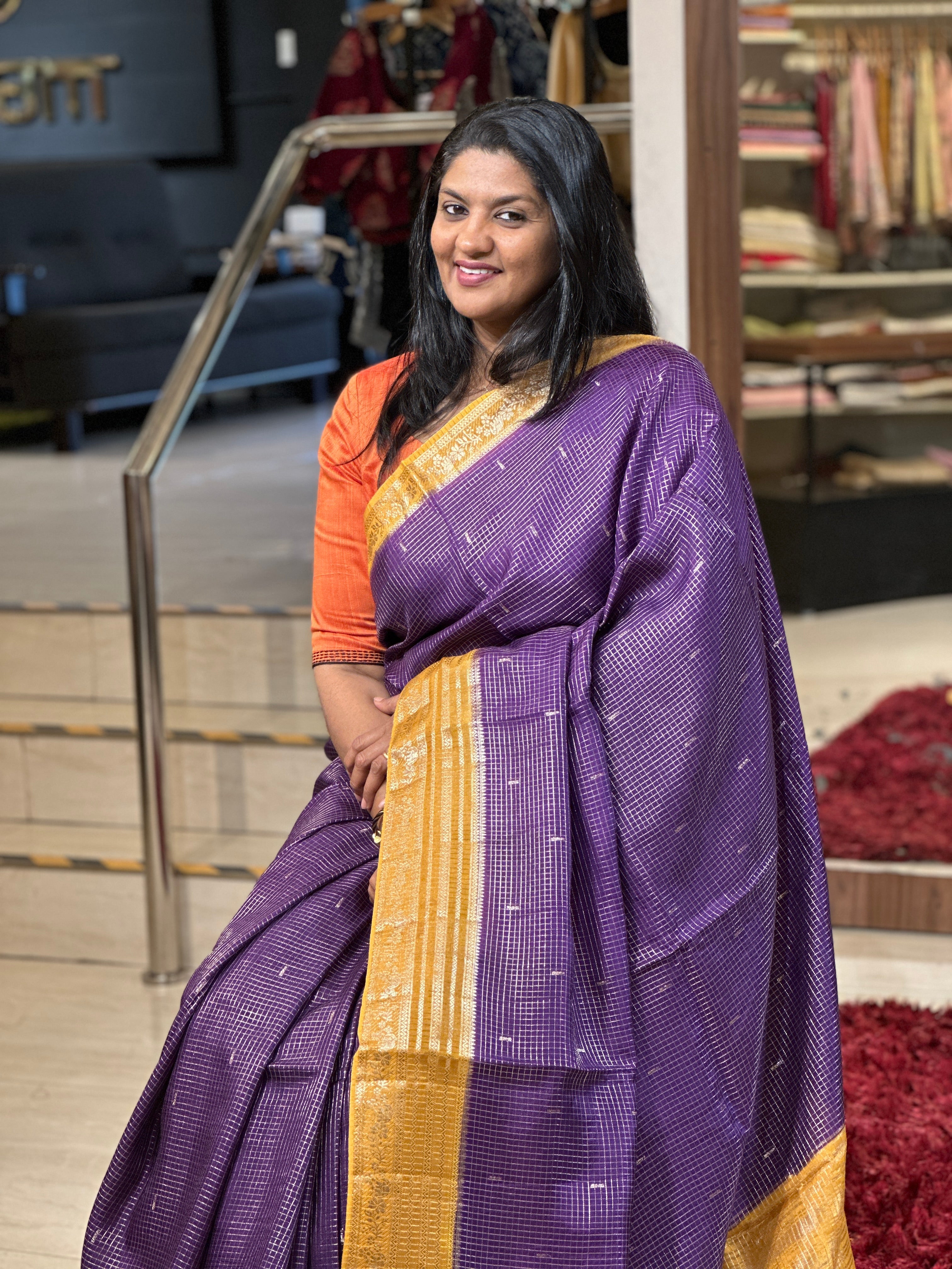• Zari Check With Butta Detailed Banarasi Silk Saree | NN387