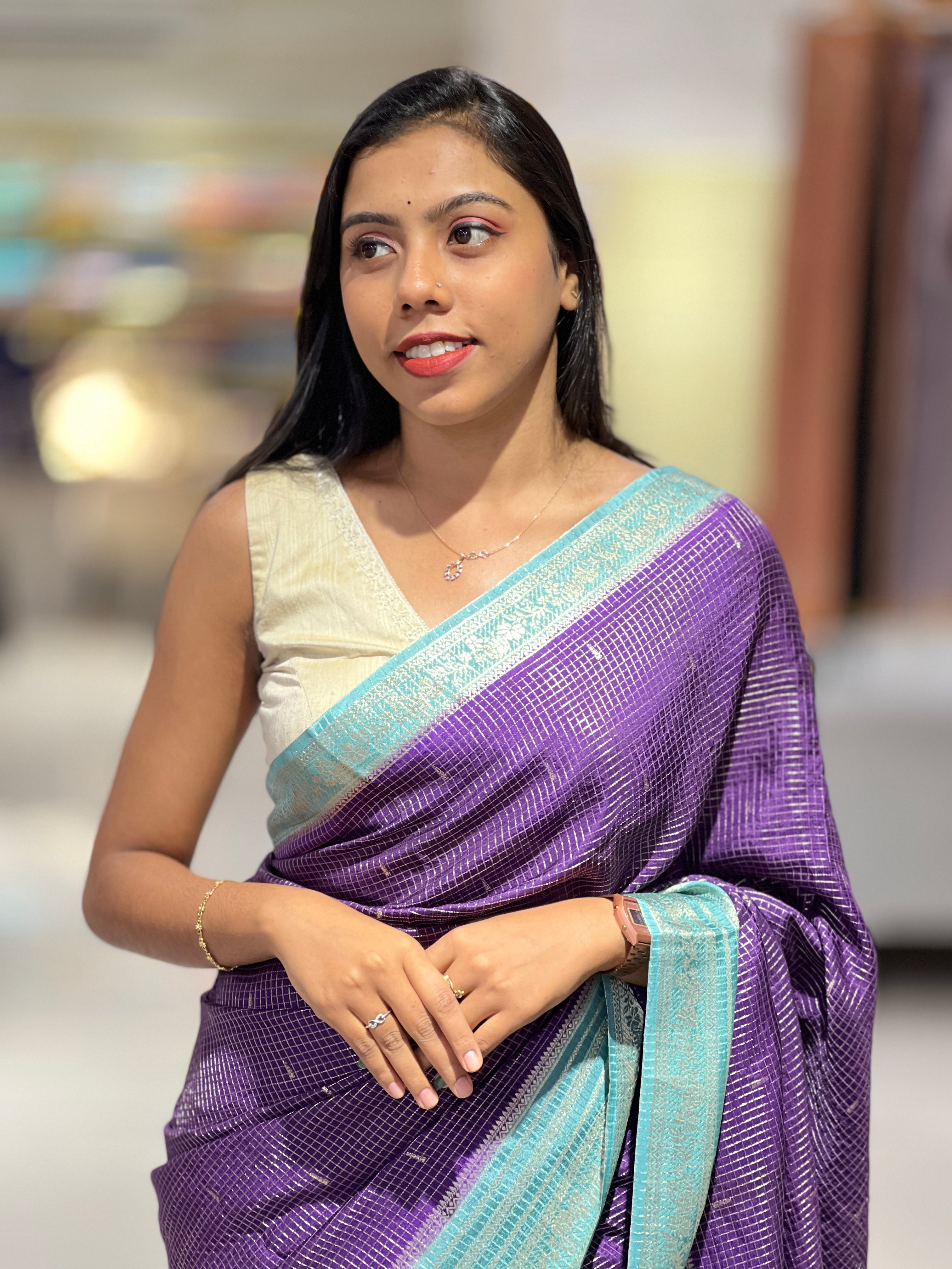 - Style: Check Pattern With Butta Detailing, Contrast Traditional Patterned Borders & Pallu, Stripe Patterned Pallu, Tassels Detailing