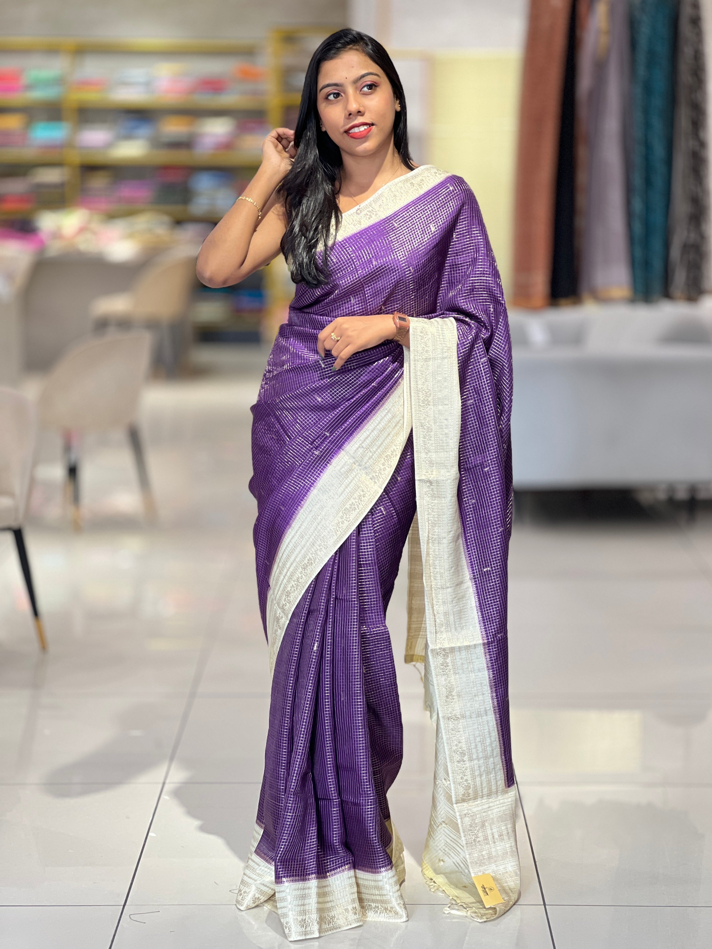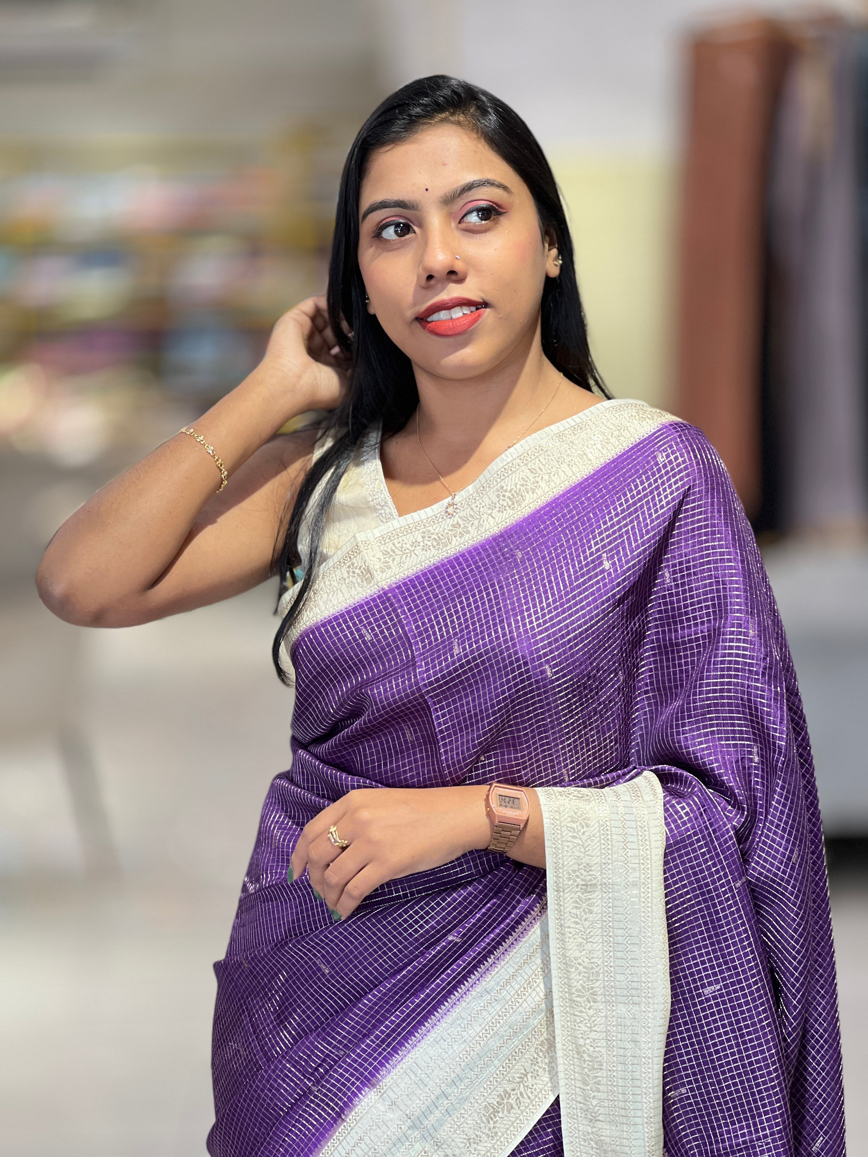 Zari Check With Butta Detailed Banarasi Silk Saree | NN391 Zari Check With Butta Detailed Banarasi Silk Saree | NN391 Zari Check With Butta Detailed Banarasi Silk Saree | NN391