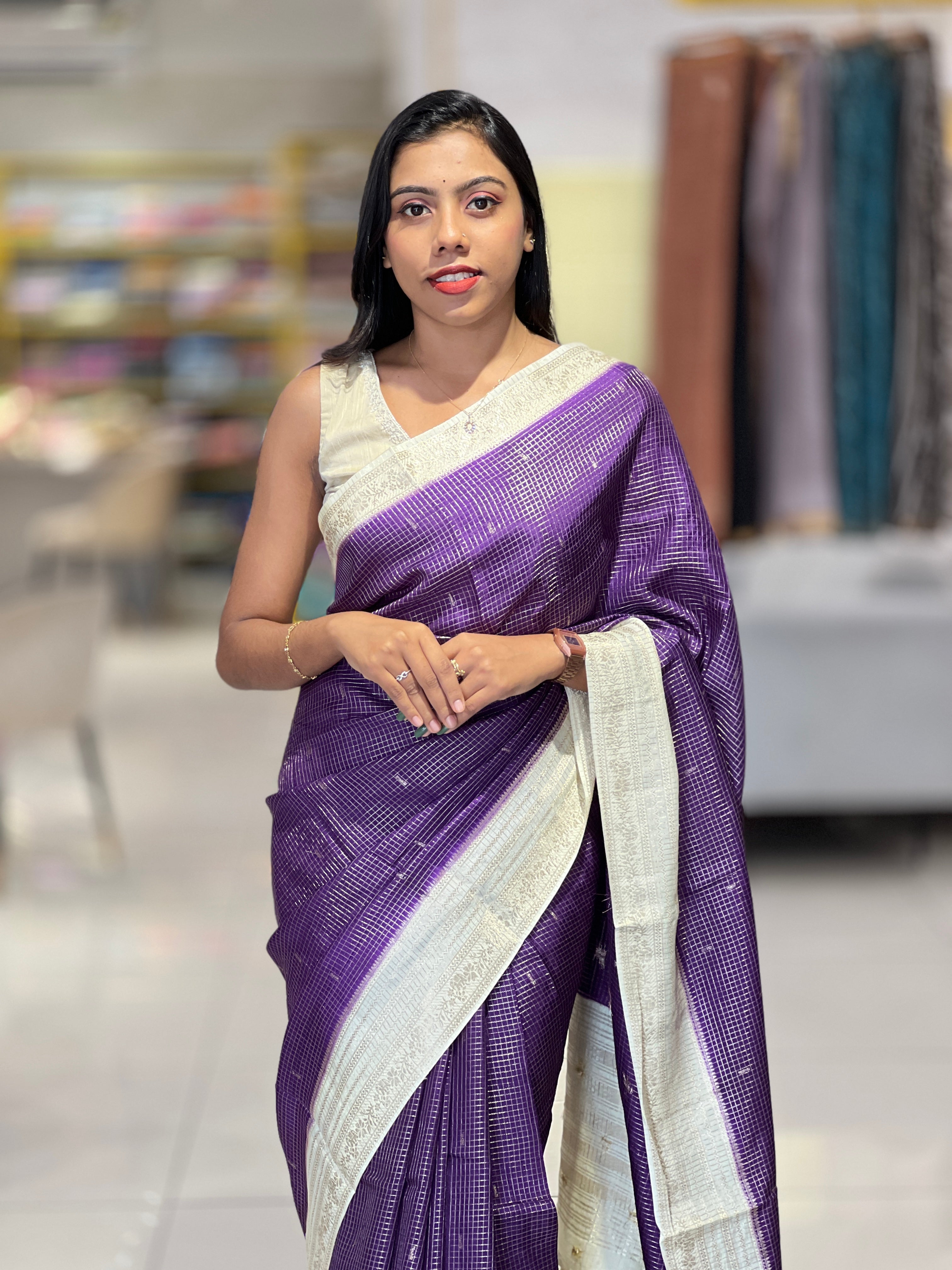 • Style: Contrast, Zari Butta Weaved