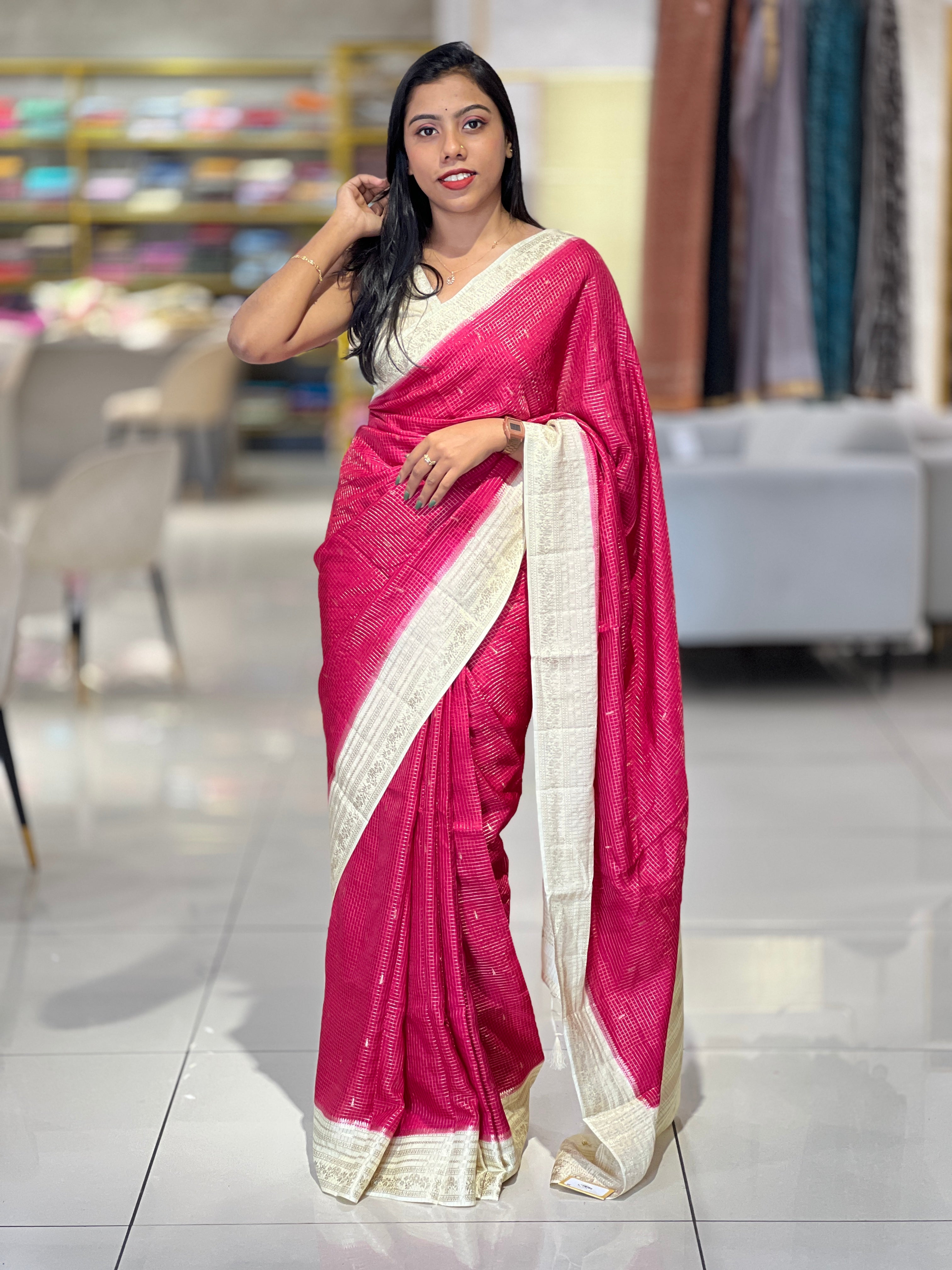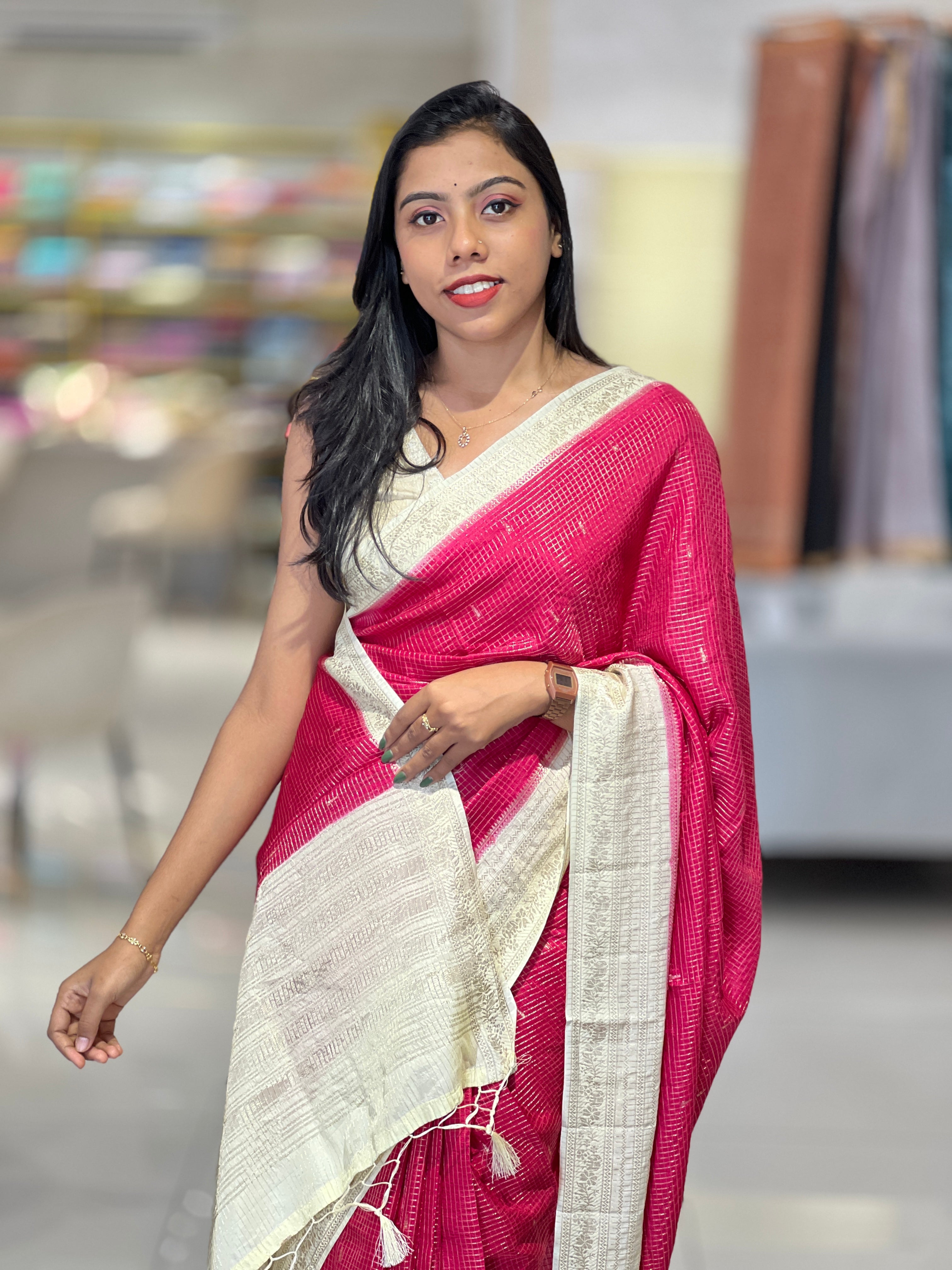 - Style: Check Pattern With Butta Detailing, Contrast Traditional Patterned Borders & Pallu, Stripe Patterned Pallu, Tassels Detailing
