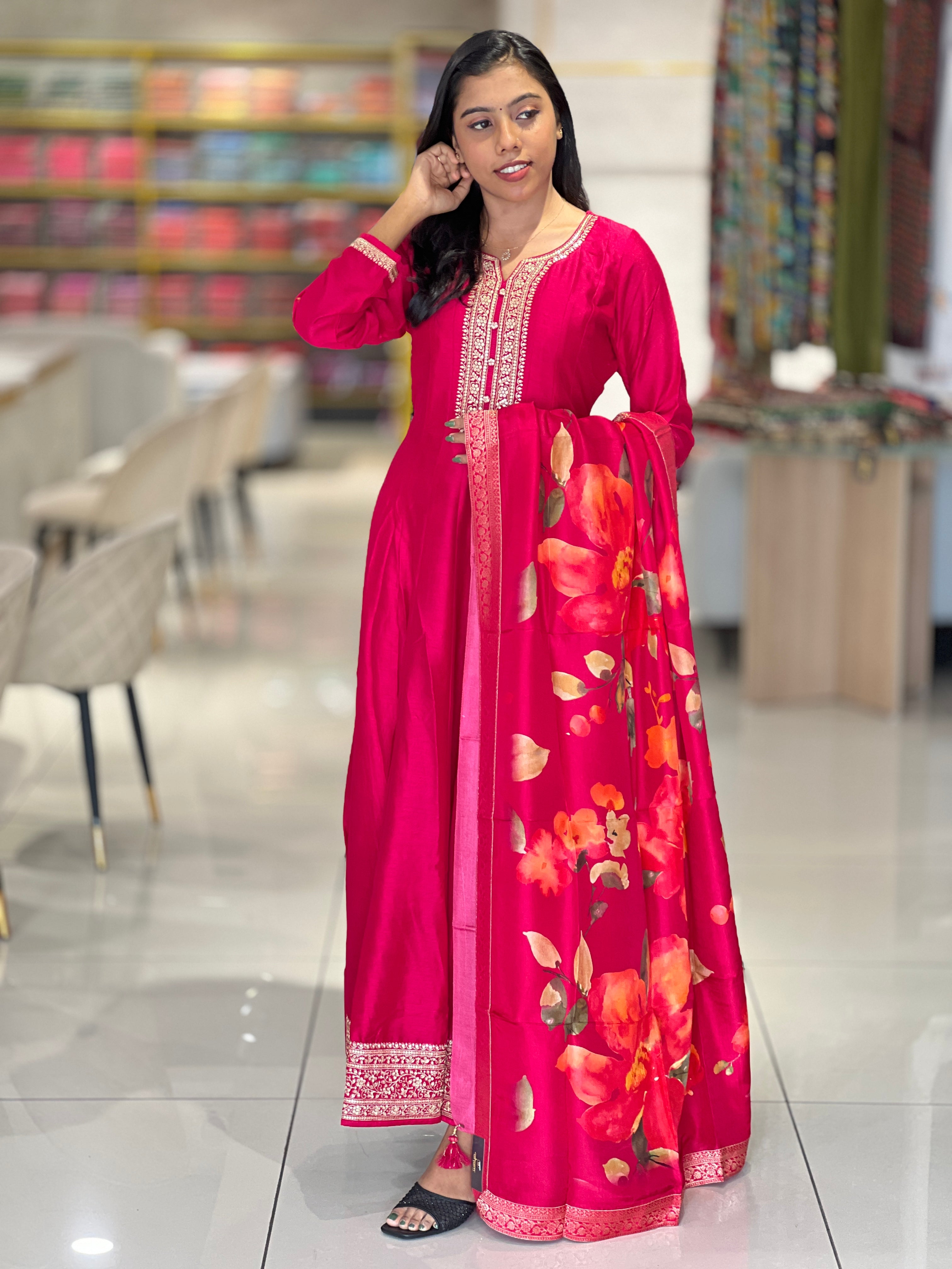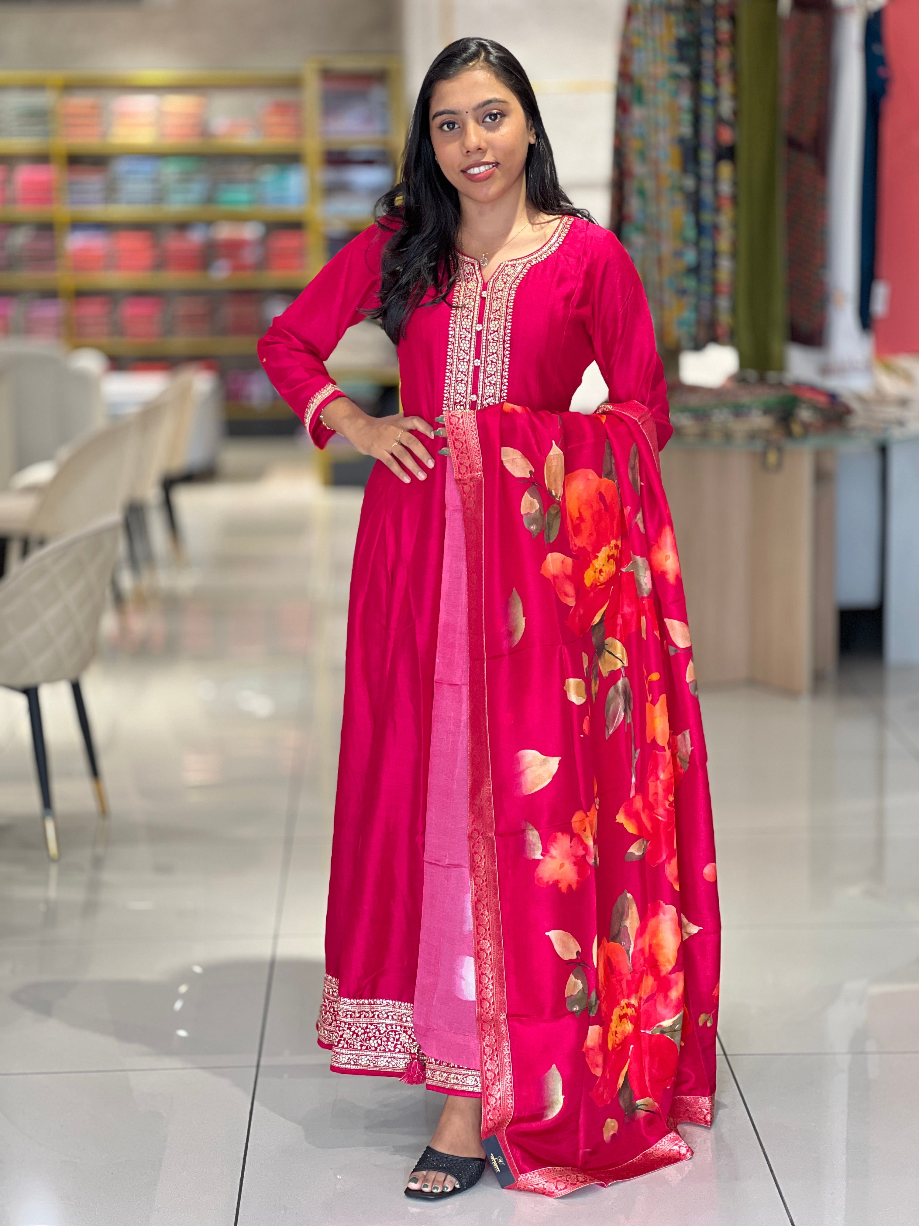 Zari Embroidered Dola Silk Kurta Top & Dupatta | FW279