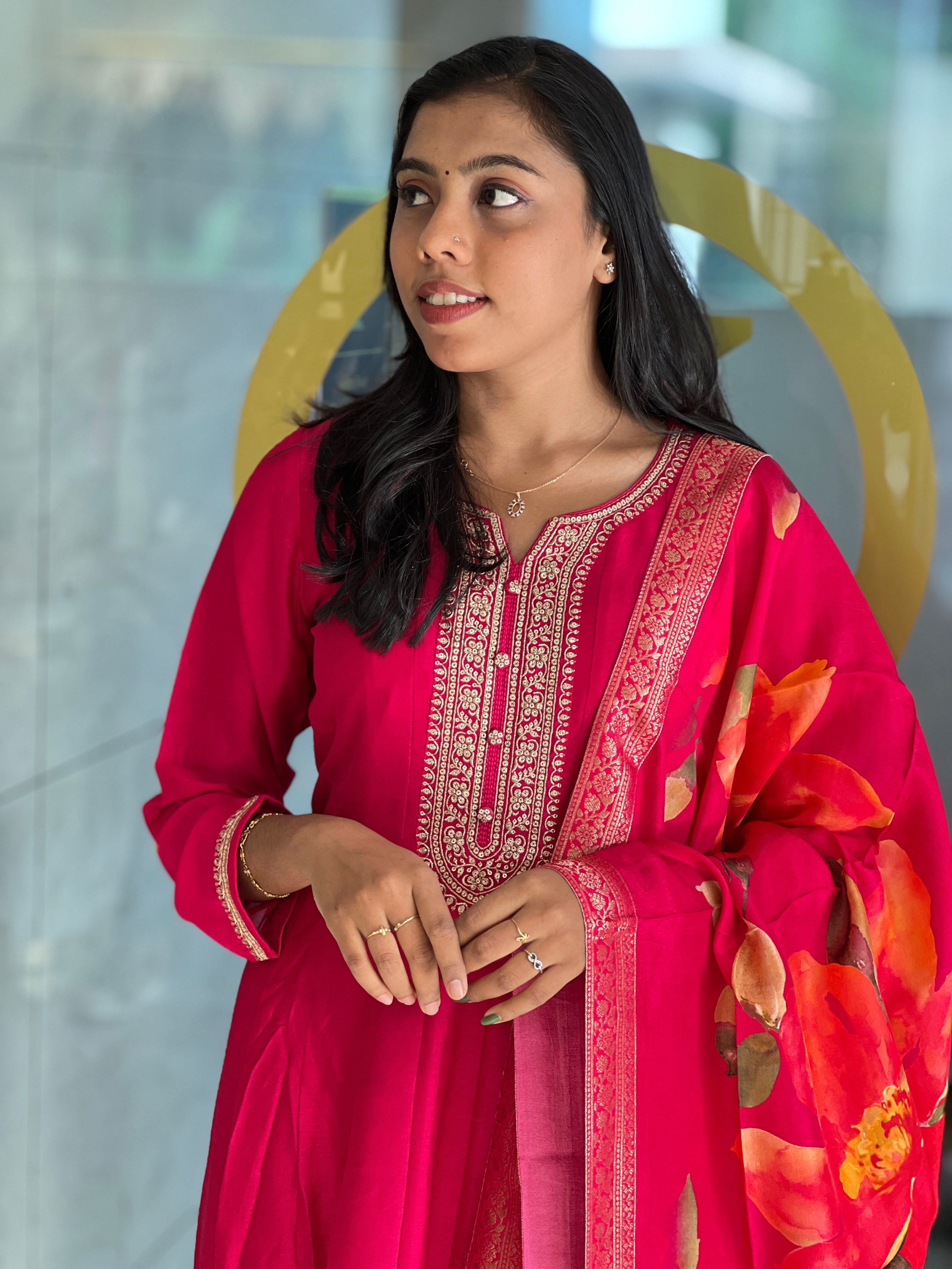 • Zari Embroidered Dola Silk Kurta Top & Dupatta | FW279